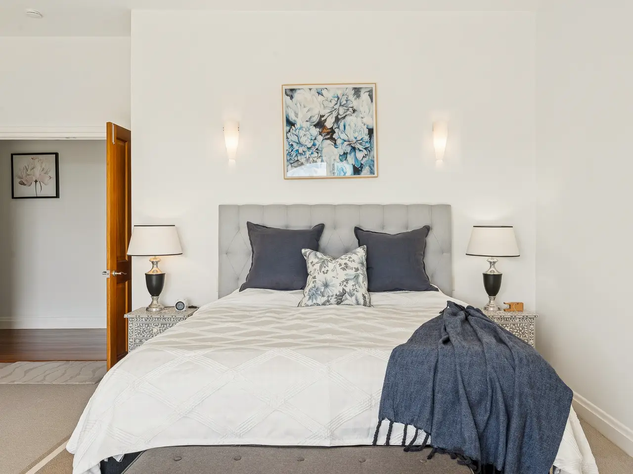 Master suite with marble-finished ensuite & garden views