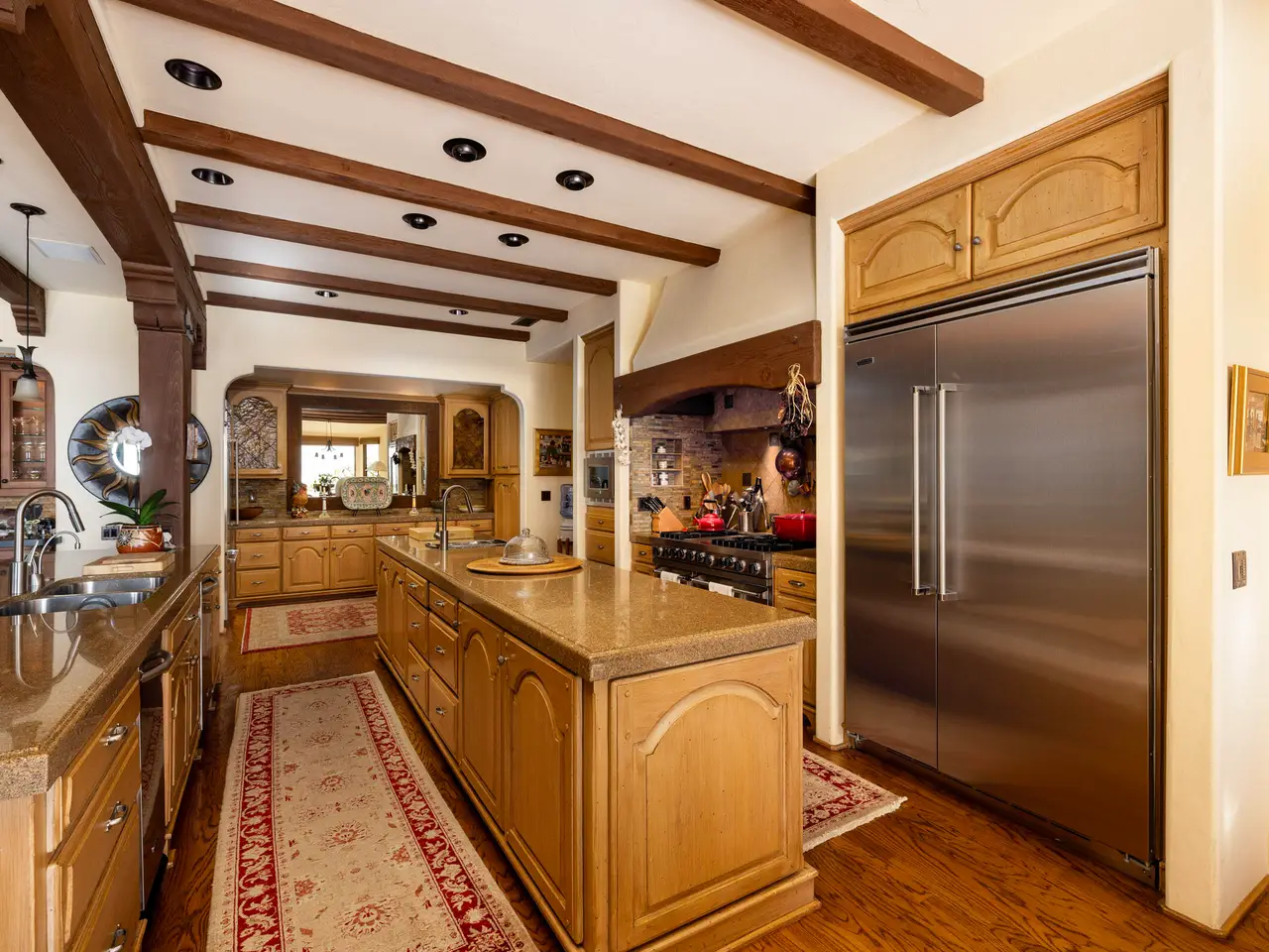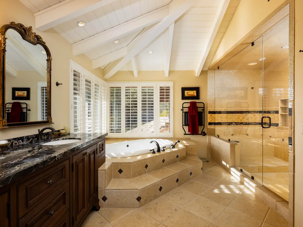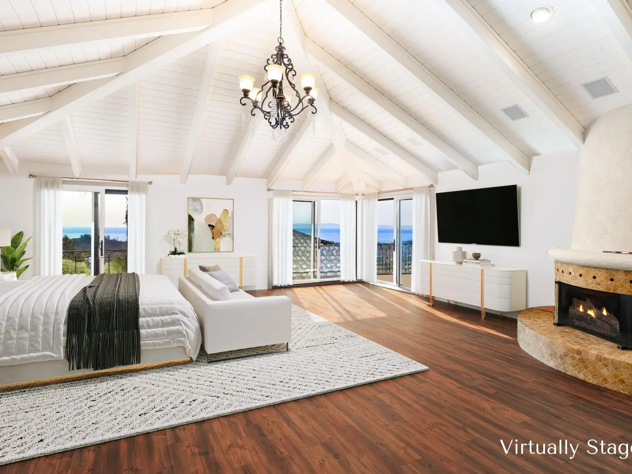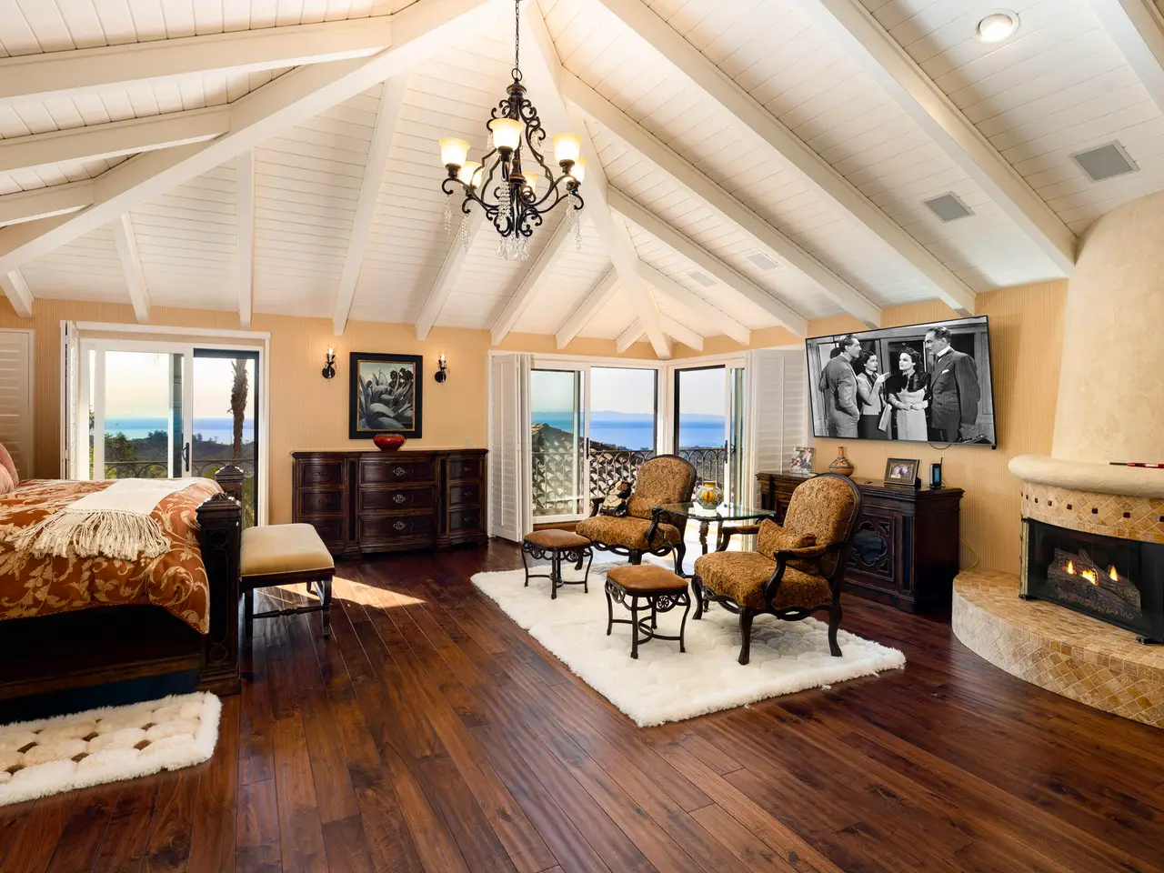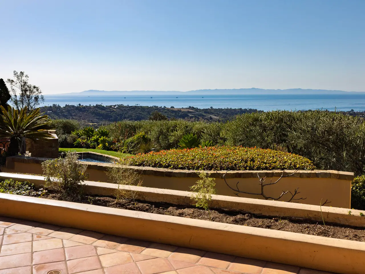 Defined by its vast ocean, island, & harbor views stretching over the Pacific, this estate offers an ever-changing panorama of tranquil horizons. The ocean's beauty fills every room with natural light & serenity. Grand arched entryway, intricate wrought iron door, soaring ceilings with exposed beams, & stone floors evoke the charm of a European villa. A magnificent stone fireplace stands as the core of the grand living room. This space is large enough for several seating areas all flowing out to the pool terrace and /or gardens. The Formal Dining Room opens to both the Living Room and has a private terrace complete with a fountain and lush landscaping. Expansive Gourmet Kitchen with View Breakfast room. The Kitchen features Stainless steel appliances as well as a large island with seating Commodious storage in the adjacent walk-in pantry and separate butler's pantry. Family Room flows from the Kitchen space to a covered entertaining terrace complete with barbeque. The Family Room has a custom fireplace as well as a full wet bar with bar seating and an exceptionally large temperature controlled Wine Cellar. A Library features a fireplace, built-ins as well as a full bathroom. Library/office has direct access to the gardens and terraces. The Grand Staircase leads to the Primary suite as well as 4 additional suites with several opening out to view terraces. The gracious Primary Suite is in its own wing and offers a sitting area w/fireplace, beamed ceilings as well as several ocean/harbor view terraces. The Primary Suite Bath features an enormous steam shower, separate jacuzzi style tub, dual vanities and commode closet. Two very large walk-in closets with custom built-ins complete the space. An additional custom spa is reached off the bedroom wing. Additional features include a gated entry, an oversize three car garage with storage, a Full Home generator, Car charging station, Private shared well for irrigation as well as a private gym room off the pool. This property also features numerous terraces, large lawn area, numerous fruit trees, and a glistening pool with spa and water feature.