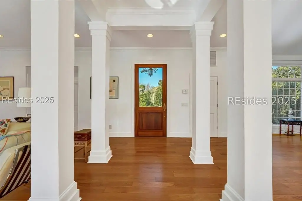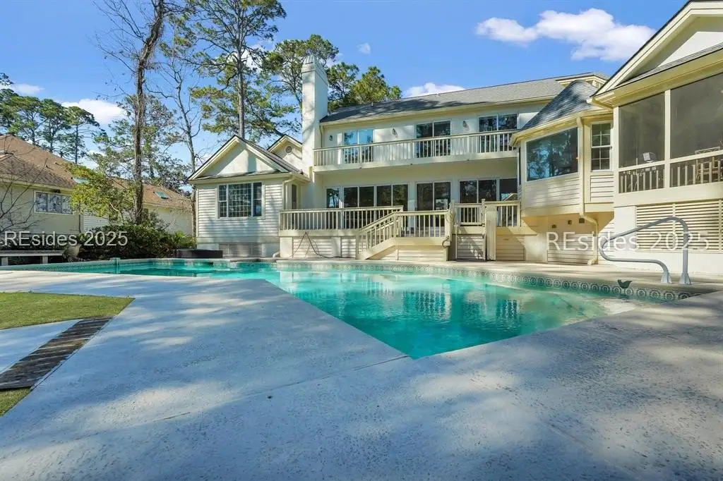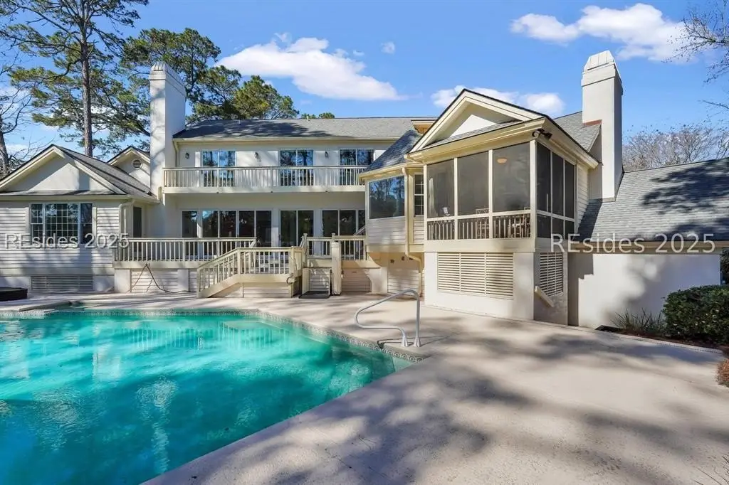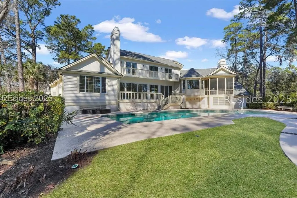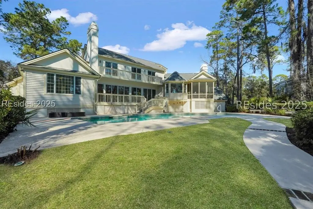 Welcome to one of the most luxurious homes on Hilton Head Island! Remarkable quality and design with stunning panoramic golf views. This 4 bedroom 3.1 bath (plus Den) home affords all amenities imaginable. Chefs kitchen, luxurious primary level owners suite, Den/study and so much more including 3 fireplaces, smooth ceilings, and large screen porch with views of the luxurious over-sized private pool with spa. All overlooking the Wexford's 10th hole of the private Arnold Palmer designed 18 hole golf course. Resort type outdoor spaces let you enjoy the essence of Lowcountry living whether poolside or lounging on the decks or patios. Extensive mature landscaping adds to the tropical vibe! Easy stroll to all amenities. Residents of Wexford enjoy access to world-class amenities, including a private harbour and marina, championship golf course, tennis and pickleball courts, croquet lawn, resort-style pool complex, clubhouse dining, and very active club participation. Ongoing club renovations include a 4,800 sf addition to the Clubhouse, new 7,300 sf Harbour Center as well as a new stand alone golf shop. Scheduled to be completed by April 2026.