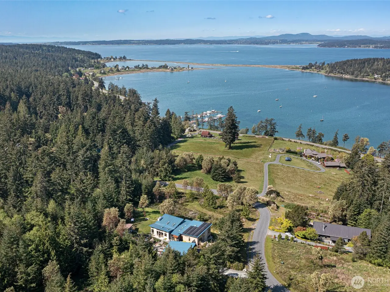 Perched above Fisherman's Bay, with panoramic west-facing views of San Juan, Orcas, and Vancouver Islands, this exceptional newly constructed retreat embodies architectural excellence. Thoughtfully crafted this 3,200-sf residence has 3 ensuite bedrooms, spa-inspired primary suite, a heated soaking tub and a gas fireplace. The chef's kitchen has top-tier Wolf, Cafe, and Miele appliances. A naturally cooled 650-bottle wine cellar, radiant floor heating, fiber-optic, solar panels, EV-ready garage, mature irrigated gardens and fire-resistant building materials complete the offering. Entertain is an outdoor pavilion with a custom wood-fired oven. This is more than a home; it's a sanctuary, a statement, and a rare opportunity on Lopez Island.