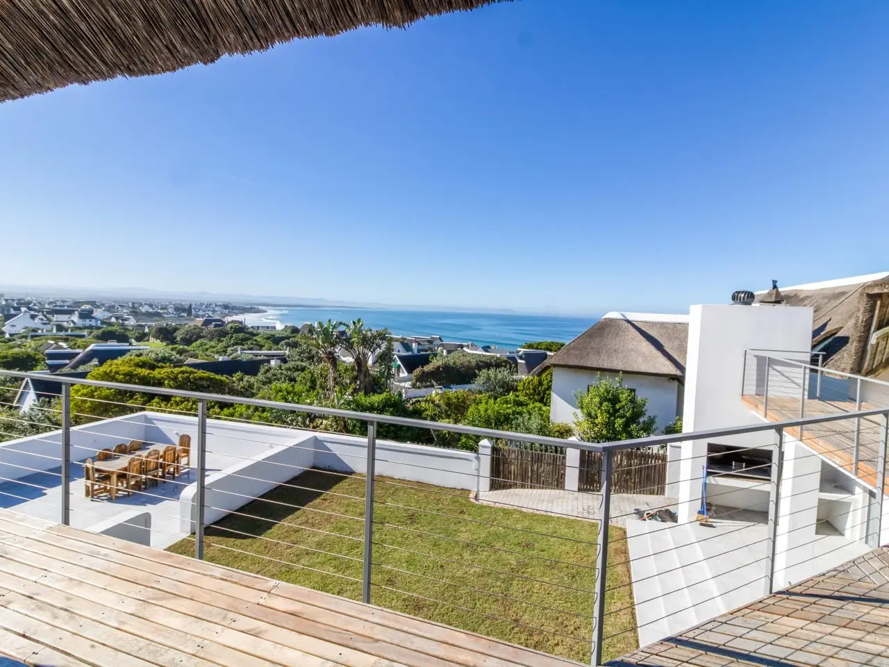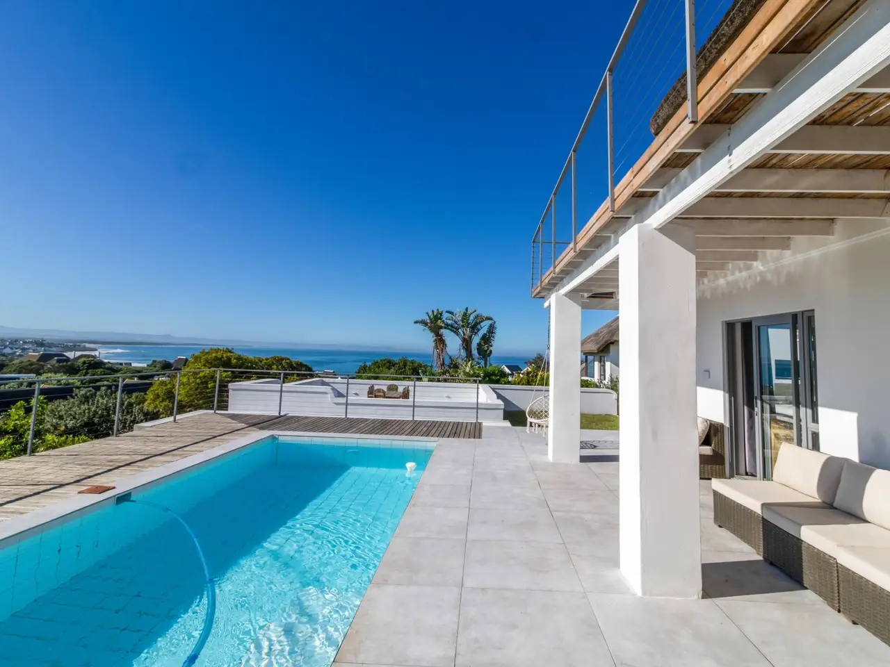 VAT transaction - Price excludes VAT. No Transfer duties. Nestled in the heart of St. Francis Bay, this newly renovated, double-storey home offers a perfect blend of luxury, comfort, and convenience. Elevated above the road for enhanced privacy and breathtaking, uninterrupted views of the sea, this 10-bedroom property is an absolute gem on the coast. As you step into the home, you're greeted by beautiful screeded floors throughout and an open-plan living space designed for modern family life and entertaining. The spacious lounge and dining room open up to a private patio, perfect for enjoying those idyllic sunrises over the ocean. The compact kitchen is equipped with all the essentials, complemented by a convenient scullery for added functionality. The property boasts two single garages, offering ample parking space, while the sparkling pool provides the ideal setting for relaxation or entertaining guests. The charming thatch roof adds an extra touch of character and warmth to this exquisite home. Located within easy reach of the village and the beach, this property provides the perfect combination of privacy and proximity to all the amenities St. Francis Bay has to offer. Whether you're enjoying the local golf courses, playing tennis or squash, or indulging in a meal at one of the many nearby restaurants offering Greek, Italian, Portuguese, and fine dining options, there's always something to enjoy here. The village also boasts excellent medical facilities, including doctors, dentists, pharmacy, and physiotherapists, ensuring peace of mind for residents. For water enthusiasts, the area offers a host of activities such as fishing, watersports, and access to a privately owned harbour with both recreational and commercial sections. The upcoming Oyster Lifestyle Village, a planned lifestyle/retirement development, adds even more appeal to this already thriving community. St. Francis Bay is a place where outdoor living and luxury meet - with golf courses, tennis, bowls, padel, swimming, and more right at your doorstep. Local shops include everything from groceries and clothing to a surf shop, bakery, butchery, health stores, and even furniture. Enjoy the best of coastal living with low crime rates, close-knit community vibes, and a lifestyle that's hard to beat. Don't miss out on the opportunity to make this remarkable house your new home.