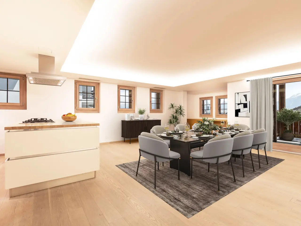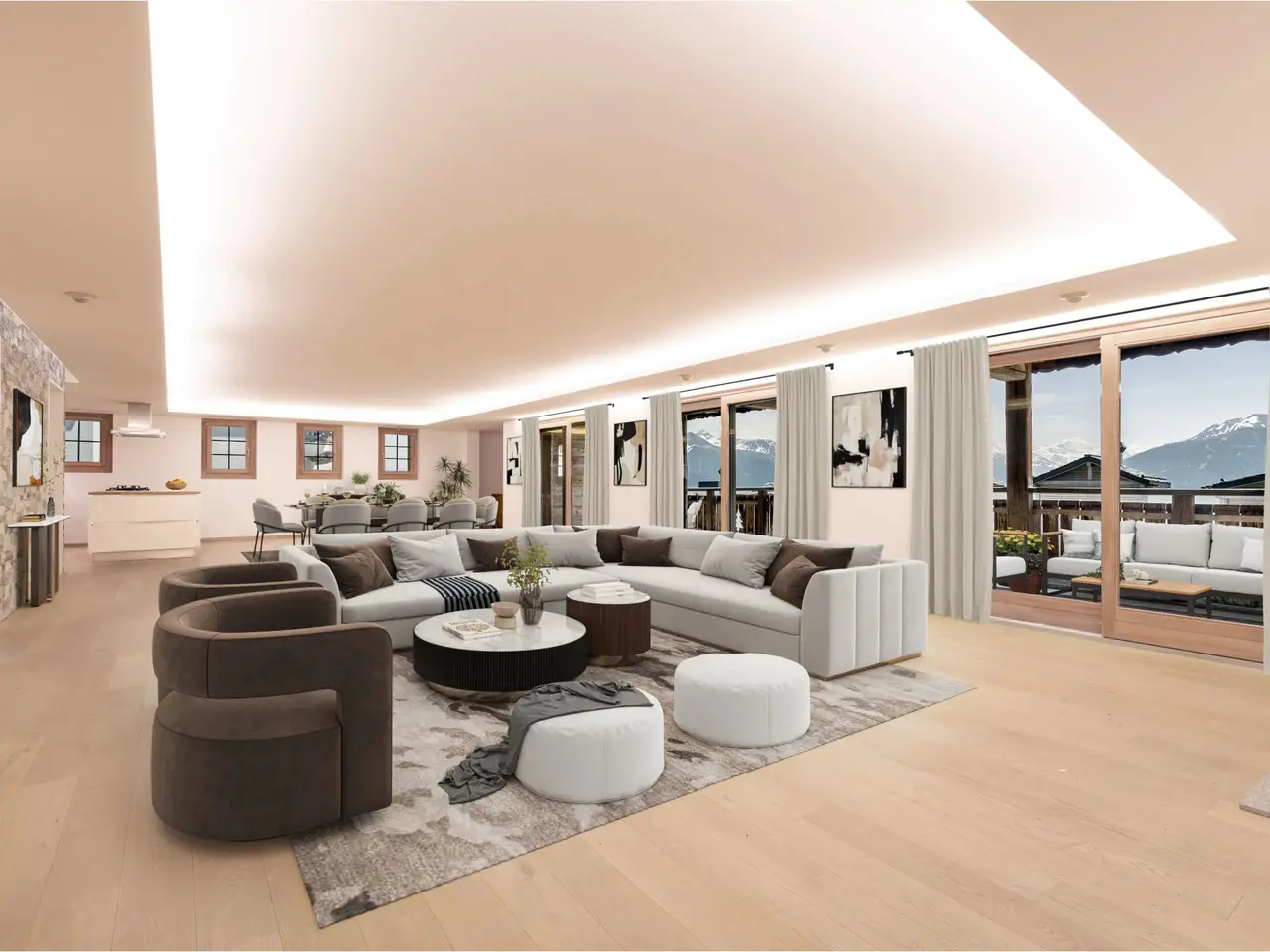 This superb 6.5-room apartment offers an exceptional setting in the heart of Montana, within a chalet-style residence built in 2007. Ideally located near all amenities, this property will captivate you with its generous 350 square meter surface. Brightness and space are the defining features of this apartment. You will be immediately charmed by the spacious living area, including an open kitchen and a cozy lounge adorned with a magnificent fireplace. Additionally, a vast 49 square meter south-facing balcony provides breathtaking views of the majestic Alps, creating an idyllic backdrop for your moments of relaxation. The advantages of this residence do not end there. You can indulge in high-end communal facilities such as a jacuzzi, sauna, fitness room, and even a wine cellar, ensuring a life that combines comfort and well-being. The residence's location is both peaceful and sunny, guaranteeing a pleasant environment in all seasons. Furthermore, with two indoor parking spaces at your disposal, you can move around with ease and tranquility. This apartment is a rare opportunity, combining alpine charm, elegance, and an exceptional living environment right in the center of Montana.
