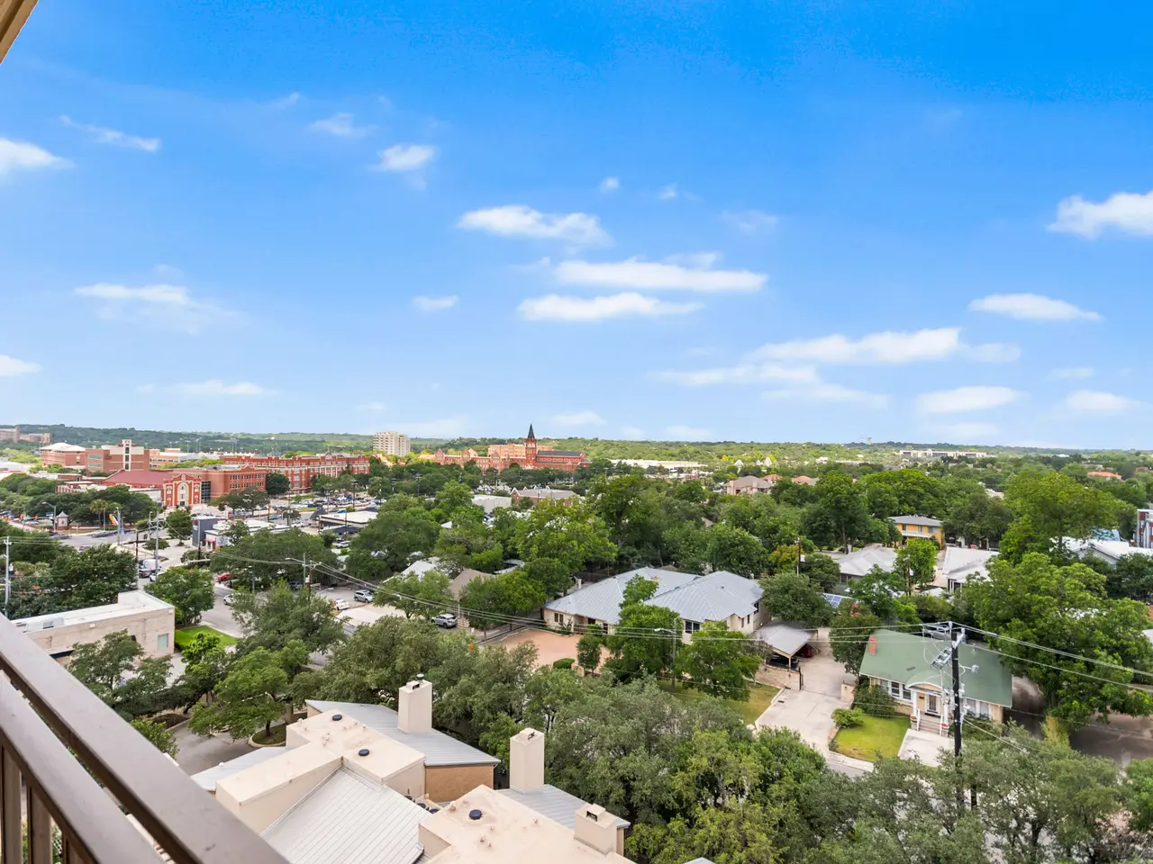 Perched high above the vibrant heart of Alamo Heights in San Antonio, this luxury high-rise condo offers a blend of modern sophistication, breathtaking views, and unmatched convenience. Step inside and you're greeted with floor-to-ceiling windows that flood the space with natural light and great views of the San Antonio Country Club golf course. The living space features sleek hardwood floors, cozy spaces, and incredible floor plan to take in the views from every room. The kitchen has a functional layout right off the main living room to make it easy for entertaining. The master suite is a tranquil retreat with a large walk-in closet, and a spa-inspired bathroom and a spacious sitting room. 3 generous size bedrooms with built-in cabinets, custom closets, bookcases and storage. This condo is just a walk across the street to the San Antonio Country Club and quick access to city life.