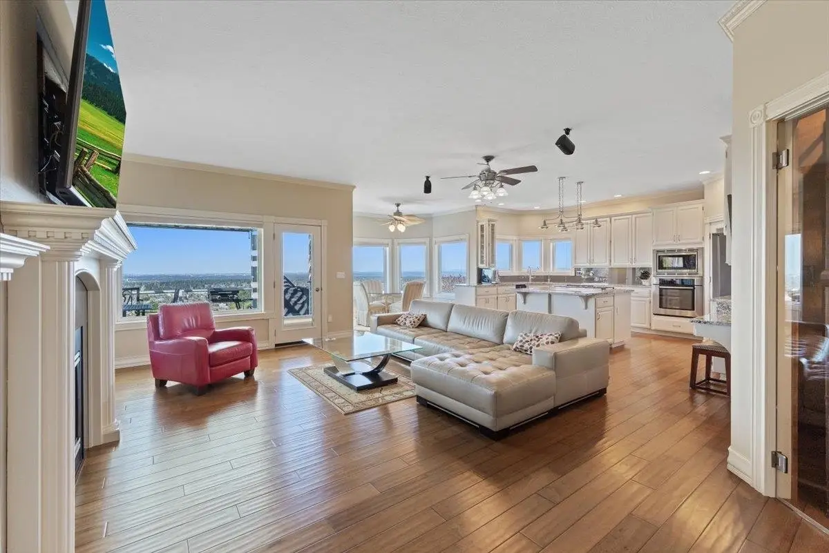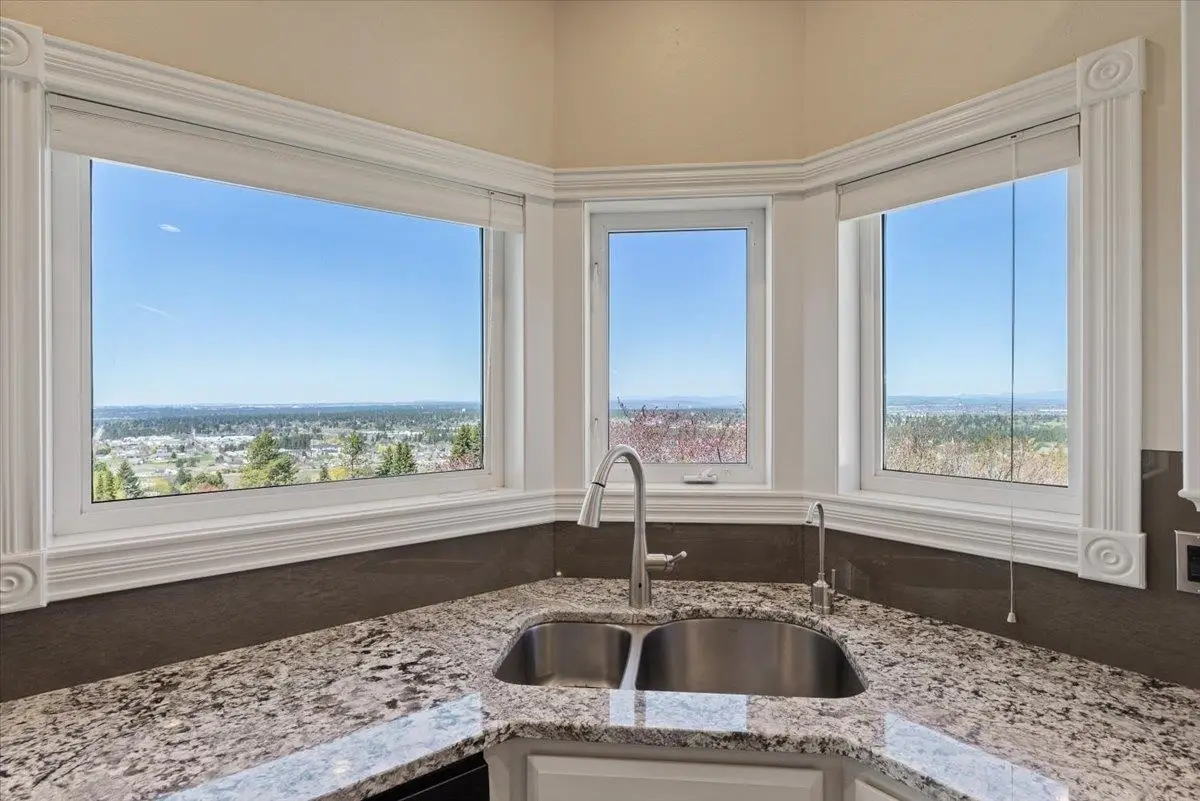 An impressive home on Spokane's South Hill completely updated inside and out with stunning views! Step inside this inviting home to all main floor living and views from every room. The sunsets are gorgeous! The granite kitchen is spacious with white cabinets, big picture windows lets the light pour in. An open living room area with a double sided fireplace brings warmth and relaxation. Great work from home space in the regal office with quality built-ins and a granite-top desk. A large primary suite with a luxurious bathroom and walk-in closet nearby. Off the main bedroom is your separate entrance to an enormous deck overlooking the backyard and views that stretch for miles. Enjoy an in-ground pool with new decking. The daylight basement has 3 bedrooms and a bath with a wet bar and a recreational gathering spot for dozens - pool table, foosball, movies, music, sauna, exercise workout area - it's all there and ready for your enjoyment!