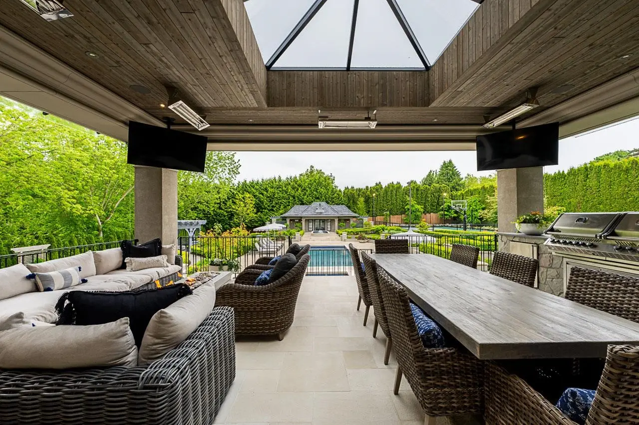 GRAY OWL MANOR; the Finest Estate Offering in the Lower Mainland. This 12,000+ sqft estate is the pinnacle of luxury living. Designed in a timeless French inspired aesthetic & situated on a gated acre manicured to perfection. Custom finishes inside and out for year-round entertaining. Full home automation, an elevator, rich millwork details, limestone fireplaces, temperature controlled wine room, home theatre, and a separate pool house complete with a golf-simulator. Open-concept great room, beautiful kitchen with a striking La Cornue range, and additional prep kitchen, formal dining room with a bar. 8 bedrooms total with the primary suite tucked away on the main floor, plus a two bedroom guest suite. Resort-like outdoor pool and hot tub, with a full sports court. A True Masterpiece!