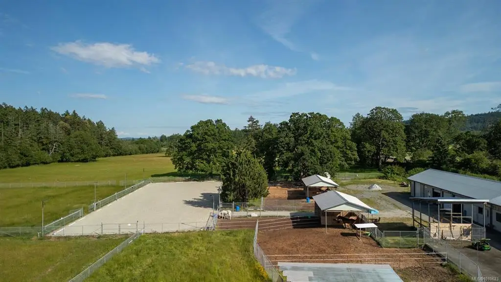 Sprawling 25.92-acre ocean view estate in picturesque North Saanich with two residences and equestrian facilities. Privately set within the ALR, this level, arable property was previously certified organic and offers endless potential for farming, equestrian use, or multi-generational living. The main Pan-Abode style home features a primary bedroom with ensuite, two additional bedrooms (including one currently used as an office), a bright kitchen, and spacious living room. Downstairs offers 60% finished living space with the remaining 40% easily completed. The second 2,100 square foot residence includes four beds, two baths, and recent updates. Outdoors, enjoy a heated industrial outbuilding with 9 garage doors, multiple workshops, insulated horse stalls, and a tack room. The illuminated riding arena was resurfaced in 2023 with LED lighting, excellent drainage, and is now legal dressage size. An exceptionally rare opportunity just minutes from Deep Cove, Sidney, BC Ferries, and the airport.