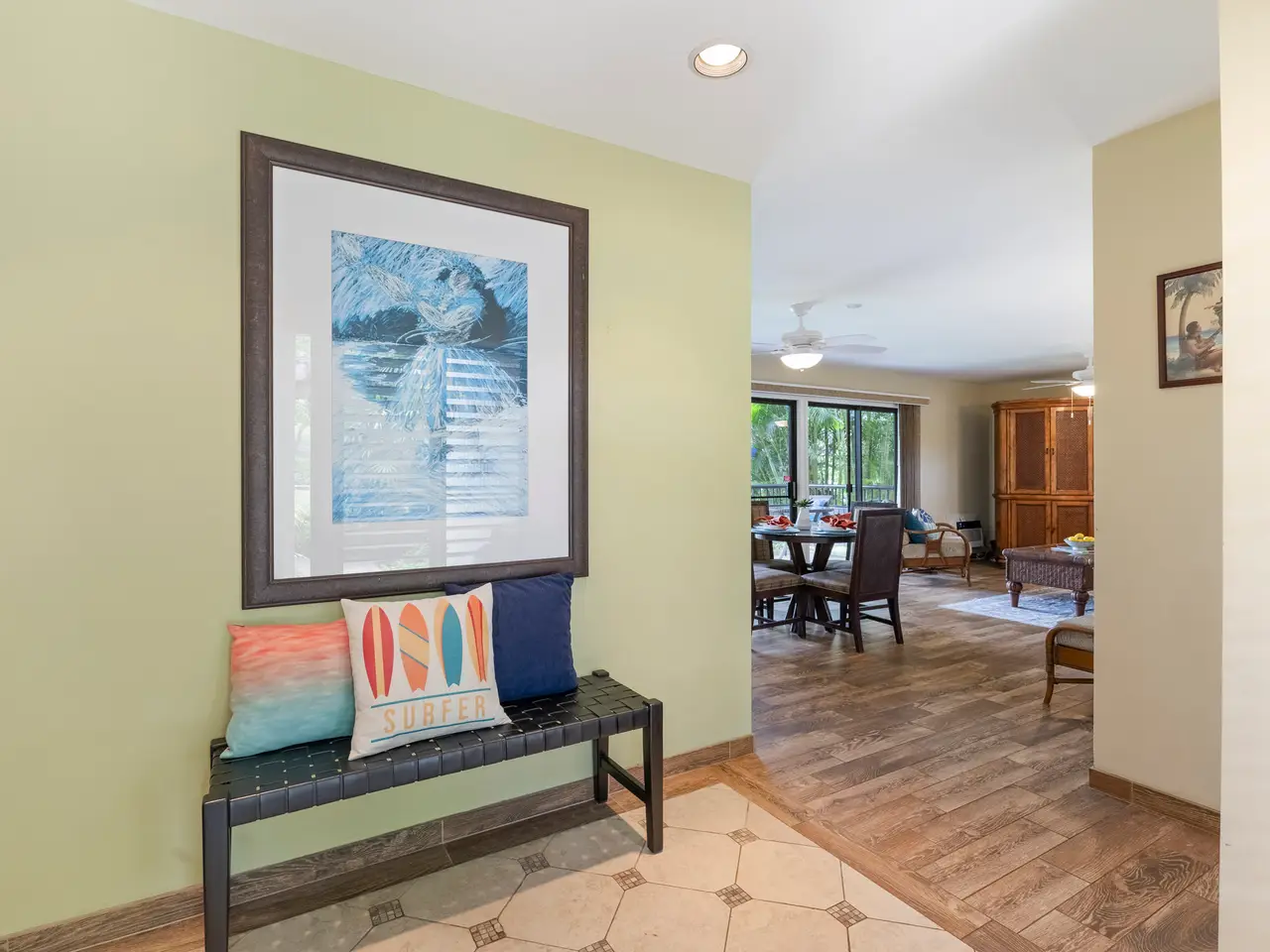 Wailea Ekolu 201 is a ground-floor vacation condominium located in the highly sought-after Wailea community. Featuring a spacious open-concept floor plan and a clean, modern interior, this residence offers a comfortable and refined retreat in one of South Maui’s premier destinations. Enjoy panoramic ocean views from the living room and kitchen—ideal for watching sunsets or spotting whales in season. Surrounded by lush tropical landscaping, the unit offers a quiet, private setting within the well-maintained Wailea Ekolu complex. Situated along the Wailea Blue Golf Course, the community offers scenic surroundings and beautifully landscaped grounds. Residents and guests enjoy access to multiple swimming pools, BBQ areas, and a network of lush walking paths throughout the property. Just a short walk to The Shops at Wailea + Wailea Village Shops, fine dining, and only minutes from world-class beaches, Wailea Ekolu 201 combines convenience, natural beauty, and an exceptional South Maui location. Whether used as a vacation rental or personal getaway, this unit is a smart investment in the Wailea lifestyle.