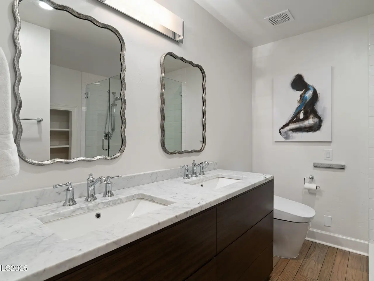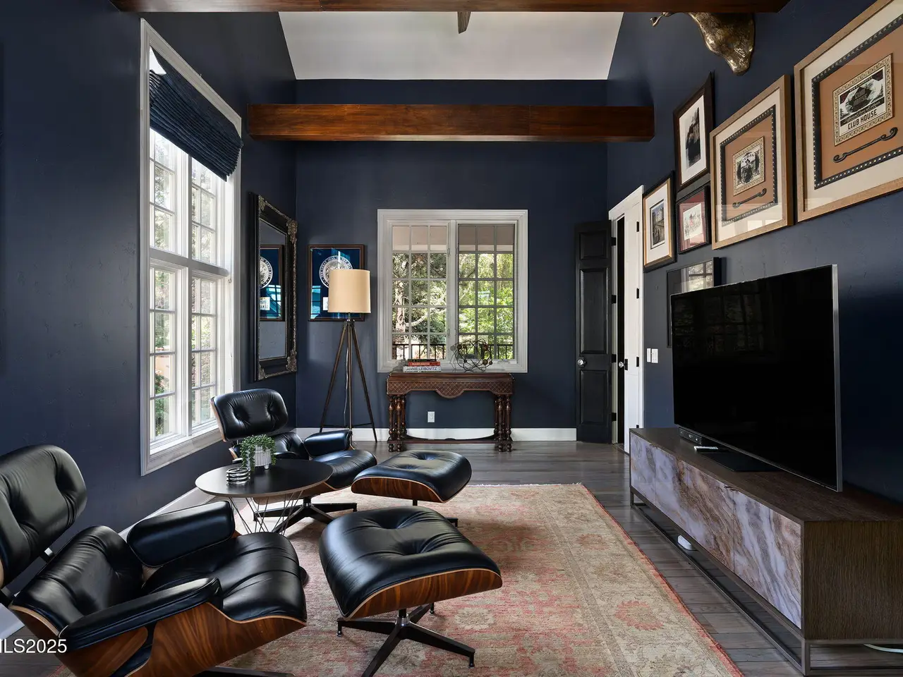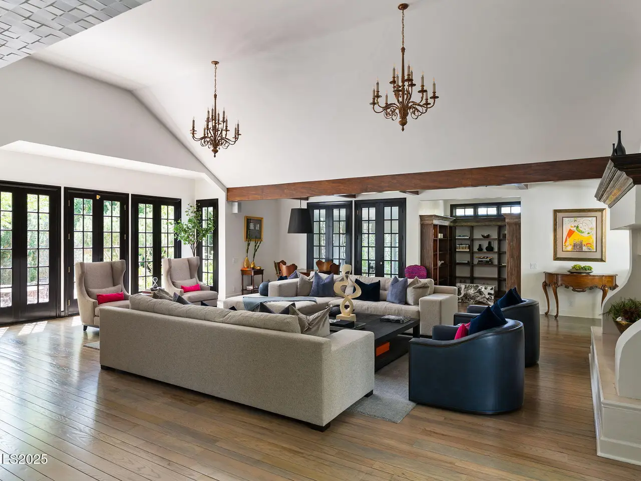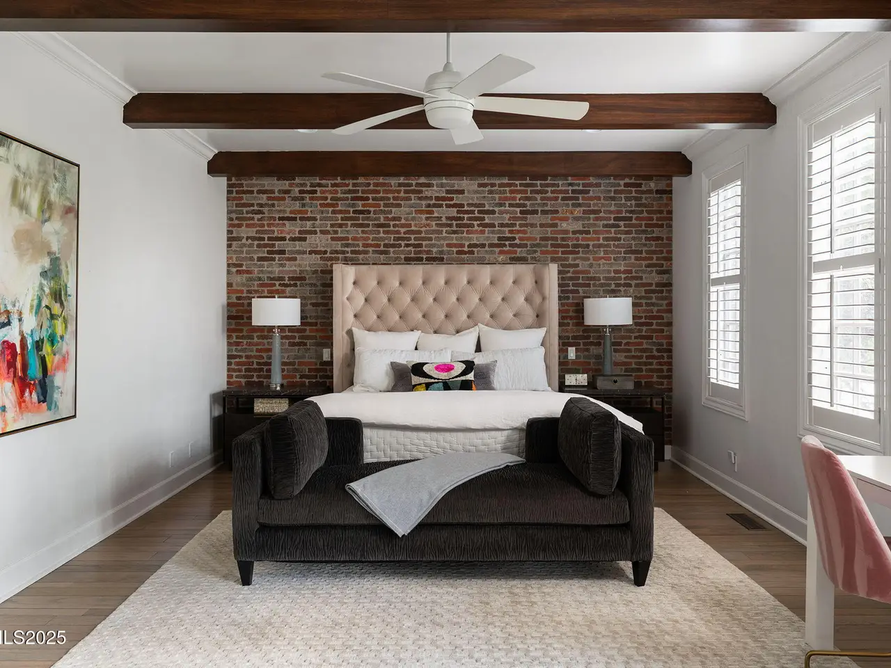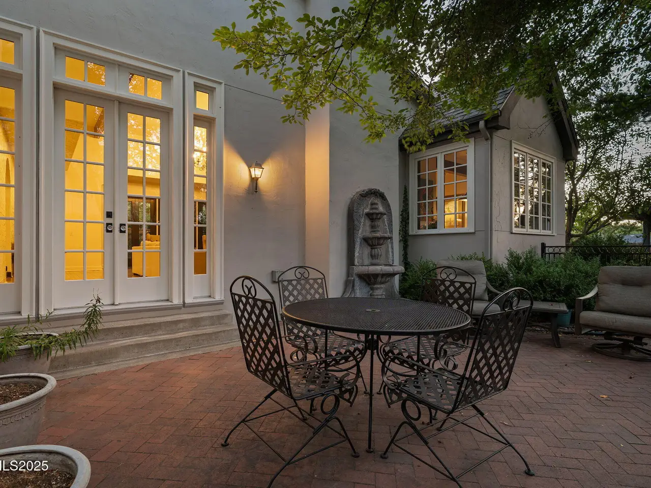 Confident, character-rich, and full of soul, this brick-and-plaster 4-bed/3.5-bath home combines old-world craftsmanship with quiet luxury across 5,699 square feet and a third of an acre. Nestled behind its French-inspired exterior on one of Reno's most storied streets, it features a layered interior with soaring ceilings, artisan finishes, and a floor plan that unfolds into a rhythm of gathering spaces and private retreats. Every detail and corner tells a story, and the right buyer will feel it instantly. From the moment you step into the entry hall, it's clear this isn't a typical home. Artisan plaster walls, solid wood doors, and hand-honed finishes whisper of craftsmanship rarely seen in modern builds. The main-level suite has a fireplace, private terrace, radiant heated floors, and a boutique-worthy closet with floor-to-ceiling built-ins for seamless organization. Upstairs, a two-bedroom wing with a shared lounge and dry bar creates a tucked-away apartment-like zone—perfect for teens, guests, or anyone who values autonomy without absence. A second en-suite bedroom on the main level provides long-term flexibility for guests or multigenerational living. Another vaulted-beam bonus room offers space for a home office, media lounge, or creative studio. Vaulted ceilings with exposed beams and an arched fireplace give the living room architectural weight, while dual chandeliers add a subtle elegance. A grid of French doors and windows shapes the room's rhythm and light. Despite its scale, the space envelops you with a built-in library and corners in which to gather or disappear. Off the living room, a converted garden studio with original brick floors serves as a home gym with views of the lush exterior. The kitchen invites you to make meals, memories, and moods. Brickwork and wood beam ceilings echo the entry and exterior, carrying the home's language forward with warmth and texture. Custom cabinetry with soft-close drawers surrounds high-end appliances—including dual Sub-Zero refrigerator drawers, Café double ovens, Viking warming drawer, and a U-Line ice maker. A DCS Fisher & Paykel gas range with integrated ventilation stands ready for everything from weeknight dinners to holiday feasts. The dumbwaiter from the garage is a functional delight and a favorite party trick. Even the laundry room and functional closet just off the oversized garage have a point of view. With built-in cabinetry and finishes focused on everyday ease, everyday chores feel like a design moment. The garage features generous dimensions and clean finishes, offering storage and work space beyond parking. Outside, a brick path winds through shaded patios, fruit trees, terraced garden beds, and grassy expanses. Multiple seating areas—some open-air, others tucked beneath eaves—offer places to gather, pause, and exhale. A private courtyard—shaped by layers of landscape and framed by brick—has hosted vow renewals, milestone photos, and other meaningful celebrations over the years. A powered outbuilding with a Dutch door, surrounded by irrigated raised planting beds, anchors a corner of the yard with both purpose and potential. And then there's the history of Greenridge itself, one of Reno's original prestige neighborhoods. Developed in the 1930s by Norman Biltz and modeled after luxury subdivisions in Beverly Hills and the East Coast, it once drew names like Doris Duke, Clark Gable, and Marilyn Monroe. Today, the neighborhood has traded celebrity sightings for Halloween magic shows, front-yard wine nights, and strolls with dogs and drinks in tow. People wave from lawn chairs as children roam the curved streets on scooters and bikes, or walk to the nearby golf course for a Coke and fries. Homes like this—so layered, so finished, so cherished—are increasingly rare and even more so in neighborhoods like this. For those who value character over conformity, warmth over flash, rhythm over trends, 144 Greenridge Drive won't just feel right. It will feel like home.