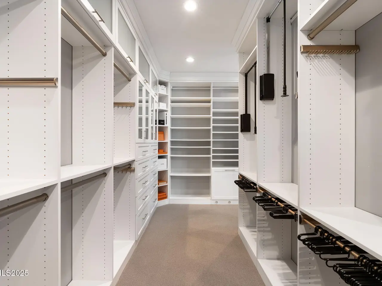 • Boutique-worthy closet with floor-to-ceiling built-ins French doors and windows