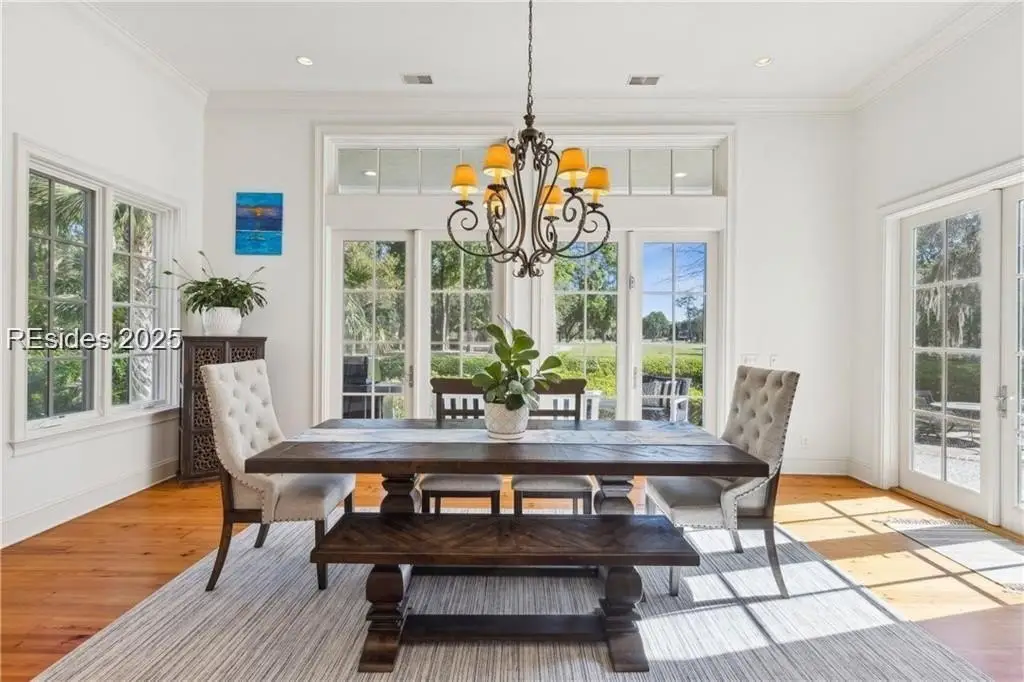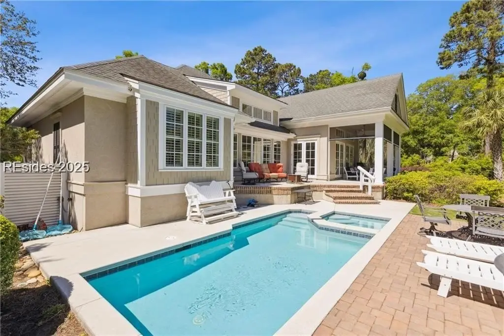 Unbelievable opportunity to own a stunning custom Lowcountry-style home overlooking the first green and fairway of the prestigious Nicklaus course. Featuring an open layout with soaring ceilings, elegant crown molding and heart pine floors, this home also includes a private study ideal for remote work. The chef’s kitchen opens to a spacious great room, leading to a screened porch with retractable screens and a custom pool/spa—all with panoramic golf course views. Two guest suites with full baths on the main level and a large upstairs bonus room with an additional bath make this home perfect for entertaining and everyday living.