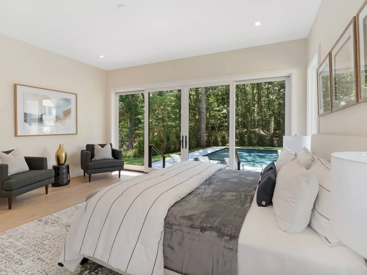 Nestled on a serene cul-de-sac lane in Sag Harbor, this stunning modern home is set for completion in Spring 2025. Just moments away from the picturesque Long Beach, the vibrant Sag Harbor Village with its incredible amenities and charming villages of Bridgehampton and East Hampton, this residence offers the perfect blend of tranquility, convenience, and new construction. Spanning 0.99+/- acres, the property features a heated gunite pool, fantastic outdoor lounging areas, outdoor kitchen, an outdoor shower and a well-designed landscape creating a relaxing outdoor oasis. The home itself features a total of 6 bedrooms, 5 full bathrooms, and 1 half bath, encompassing approximately 5,824 square feet of exquisite interior space, including a finished walkout lower level. The first floor is designed for both comfort and entertaining, with the foyer flowing into the open-concept floor plan including a living room, dining room, and a stunning designer kitchen. The kitchen is serviced by a substantial butler's pantry. Additionally, the first floor includes two bedrooms, a full bath, and a half bath, offering convenience and privacy for guests. On the second floor, the spacious primary bedroom serves as a luxurious retreat, accompanied by two en-suite bedrooms. An additional loft space on this floor is a perfect, cozy sitting area. The fully finished lower level adds even more versatility to the home, featuring another bedroom, a full bath, and bonus room (well suited as either a bedroom or gym). This level also includes an expansive laundry room, a family room, and access to the garage. This exceptional project is currently underway, with a projected completion date of Spring 2025. New, state-of-the-art, 5-bedroom home in the vibrant Sag Harbor area
