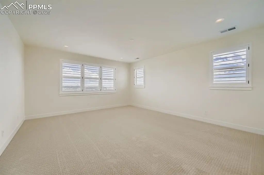 The elegantly crafted Fleetwood Prairie home features a luxurious blend of indoor and outdoor living spaces that are perfect for relaxing and entertaining. The inviting two-story foyer and extended hallway flow past the private office to the grand, two-story great room with alluring views of the city, beyond the expansive covered patio. Don't miss the beautiful Eldorado white elm stone, floor-to-ceiling fireplace! The carefully designed kitchen, overlooking a bright, casual dining area, features JennAir appliances, a sizable walk-in pantry, as well as ample counter and cabinet space that surrounds an oversized center island with a breakfast bar. Highlighting the superb primary bedroom suite is an impressive 16x10 walk-in closet and a primary bath enhanced with dual vanities, a large soaking tub, a luxurious shower, linen storage, and a private water closet. Secondary bedrooms, one with a sizable closet, sharing a hall bath and two with walk-in closets and a private shared bath, are central to a versatile loft space. The second floor also features easily accessible laundry, while another bedroom with Pikes Peak views and bathroom can be found off the loft space. A large unfinished basement offers a separate walkout deck and provides additional room for storage. HOA dues include manned security, snow removal on private streets & trash removal. Walking distance to the Garden of the Gods Resort and Kissing Camels Golf Club, which offers numerous amenities including spa, gym, swimming pools, hot tubs, pickleball & tennis courts, and fine dining, with club membership. Plentiful hiking & biking trails close by. Excellent location only minutes from downtown, Manitou Springs, & Kissing Camels Golf Club. Rare opportunity to acquire a view property in exclusive Red Rock Point at Kissing Camels. One of the last new homes available in Kissing Camels!