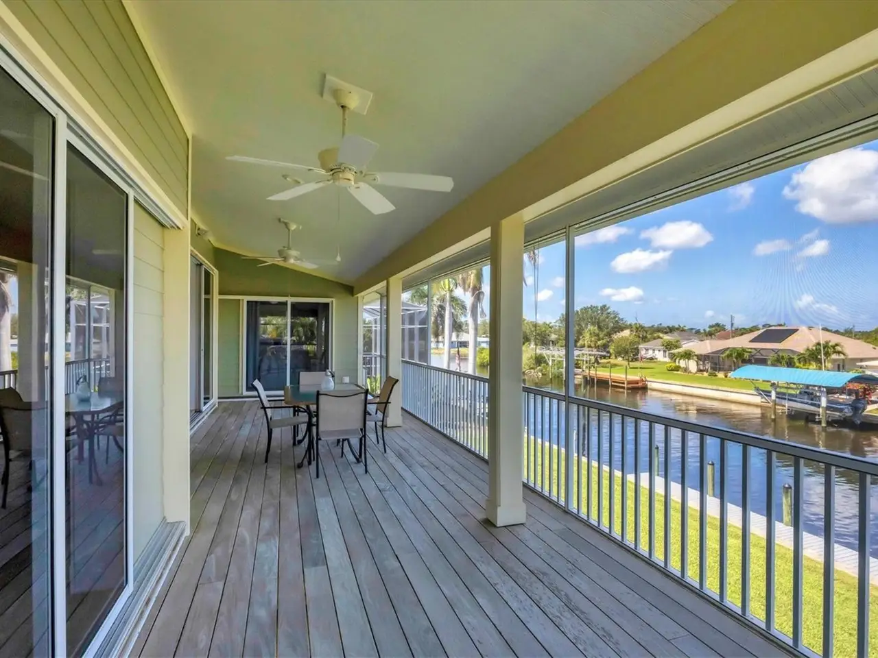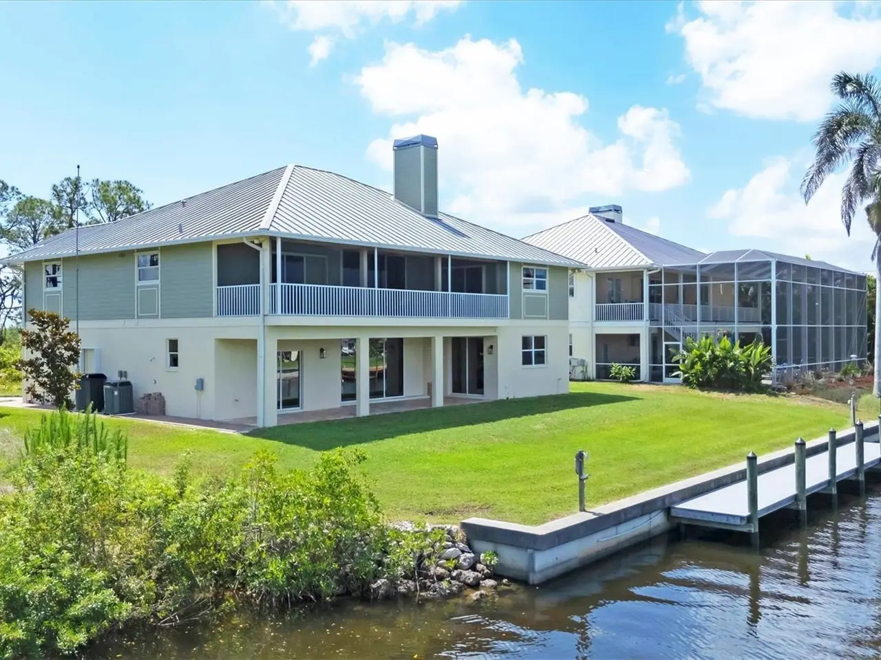 This custom-built waterfront residence is a rare find, offering a harmonious blend of elegance, functionality, and an unbeatable location. Enjoy captivating water views in every direction with the serene Myakka River gracing the front of the home and peaceful canal vistas at the rear. Nestled in a prime boating location, the property provides direct access to the Gulf of Mexico, Intracoastal Waterway, and Charlotte Harbor, making it a true coastal haven. Crafted by a well-known local builder, the home exemplifies superior craftsmanship, solid construction, and a level of thoughtful design tailored to meet the expectations of the most discerning buyers seeking luxury and quality and a true coastal lifestyle. The upper level features a spacious kitchen with warm wood cabinetry, a pantry, and an expansive eat-in dining area, perfect for family gatherings. Custom trim work and solid-core doors elevate the interior, while elegant wooden stairs flow seamlessly between levels. Enhance your daily living with the added convenience of a built-in dumbwaiter, making it effortless to transport items between the lower and upper levels of your home. All bedrooms are generously sized, offering comfort and versatility. The master suite is a true retreat, featuring built-in window benches with storage, two large walk-in closets, and a luxurious bathroom with a floor-to-ceiling tiled shower, linen closet, and private commode. Guests will appreciate the privacy afforded by a pocket door that separates the second spacious bedroom and beautifully updated guest bath. The third bedroom also includes an oversized closet, making it ideal for additional family or visitors. The lower level is a versatile space with tile flooring throughout, currently set up as a game room, and includes a full bath, utility room with washer, dryer, and sink, and a bonus area that could easily be transformed into a fourth bedroom or office. This level opens directly onto a covered patio perfect for entertaining or relaxing after a day on the water. Enjoy peace of mind with hurricane shutters, a metal roof, impact-resistant garage doors, and Hardie Board siding on the upper level with solid block construction below. The home is equipped with two A/C units, including a newer system installed in 2022, and includes a freshly painted exterior and garage floors. The upper lanai, constructed of premium Ipe wood, offers beautiful water views and is fitted with sunshades for added comfort. Boaters will appreciate the 2019 composite dock and pilings, concrete seawall, and extended paver driveway providing ample space for boat or trailer parking. Additional features include an outdoor shower, irrigation system, and a split garage with one single bay and a three-car tandem section offering generous storage for vehicles and marine gear. Welcome to your own slice of paradise this exceptional coastal gem offers sweeping views of the Myakka River from the front and serene canal vistas from the rear, creating a truly captivating waterfront retreat. Thoughtfully designed for those who value both refined elegance and everyday functionality, this rare property blends luxury living with direct access to Southwest Florida's premier boating waters. Perfectly positioned just minutes from unspoiled beaches, top-rated golf courses, upscale dining, and a variety of coastal attractions, this home offers the ultimate opportunity to live the waterfront lifestyle to the fullest.