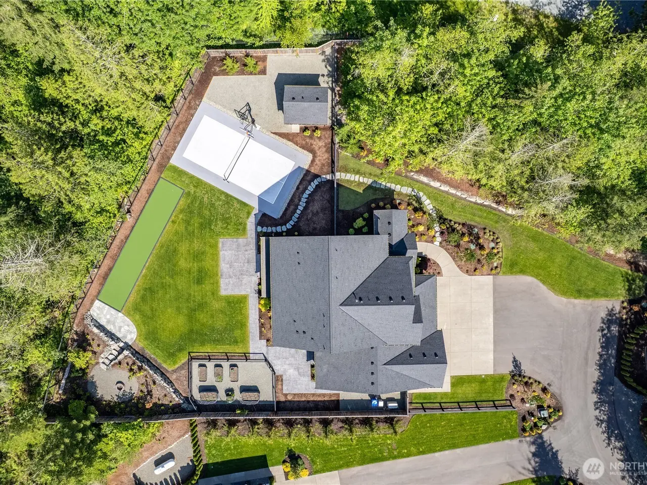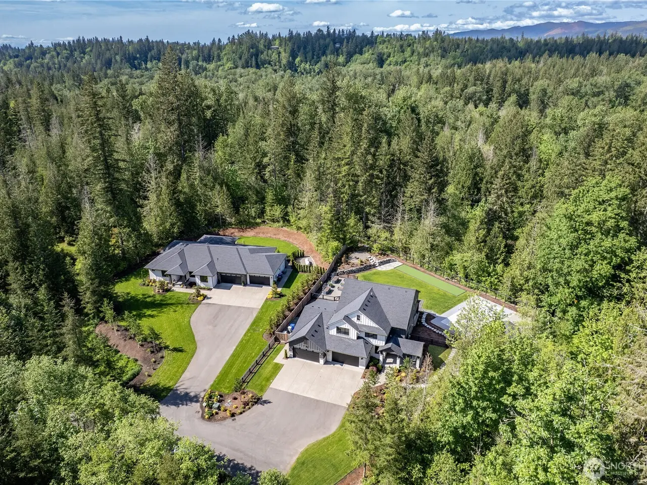 PNW setting & details perfected; 2+acres; trees, garden space w/6 vego beds/irrigated. Enjoy pickle, basket or bocce ball on private courts; Pool/RV parking. Huge 4 car gar. Pristine house-Primary suite main & upper flrs. Enviable Kitchen w/miles of counters/cabinets, built ins. Big pantry. Separate area for adult beverages. Adj party-size fam room accesses big covered deck & yard. 1st floor Full primary suite, sep entr, walk-in closet, lounge & take in the views. Up you'll find loft space for tv/office; giant laundry room, 2 bdrms & Full Primary w tons of windows, reading area, spa bath/dual closets. Third level features additional famroom, office, exercise or sleeping area/.75 bath. Curtis Lang Resale gated! adu/dadu possibilities
