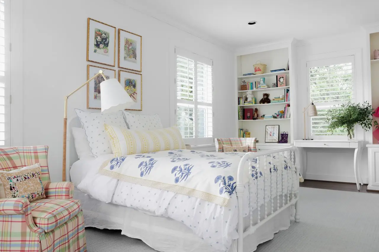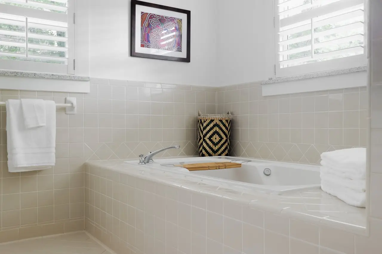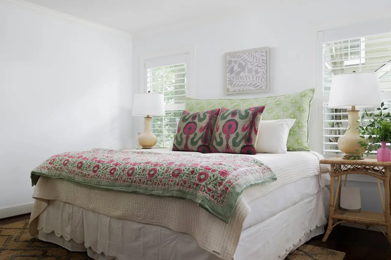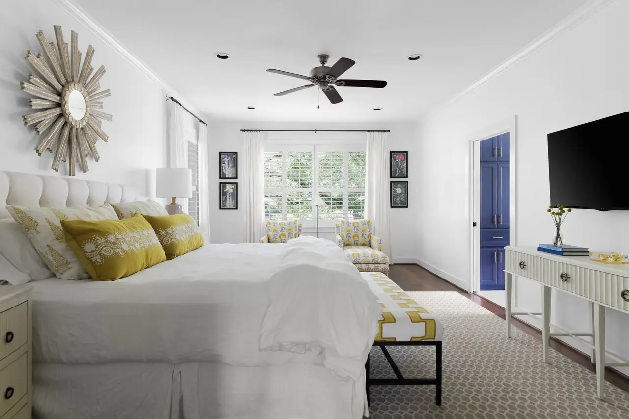 Situated on a spacious quarter acre lot in the heart of Tarrytown, this home boasts a 5 or 6 bedroom, 4.5 bath floorplan offering light filled spaces, colorful accents and easy living. As you enter, you are greeted with a bright, cheerful and spacious open living, dining and kitchen area. Gorgeous wood floors, custom white shutters, touches of wallpaper and a fun pop of color on the stair runner. A light filled sitting room or office overlooking the lush front yard includes built-in storage and shelving. The expansive living space is also anchored by millwork including shelving, storage and media area. The kitchen includes a 6-burner gas Wolf range, double ovens, walk-in pantry, plentiful storage and oversized breakfast bar and island. The adjacent dining area includes built-in bench seating – beautifully upholstered in sunny yellow. An entertainer’s delight! The current floorplan utilizes 3 bedrooms downstairs and 3 bedrooms upstairs, with the primary bedroom located on the second level overlooking the treetops and backyard. The primary bath features an oversized dual shower, dual vanities and two walk-in closets. As an option, there is plenty of flexibility to utilize some rooms as office and gym spaces, or additional living. The generously sized turfed backyard has ample room for play, grilling, dining and gardening. A wood deck offers a space for dining al fresco under gorgeous mature trees. The gated driveway leads to a two car garage. Don’t miss this fantastic opportunity to live in one of Austin’s most desirable neighborhoods. Walkable tree-lined streets, close to shopping, dining, trails and the best of Austin. www.2106schulleave.com