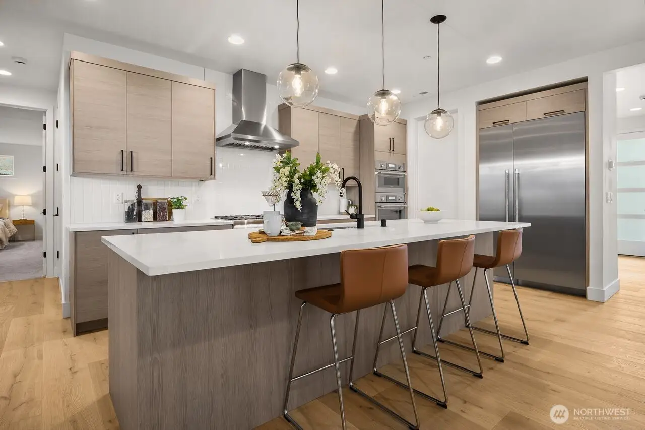 Welcome to Briarstone, a 5 home luxury boutique community in Bothell's top-rated Northshore SD. Minutes from shopping, dining, & fast Seattle/Eastside access. This upgraded floorplan with 3 car garage has an expansive open floor plan- spacious entrance w/an office & powder rm for guests lead into chef inspired Kitchen w/Thermador Appl, 6 burner Gas cooktop, walk in Pantry, Great Rm/Dining Rm. Main-floor also hosts a Mud Rm & Bedroom suite perfect for Multi-Gen living. Upstairs- Spa-inspired Primary retreat w/WIC, Bonus Rm, Laundry w/sink & cabinets, spacious Secondary Beds, one w/ensuite Bath, offering an abundance of space & comfort. Each home comes w/Refrigerator, Electric Heat Pump -which provides your A/C & Gar Door Opener with remote!