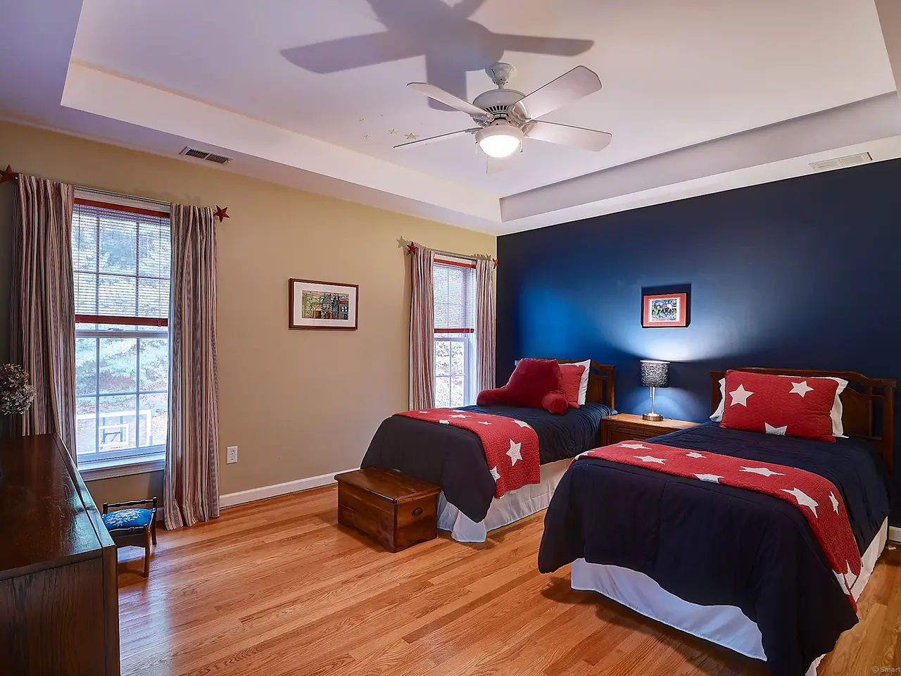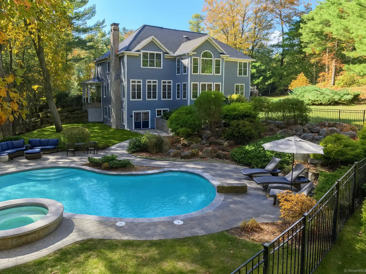 Welcome Home to Lazy Valley Luxury! Step into this custom-built 5-bedroom, 4 full & 2-1/2 bath, masterpiece in the exclusive Lazy Valley neighborhood - where elegance meets everyday comfort. From the welcoming covered front porch to the meticulously landscaped yard and 1-year-old roof with striking metal accents, every detail has been designed to impress. Inside, you'll find gleaming hardwood floors throughout the first level, coffered ceilings in the great room, and fantastic mudroom space. The kitchen is the heart of the home - with walk-in pantry & nearly new high-end appliances that make both entertaining and weeknight meals a joy. The flexible main-floor layout provides options for an in-law suite, home office, or playroom, adapting easily to your lifestyle. Upstairs, enjoy four spacious guest bedrooms and a luxurious primary suite, each with large walk-in closets complement the abundant storage throughout the home. The finished lower level adds approximately 1,600 sq. ft. of living space, complete with a custom bar for entertaining and a dedicated home gym - perfect for fitness and fun without ever leaving home. During the warmer months entertain family and friends next to the gunite pool with patio surrounds. Listen to your favorite tunes inside and out on the homes extensive Sonos speaker system. This exceptional property blends grand design, thoughtful details, and modern convenience - a true gem in one of the area's most sought-after neighborhoods. HOA Fee is $1,000 annually. This includes maintenance of roads in the neighborhood, snow removal on neighborhood roads and care of entry sign and gazebo. *Newer HVAC, 1 year old roof, newer appliances.