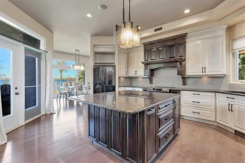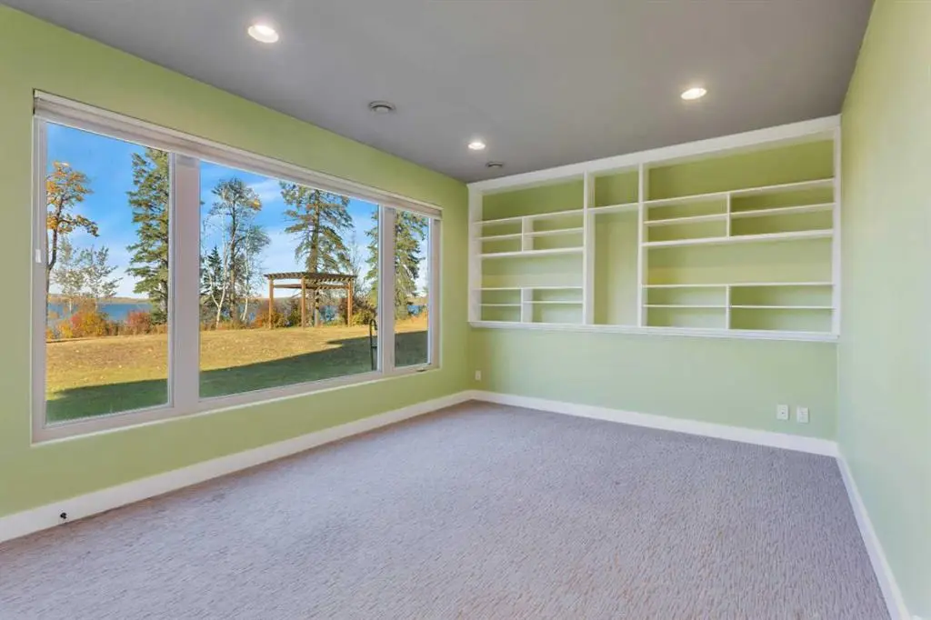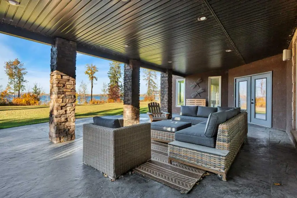 A rare opportunity to own an exceptional lakefront estate on 74 acres of prime Alberta countryside. This prestigious walkout bungalow offers an unmatched blend of luxury, privacy, and natural beauty, all with Riparian water rights. Located on 22108 Township Road 392 in Lacombe County, this residence exudes timeless elegance with custom finishes and breathtaking lake views throughout. Step inside to a chef-inspired kitchen, complete with granite countertops, custom cabinetry, and a layout designed for both daily living and entertaining. The expansive living room features coffered ceilings, a grand marble-faced fireplace, and floor-to-ceiling windows that showcase unobstructed water views. The primary retreat is a sanctuary of its own, with built-in cabinetry, panoramic lake-facing windows, a spa-inspired ensuite with walk-in shower, and an impressive walk-in dressing room. The lower level is built for entertaining, boasting a wet bar, spacious family room, and walk-out access to a covered patio, creating seamless indoor-outdoor living. Three large bedrooms downstairs offer comfort and scenic views. A bonus guest suite above the garage adds flexibility and privacy for visitors. The property includes a second home (not part of the listing) and is currently undergoing boundary adjustments, with new legal registration forthcoming. Whether you're dreaming of a private retreat, family estate, or a legacy property, this vacant, ready-for-viewing home offers unparalleled lifestyle potential.