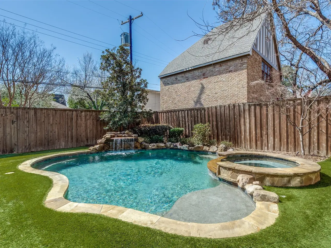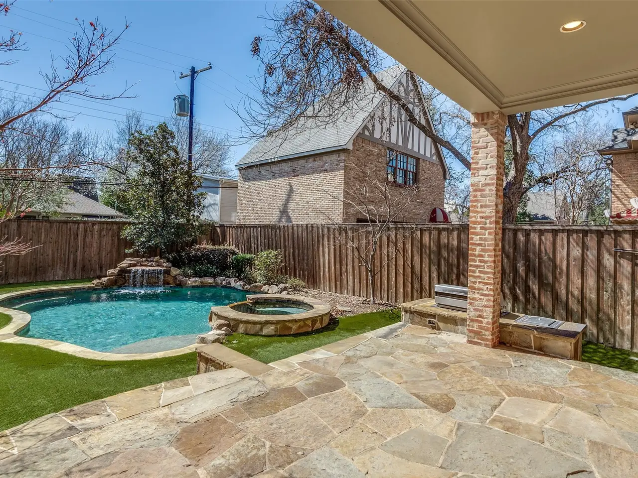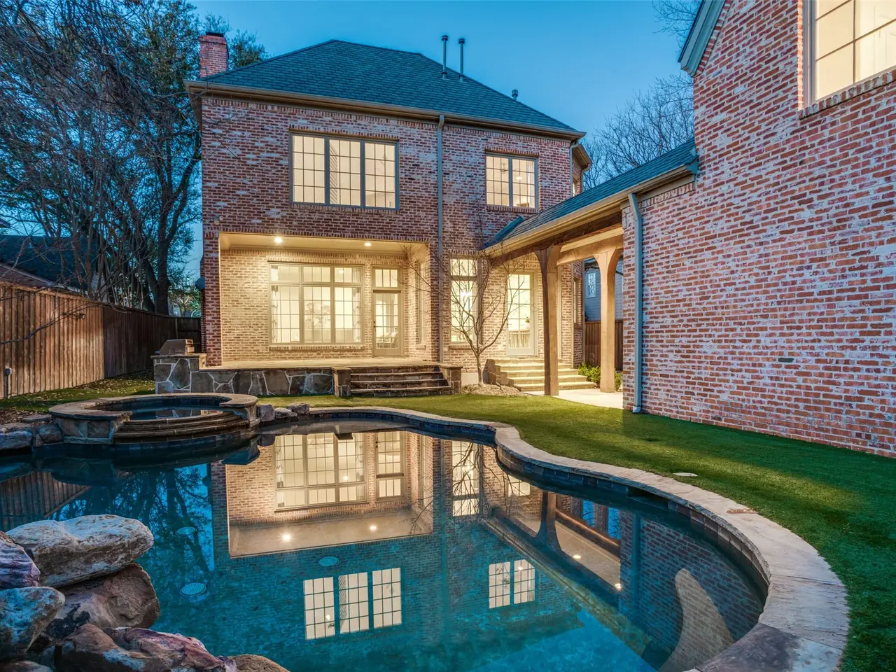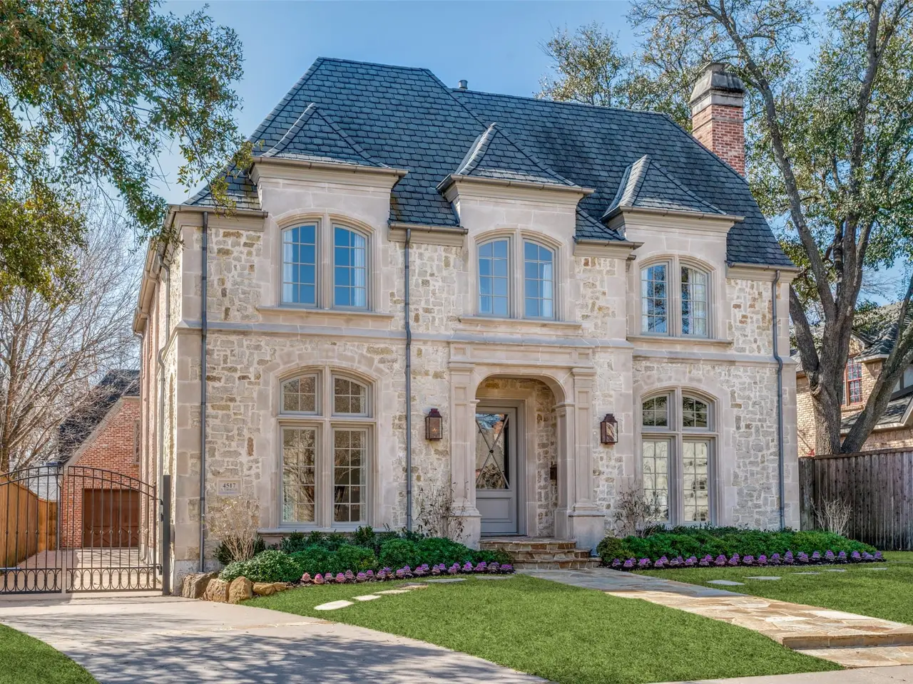 Step inside 4517 N Versailles Ave, the best value in the heart of The French Streets of Highland Park. Situated on an oversized 65 x 150 lot, this four bedroom, five and a half bath, 6190 square foot clean lined beauty offers the most ideal floor plan with designer finishes. Built by renowned Hawkins-Welwood Homes in 2001, 4517 N Versailles features the perfect blend of elegance and modern luxury. Enter into spacious formals, 10+ ft tall ceilings, wide hallways, and gleaming hardwoods throughout. The generous-sized family room with a fireplace and built-ins overlooks the sparkling pool, spa and turfed backyard. The stunning, remodeled kitchen is light and bright with top-of-the-line stainless steel appliances and a large walk-in pantry. Butler's pantry with wine storage and crushed ice machine is ideal for hosting. The oversized master suite features a sitting area, large windows overlooking the backyard, and beautiful built-ins. The master bathroom includes separate vanities, his and hers custom closets, a jetted tub and a separate shower. Each bedroom has its own ensuite bathroom, walk-in closet and custom drapery. The spacious third-floor flex room with an attached full bath and closet would make a perfect playroom, media room, or home gym. Enjoy the private outdoor oasis with a covered patio, built-in grill, gorgeous pool, spa, and rocky waterfall feature, perfect for entertaining. Guest suite features a kitchenette, full bathroom, and closet. The most PRIME Dallas location, walking distance to Bradfield Elementary, Highland Park Village, Flippen Park, and easy access to the tollway!