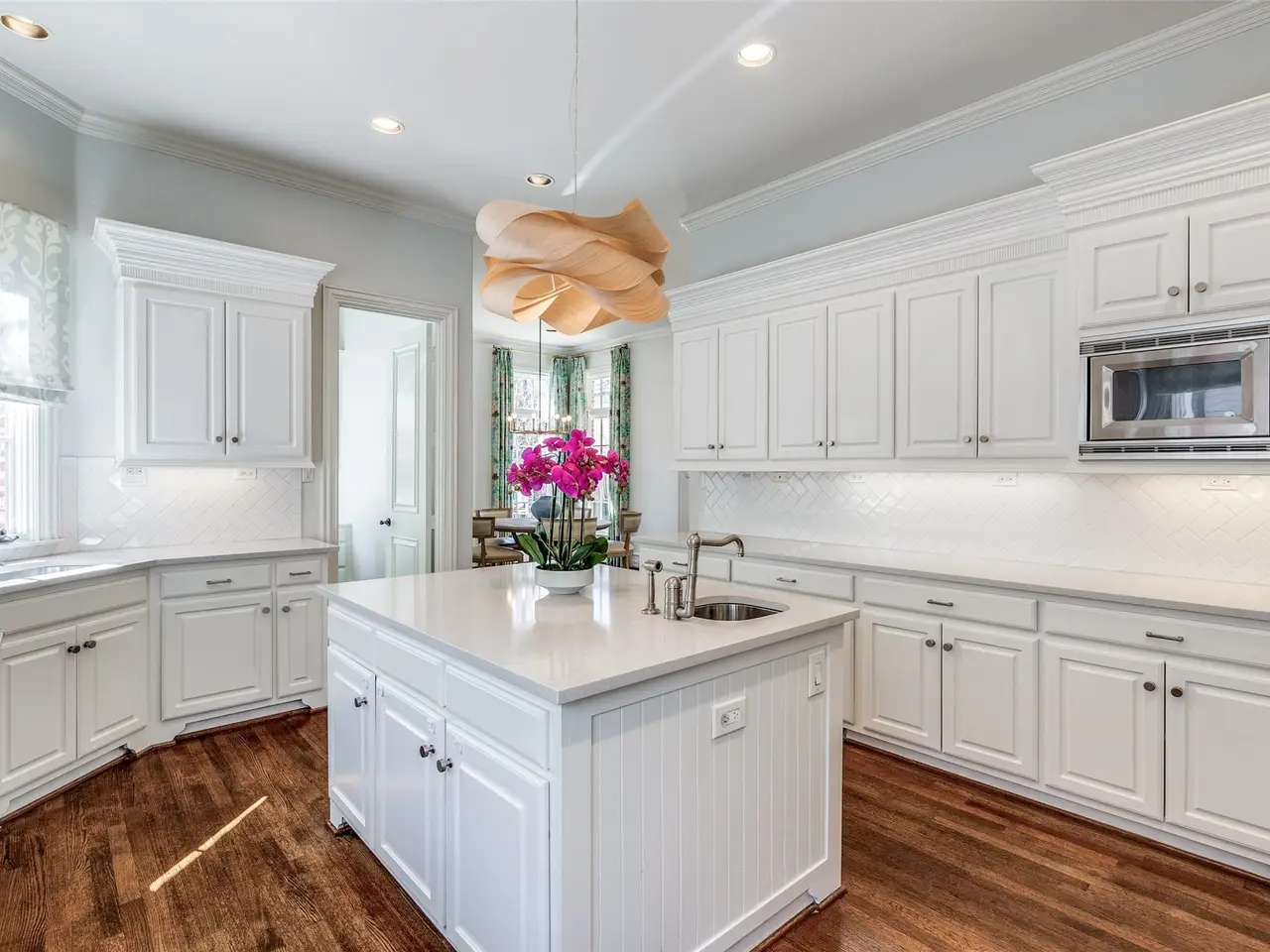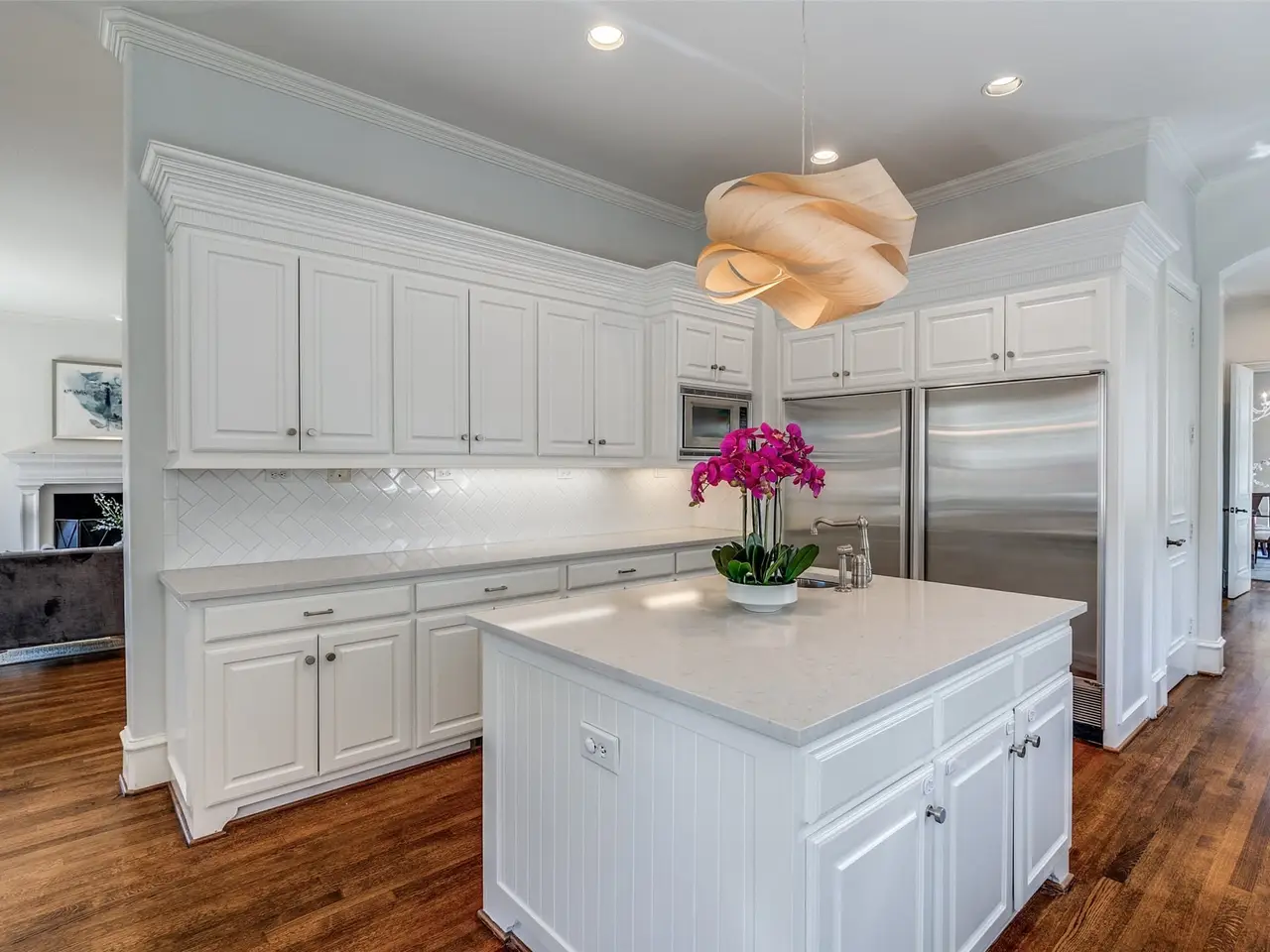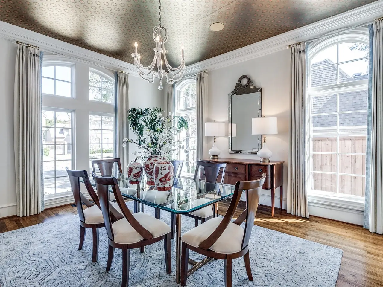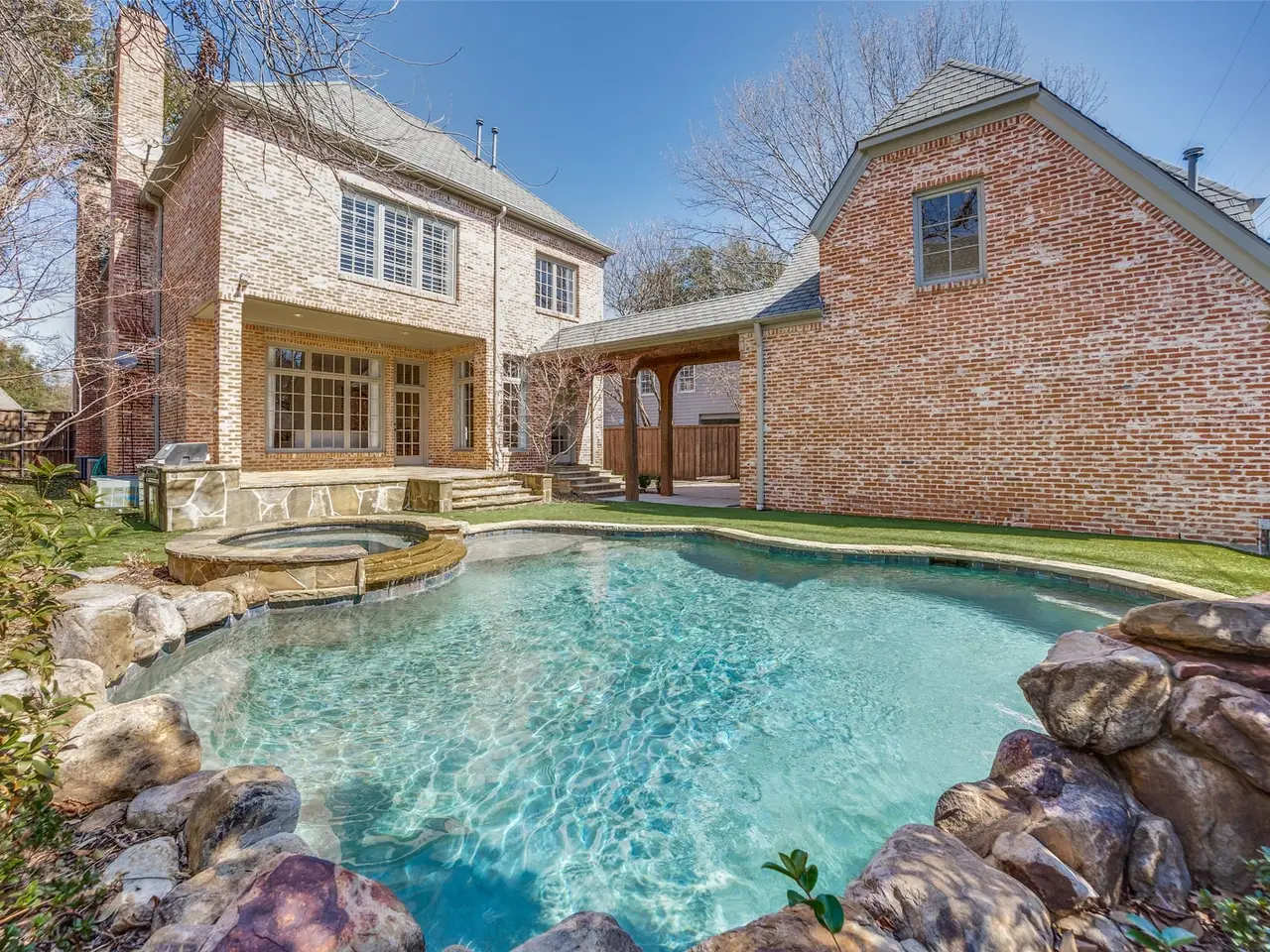 Step inside 4517 N Versailles Ave, the best value in the heart of The French Streets of Highland Park. Situated on an oversized 65 x 150 lot, this four bedroom, five and a half bath, 6190 square foot clean lined beauty offers the most ideal floor plan with designer finishes. Built by renowned Hawkins-Welwood Homes in 2001, 4517 N Versailles features the perfect blend of elegance and modern luxury. Enter into spacious formals, 10+ ft tall ceilings, wide hallways, and gleaming hardwoods throughout. The generous-sized family room with a fireplace and built-ins overlooks the sparkling pool, spa and turfed backyard. The stunning, remodeled kitchen is light and bright with top-of-the-line stainless steel appliances and a large walk-in pantry. Butler's pantry with wine storage and crushed ice machine is ideal for hosting. The oversized master suite features a sitting area, large windows overlooking the backyard, and beautiful built-ins. The master bathroom includes separate vanities, his and hers custom closets, a jetted tub and a separate shower. Each bedroom has its own ensuite bathroom, walk-in closet and custom drapery. The spacious third-floor flex room with an attached full bath and closet would make a perfect playroom, media room, or home gym. Enjoy the private outdoor oasis with a covered patio, built-in grill, gorgeous pool, spa, and rocky waterfall feature, perfect for entertaining. Guest suite features a kitchenette, full bathroom, and closet. The most PRIME Dallas location, walking distance to Bradfield Elementary, Highland Park Village, Flippen Park, and easy access to the tollway!