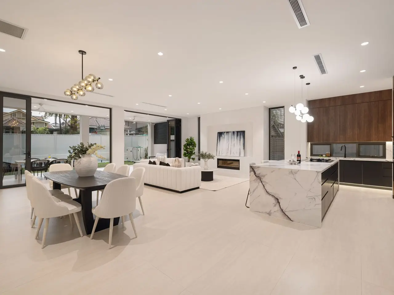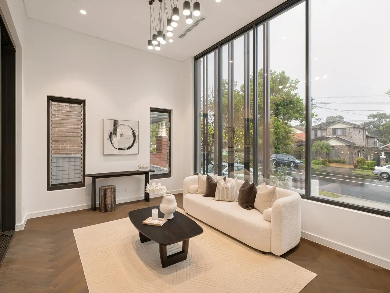 Discover refined luxury in this exceptional family residence, masterfully crafted by ES Design. With generous living areas and premium finishes throughout, every element reflects timeless sophistication and comfort. Perfectly positioned just moments from the lively cafes and shops of Concord Road and North Strathfield Station, this elegant home offers both tranquility and convenience. - Custom designed by acclaimed ES Design, showcasing timeless architecture and bespoke craftsmanship - Unique family room with soaring four-metre ceilings connects seamlessly to the private courtyard - Expansive open-plan living room features a designer fireplace and premium finishes, a luxurious central hub - Master retreat includes a walk-in robe, private balcony, an opulent ensuite with dual vanities, rain shower - Statement atrium-style layout channels natural light through expansive windows, enhancing space and ambience - Gourmet marble kitchen appointed with premium Miele appliances, bespoke cabinetry, and a full butler's pantry - Sun-drenched interiors transition to outdoor areas with a resort-style pool, built-in BBQ, and manicured gardens - Four to five generous bedrooms with custom robes, plus a private study and four designer bathrooms - Striking sunroom captures garden views and natural light, creating the perfect setting for relaxation or entertaining - Interiors showcase refined elegance with custom finishes, high ceilings, and integration of smart home technology - Oversized basement offers secure parking, abundant storage space, and ducted air-conditioning across all levels - Just 300m from Strathfield North Public School and 600m to the station, with easy access to Sydney CBD - Stroll to Majors Bay Road village, home to cafés, restaurants, boutique shopping, and lifestyle amenities