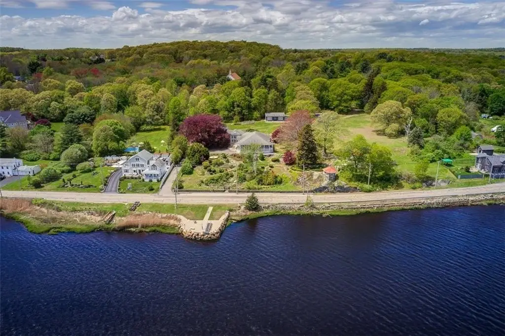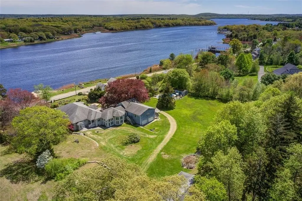 Perched on 3.8 acres of direct waterfront, this magnificent home blends privacy, natural beauty and comfort! Soaring ceilings, panoramic vistas and open-concept layout radiate warmth and sophistication. This retreat has added beauty of a historic stone gazebo with river views as well! Inground pool, four garage spaces for the car collector and stunning copper beech trees lining the property are just a few of the many surprises found truly making this a hidden gem! Direct river access to your private pier with deep water dock further sets this property apart from most! Swim, fish, boat or cruise to waterfront dining is awaiting the new Buyers! The acreage lends itself to accommodating large family gatherings, class reunions or even wedding venues!! Though it feels worlds away, this property offers quick access to Boston via the newly extended commuter rail, Providence and Cape Cod ... a rare mix of peaceful, WATERFRONT seclusion and metropolitan living!