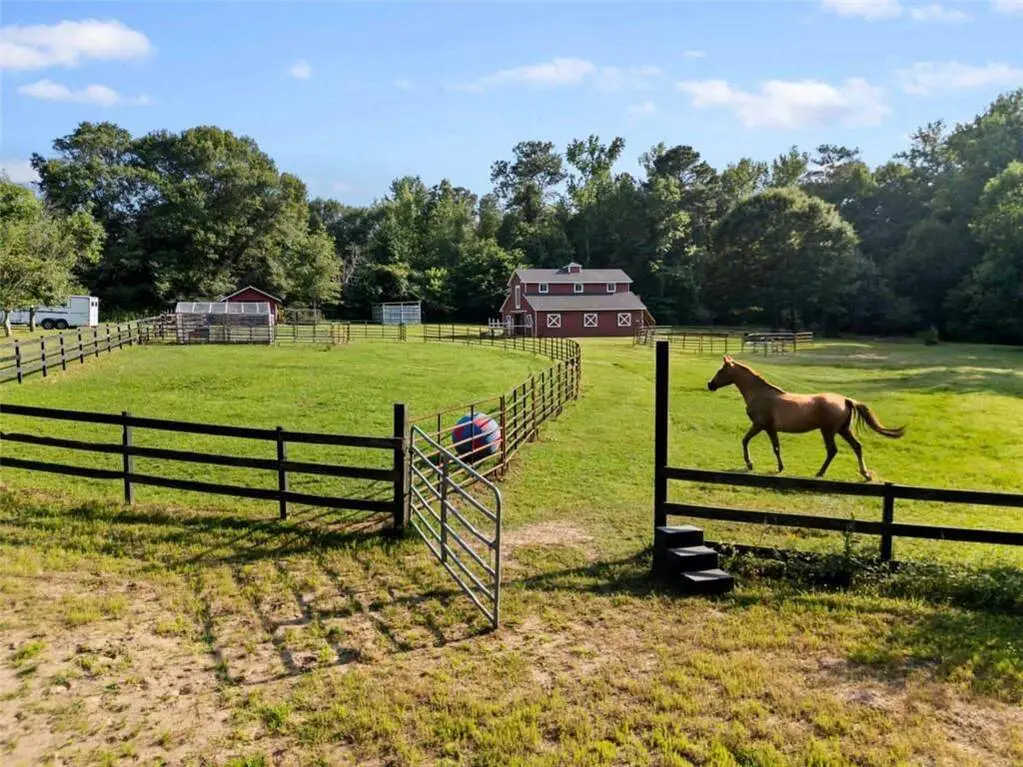 Classic Southern charm meets elegant equestrian living on this 34 acre estate. This beautifully crafted, traditional four-sided brick home offers 3575 sq. ft. of comfortable, functional living space, featuring 4 bedrooms - including a spacious primary suite on the main level - 4 full baths, and a half bath. Thoughtfully designed for both everyday living and entertaining, the home is surrounded by gently rolling pastureland in a peaceful country setting. Equestrians and hobby farmers alike will appreciate the well appointed 5-stall barn, complete with a wide center aisle, tack room, wash rack, and upstairs hayloft. Four large pastures are already in place, with plenty of room to add more. There's also a creek along the rear of the property, and a sand arena that's perfect for training or recreation. Tucked among other large-acreage properties, this idyllic farm offers the best of both worlds - rural tranquility, but just minutes from the charm of Olde Town Conyers and with easy access to Atlanta via I 20. Whether you're dreaming of a quiet countryside retreat, a boutique training facility, or a fully functional hobby farm with access to city convenience, this property checks all the boxes.