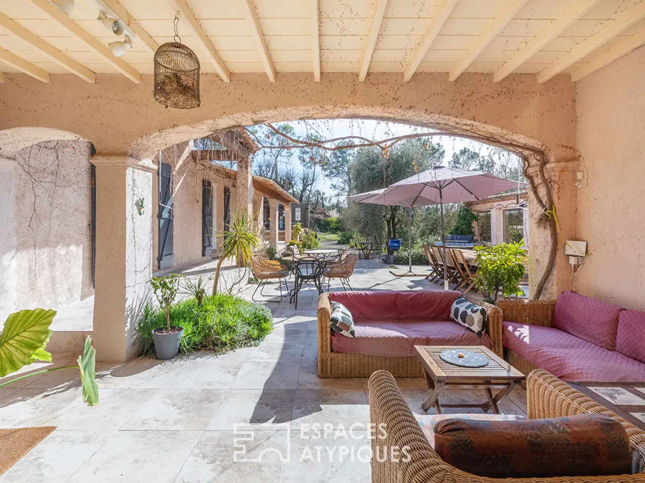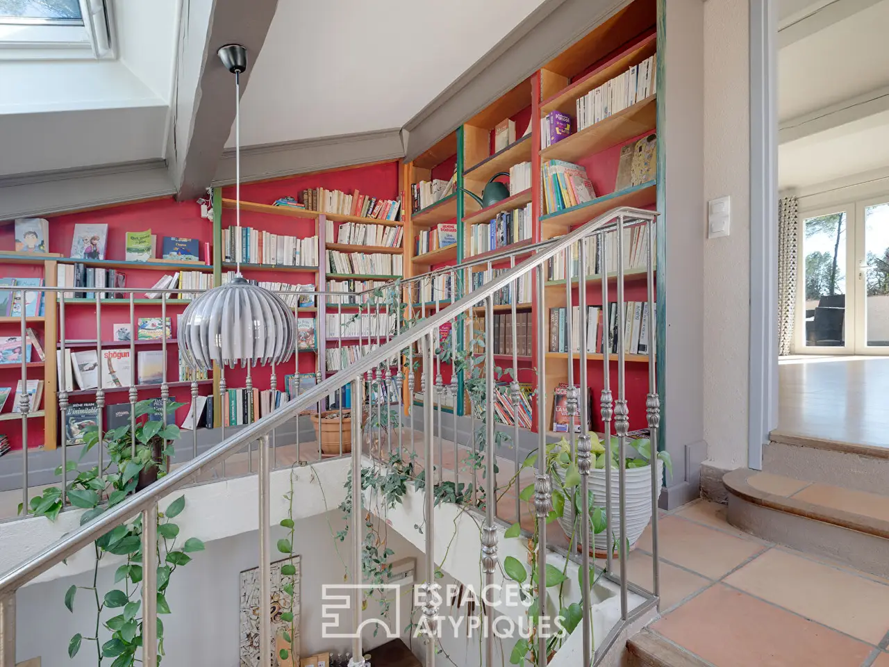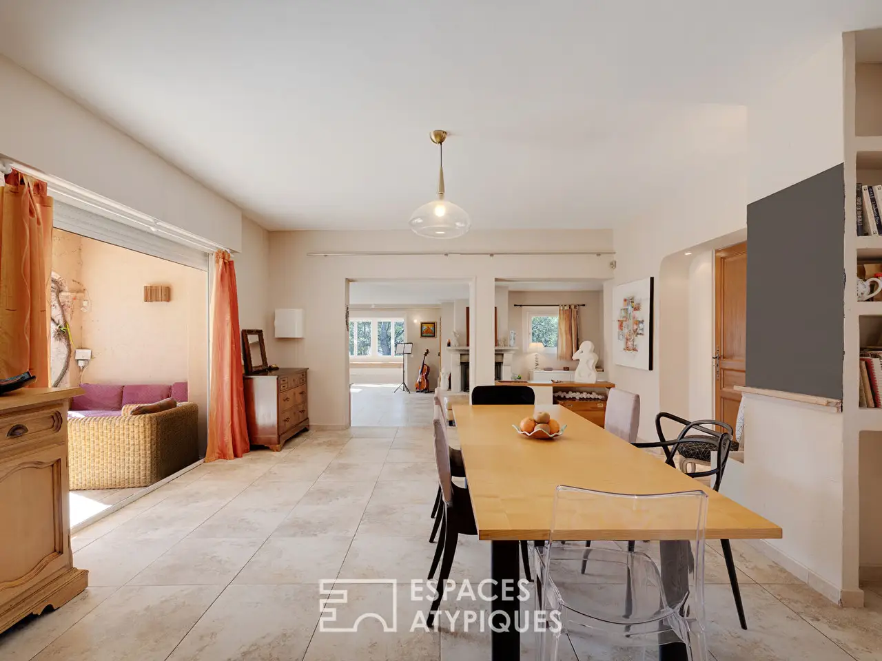Gites and guest rooms in a green setting Nestled in the heart of a peaceful and green environment, this architect-designed house from the 70s seduces with its unique character, its generous volumes and its enchanting setting. Built on a vast plot of 5,000 sqm, it has approximately 282 sqm of living space, divided between a main house and an independent apartment, ideal for receiving family and friends or for a seasonal rental project. As soon as you arrive, the charm operates thanks to a harmonious and functional design. The entrance hall opens onto a spacious living room bathed in light, offering nearly 80 sqm of reception space decorated with an insert fireplace. The American kitchen, fully fitted and equipped, extends into a laundry room with direct access to the carport, combining comfort and practicality. This level also accommodates a separate shower room with toilet as well as three en suite bedrooms, with refined decoration, two of which benefit from independent access via the terrace, to receive in complete privacy. Upstairs, an elegant library leads to a sumptuous 63 sqm master bedroom including a dressing room, a bathroom with shower and bathtub, a toilet, a private terrace as well as two additional rooms, in a row, to be converted into a bedroom or office. The garden level houses an independent 57 sqm apartment, composed of a living room with open kitchen, two bedrooms, a shower room with toilet and a laundry room. The exterior, in perfect harmony with its natural environment, invites relaxation and serenity. An 80 sqm terrace leads to a wooden solarium, where an elegant mosaic masonry swimming pool (9×4 m) and its pool house are integrated. An isolated wooden shed completes this wellness area. The garden, carefully maintained and decorated with medicinal species and fruit trees, provides a soothing and authentic atmosphere. This property is distinguished by its unique architecture, its vast volumes and its multiple possibilities. A true haven of peace, in a calm and bucolic environment, this property is the ideal place for a main residence, secondary residence or a tourist project. ENERGY CLASS: C (175kWh/m2/year) / CLIMATE CLASS: A (5 kg CO2/m2/year) Estimated average amount of annual energy expenditure for standard use, established from 2021 energy prices: between EUR2,950 and EUR4,040 REF. 11274 Additional information * 8 rooms * 6 bedrooms * 3 bathrooms * 4 shower rooms * Outdoor space : 5002 SQM * Parking : 4 parking spaces * Property tax : 3 854 € Energy Performance Certificate Primary energy consumption c : 175 kWh/m2.year High performance housing