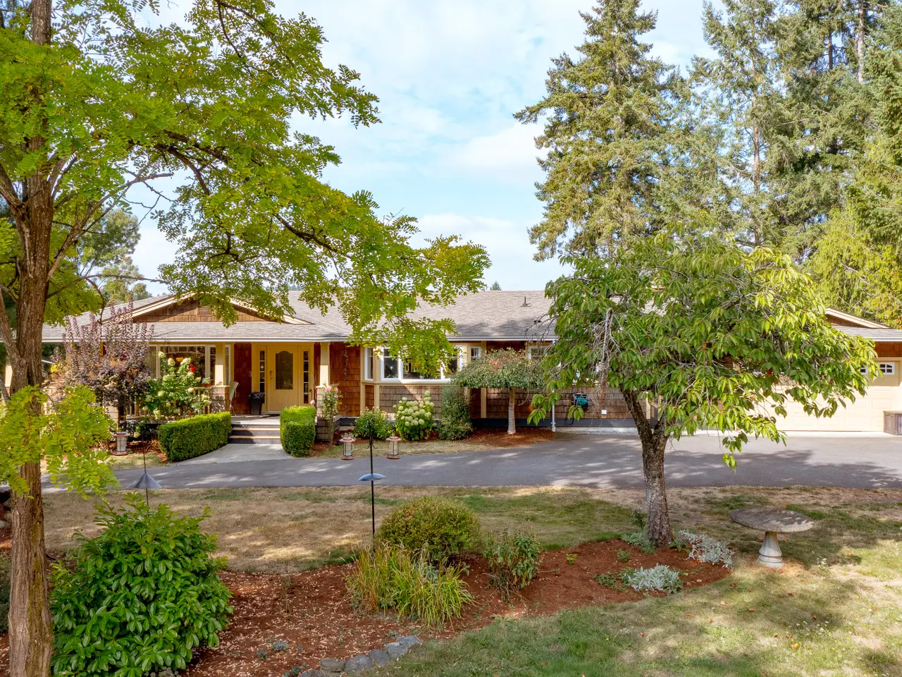 Step into your new home with over 3,000 sq. ft. of finished living space on a fully fenced 2.1-acre estate. The rancher-style residence offers 4 bedrooms, 3 bathrooms and a den with a bright primary suite opening to a deck overlooking fruit trees, gardens and vineyard views. The open kitchen and dining area are perfect for gatherings, while a heat pump, newer dishwasher and water heater provide practical convenience. Separate from the main home is your private home theatre, perfect for cozy nights in. The cold room stores your wine or harvest and the garage features an over-height ceiling ideal for your RV, boat or creative pursuits. A charming 1 bedroom, 1 bathroom carriage house with kitchen, living area and in-suite laundry welcomes family or guests. Located in a peaceful, pastoral neighbourhood just steps from Quamichan Lake and 10 minutes to Duncan, this rare offering blends tranquility, convenience, and idyllic country charm.