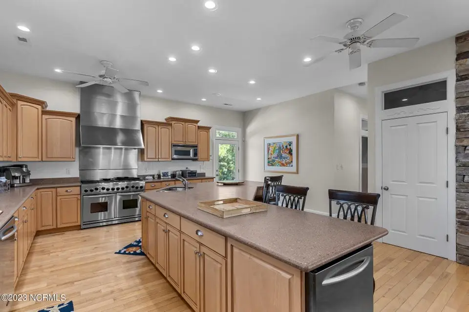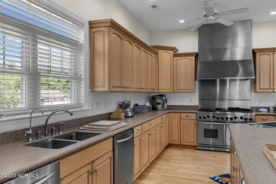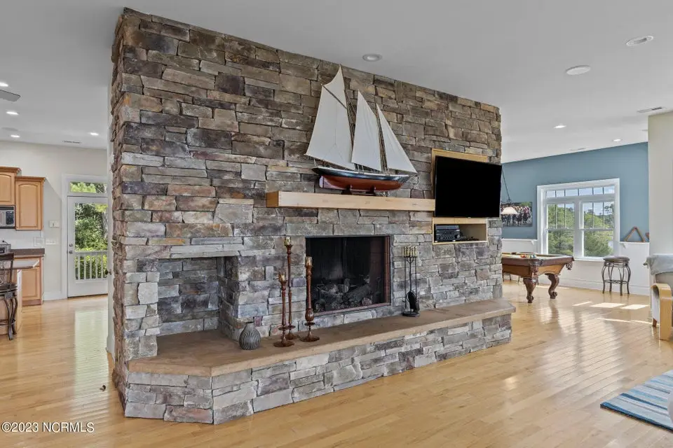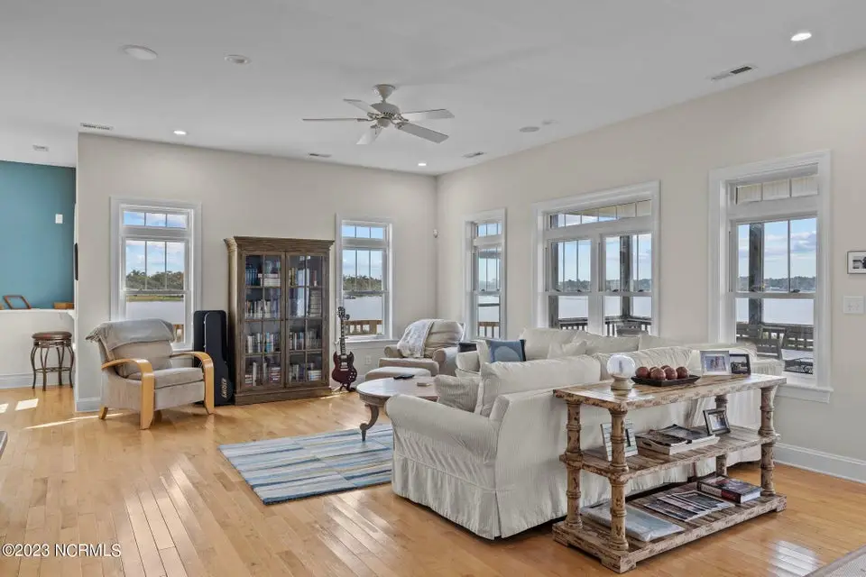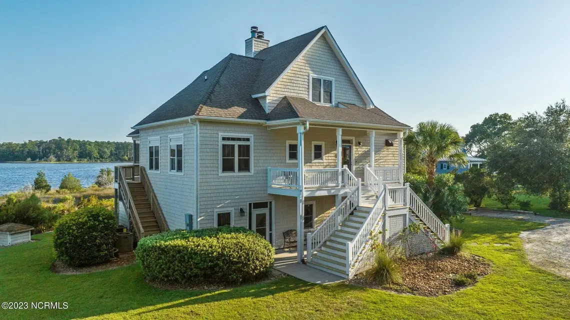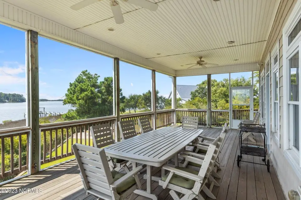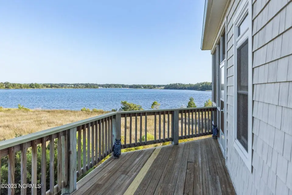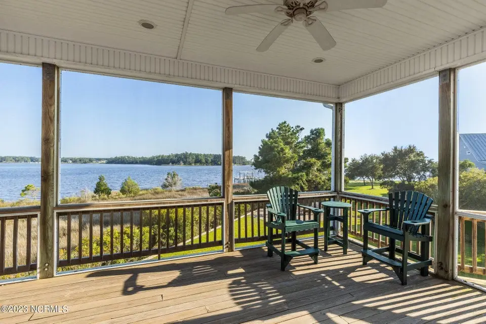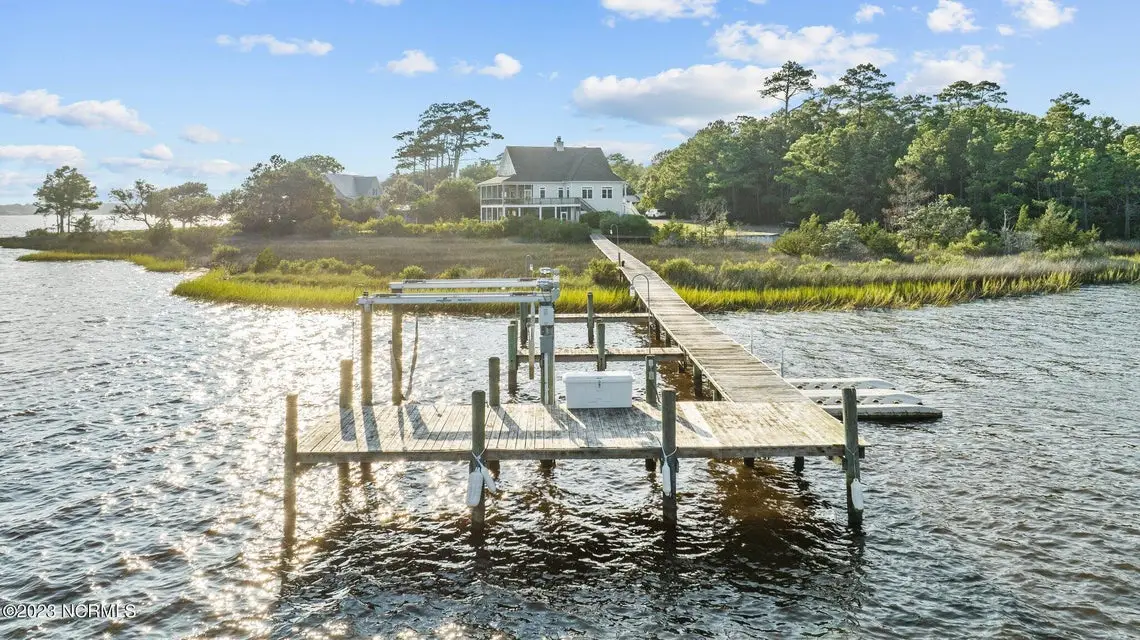 Looking for a secluded getaway? Ever dreamt of owning your waterfront retreat where you can escape your busy, hectic lifestyle? This dream home offers 180-degree water views, a bulkheaded shoreline, a private boat ramp, a private dock, boat lift, and slips. Hop in your boat and head to Historic Swansboro for Sunday morning brunch or an evening dinner. You can also head out to your favorite sandbar or island to relax, or just offshore to catch fish for a fish fry with friends. The views will leave you spellbound, with skies full of white puffy clouds against a vivid blue backdrop. You'll think it's a picture, and even thunderstorms with lightning will be so intriguing that you'll be tempted to turn off all the lights and enjoy the light show from your screened-in porch or open deck. You might catch a glimpse of a dolphin passing by or see a kingfisher swoop down and come up with a fresh fish for lunch. This could be the perfect spot for you. A beautiful home on a waterfront lot with three bedrooms, three full baths, and one half bath. The gourmet kitchen is envy-worthy, featuring gas double ovens, eight burners, a commercial-style vent hood, prep sink, a full double basin sink, solid surface countertops, and ample kitchen cabinets. There are also two dishwashers, a full refrigerator, a beverage refrigerator, an ice maker, and solid wood floors on the main living level. The kitchen flows into the dining area and the oversized living area, where you'll find an impressive custom-designed stone gas fireplace. Around the corner of the living area is a large room perfect for entertainment and offering stunning views. The third floor boasts two master bedrooms, both with private full baths, an office, a foyer, and a laundry room. On the ground level, you'll find a spacious living area with a bedroom, living area, and kitchenette, all heated. The ground level also features a huge screened-in area with a fireplace, an oyster bar, a fish cleaning area, a half bath, and a storage room. Additional amenities include an outdoor shower and more. This home comes furnished with a few exceptions