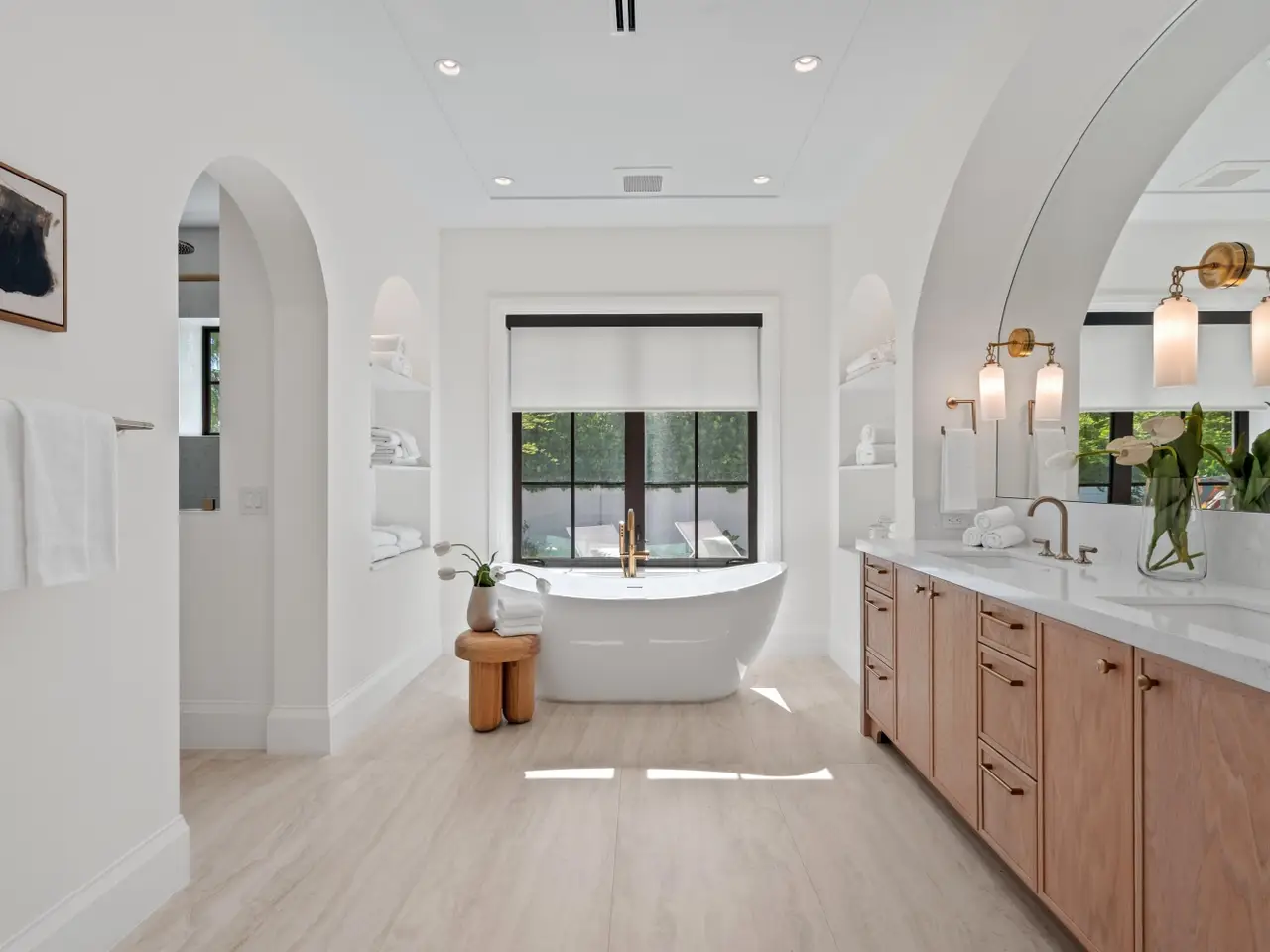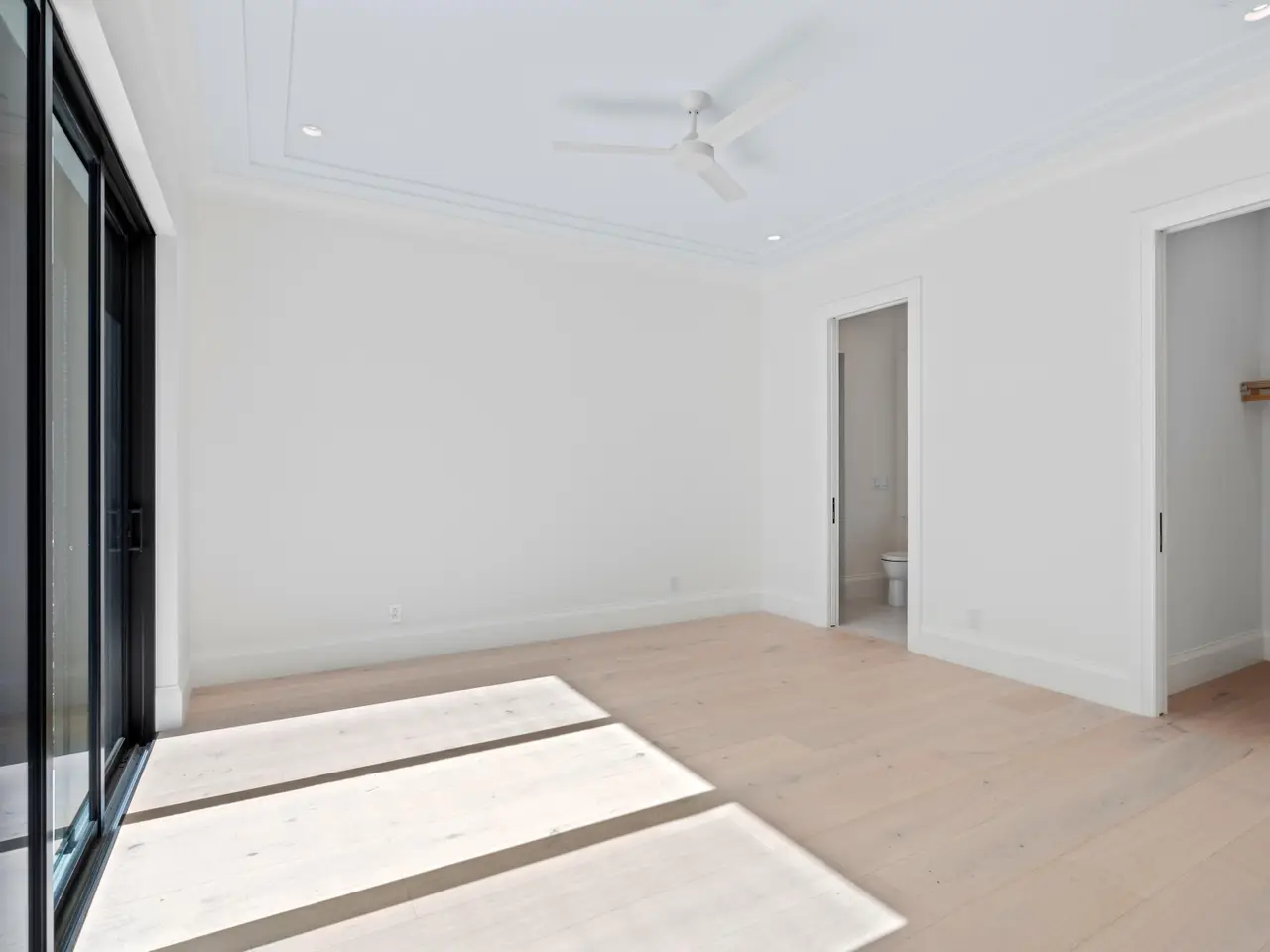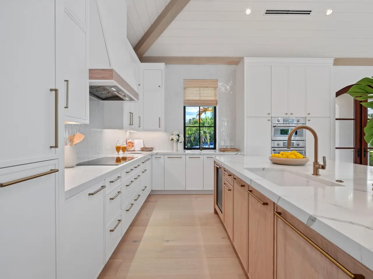 On a prime corner lot in Delray Beach's coveted Lake Ida enclave, this chic 2025-built contemporary residence offers an open floorplan great room, topped by a beamed vaulted ceiling, accessing the pool loggia and summer kitchen; four bedrooms with the primary bedroom opening to a private covered patio, a pocket office; and a cook-island kitchen with two-tone cabinetry, quartz counters and Thermador appliances.