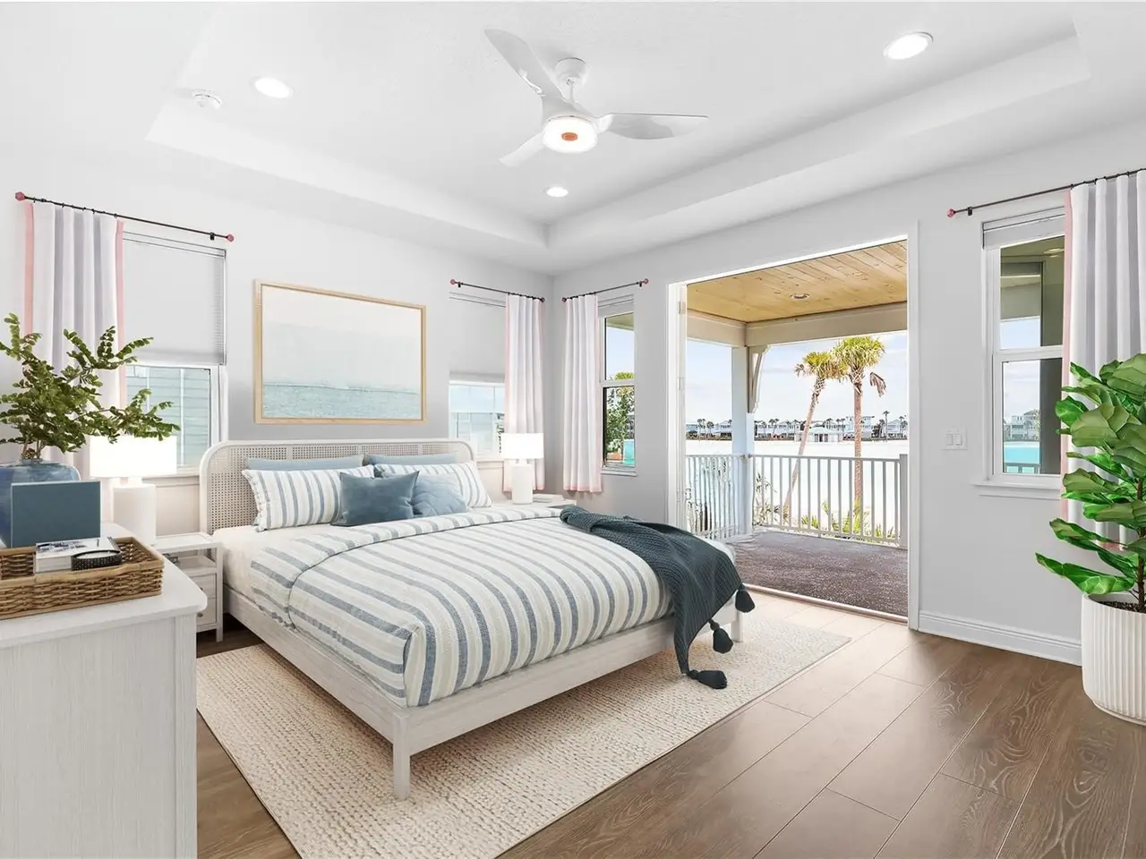 One or more photo(s) has been virtually staged. Welcome to Paradise at the Beachwalk! This is more than just a home — it’s a front-row seat to the ultimate lagoon lifestyle. Perfectly positioned on a premium corner lot with direct waterfront views and access. This is the only true 4-bedroom home on the lagoon, offering an unbeatable blend of luxury, comfort, and thoughtful upgrades throughout. Step inside and you’ll be greeted by extra-large windows that frame breathtaking views of the turquoise lagoon. The chef-inspired kitchen features soft-close cabinets, pull-out drawers, quartz countertops, stainless steel appliances, and an oversized walk-in pantry that provides all the storage you could ever need. The primary suite is a true retreat with a rainfall shower and an added window that brings in peaceful lagoon views. The home is wired for electric vehicle charging (50 amp), includes automatic stair lighting, and additional R19/30 insulation between floors for added privacy and soundproofing. Living in Beachwalk means every day feels like a vacation. Enjoy private beach access, a state-of-the-art fitness center, on-site dining, tennis, pickleball, paddleboarding, waterslides, and so much more. If you're looking for unbeatable views, the best location, and a home that checks every box — this is it. Schedule your private showing today and experience the Beachwalk lifestyle for yourself.