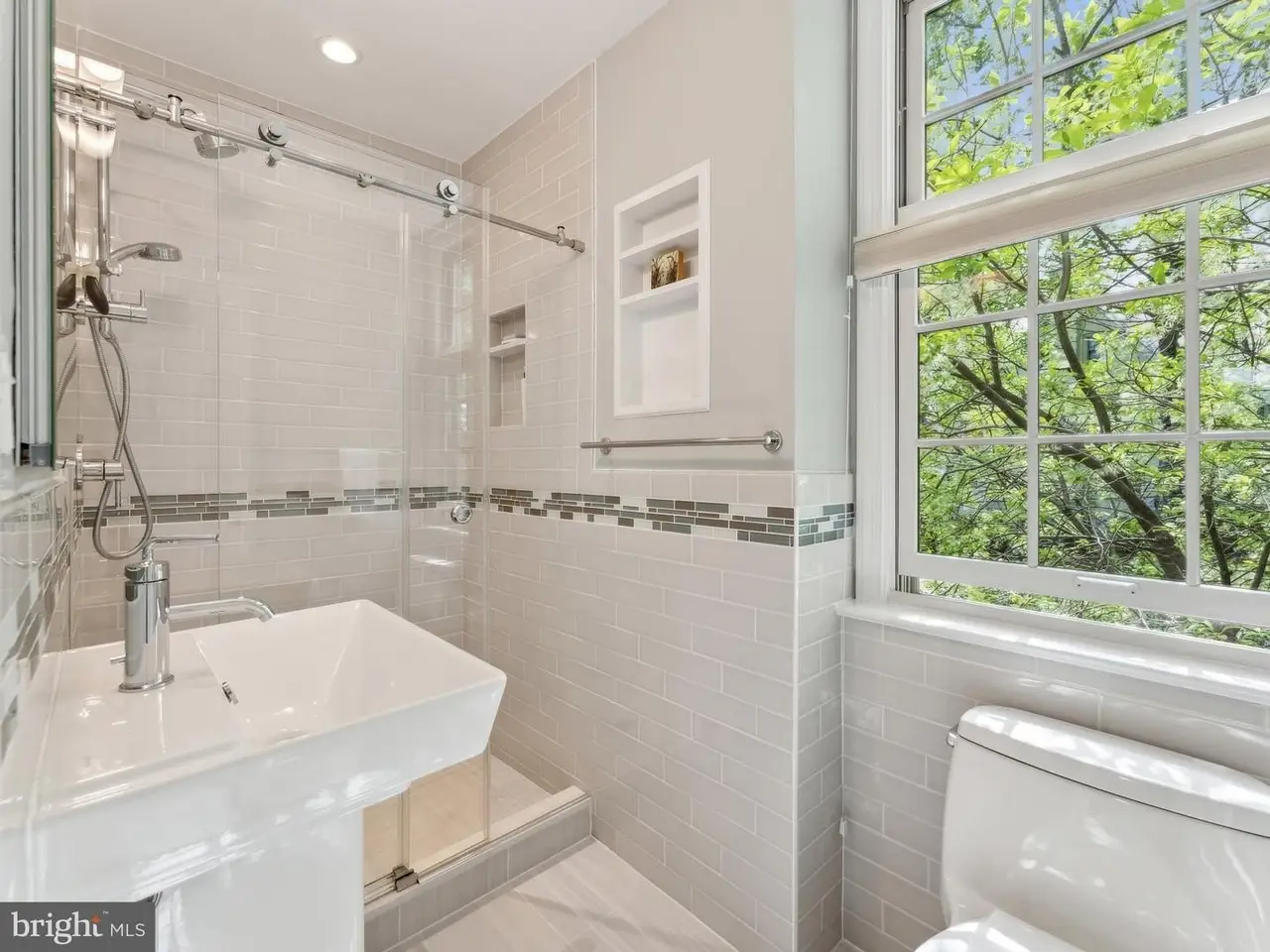 Nestled in the heart of picturesque Barnaby Woods, just steps from a tranquil Rock Creek Park tributary, this gorgeous 1939 Dutch Colonial perfectly blends timeless charm with modern comfort. Set on a quiet, tree-lined street, the home welcomes you with classic curb appeal and thoughtful updates throughout. Step inside the inviting entry foyer with coat closet and discover a spacious living room featuring a wood-burning fireplace and access to a serene rear screened porch, an ideal spot for morning coffee or evening relaxation. The dining area opens seamlessly to a chef's kitchen boasting custom walnut cabinetry, Brazilian quartzite countertops, a suite of stainless steel KitchenAid appliances, and a casual counter for two. A den or home office with powder room complete the main level. Upstairs, find three generous bedrooms and two full baths, including a renovated primary bath en suite with modern finishes. Pull-down attic stairs provide easy access to additional storage. The walk-out lower level offers a recreation room with a second fireplace, laundry area, storage/utilities, a fourth bedroom, and an additional powder room, perfect for guests or flexible living. Outside, the private rear yard is an oasis of calm with a deck, stone patio, lush lawn, and terraced stone walls. Adding to the home's appeal is the garage-turned-artist studio, featuring cathedral ceilings, abundant natural light, barn doors, and its own heating and cooling system; a dream space for creatives, remote work, or hobbies. A rare find in one of Northwest DC's most sought-after neighborhoods, 6670 32nd Street NW offers timeless architecture, versatile living, and a peaceful setting just moments from parks, shops, and city conveniences.