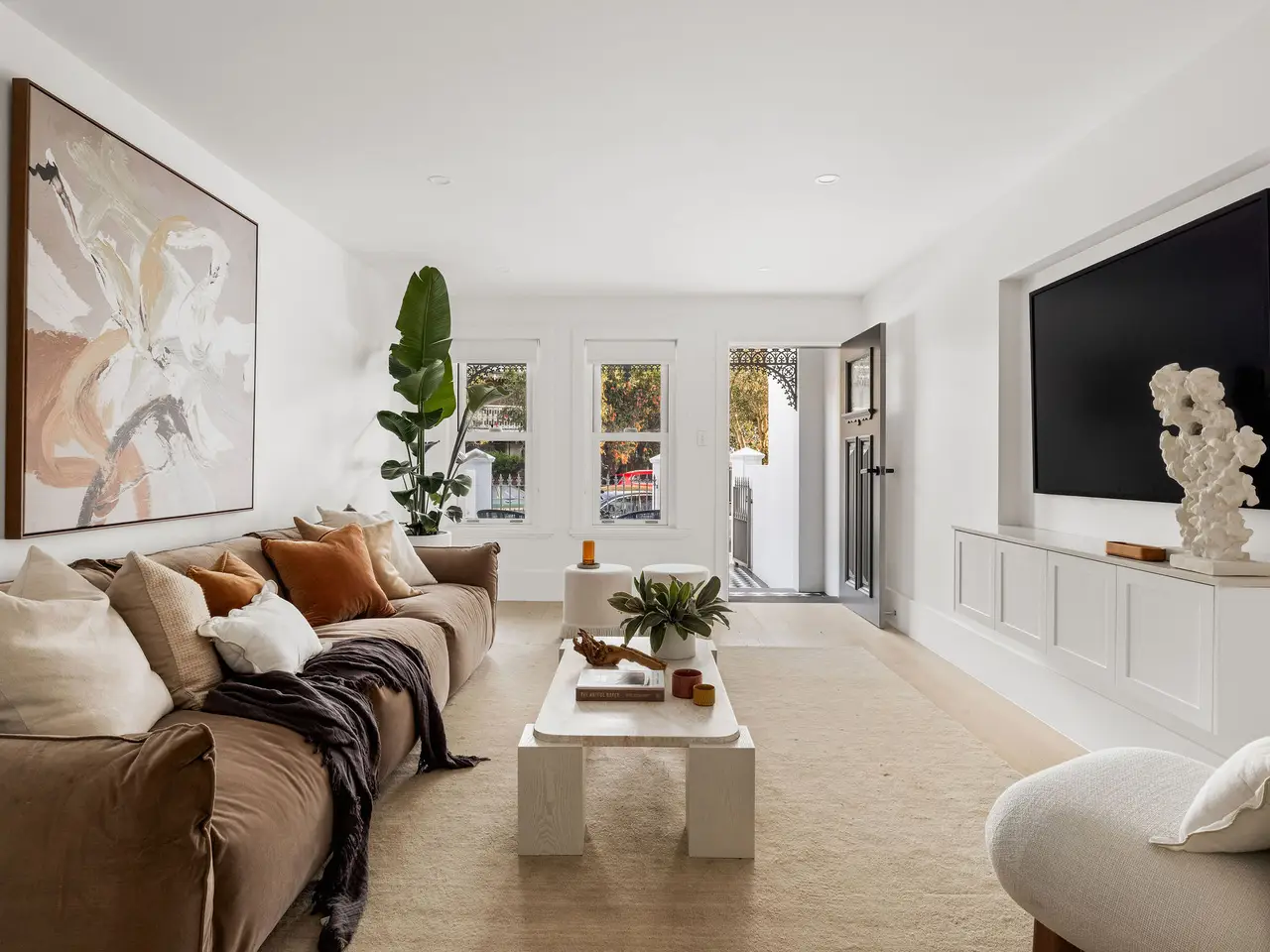 Completed in 2024, this terrace has been designed with a recreated Victorian façade, complementing the era of surrounding homes in Annandale. Behind the period-inspired frontage lies a completely new residence created for modern family living. The tri-level design includes a fully self-contained rear studio, with attention to detail, comfort, and craftsmanship evident throughout - from the engineered timber flooring to the oversized rooms, high ceilings, ducted air-conditioning, and professionally landscaped gardens. There are two living areas, one with combined dining flowing out to the outdoor entertaining area and garden, alongside a powder room and laundry, and a streamlined kitchen with Bosch appliances and integrated dishwasher. The middle level features a generous bathroom and a master suite with double doors opening to a traditional Juliette balcony. Upstairs, two additional bedrooms are serviced by a stylish bathroom with fluted free-standing tub. The top floor is reserved for a second master suite, complete with pitched ceilings and a cleverly integrated ensuite. Adding further appeal, the property is just footsteps to the renowned Cherry Moon Café, Annandale Public School, and city-bound buses. - A contemporary tri-level terrace, completed in 2024 - Substantial family home ready to move into and enjoy - North-facing backyard, with undercover alfresco kitchen - Easy-care landscaped back garden with ambient lighting - Separate studio with bedroom, kitchenette and bathroom - Moments to Annandale Public School and Cherry Moon Café - Plenty of transport options, just minutes to Sydney CBD buses