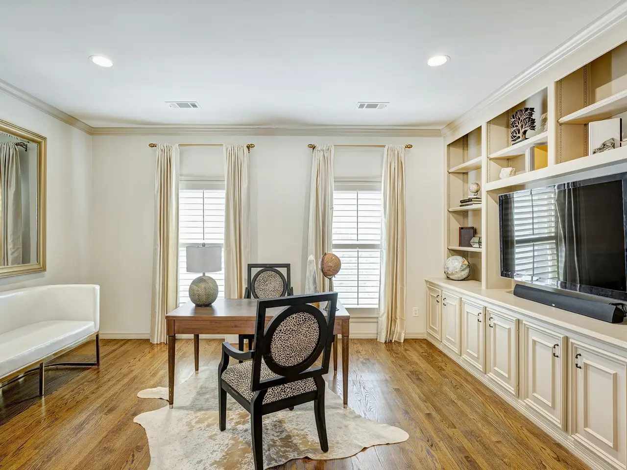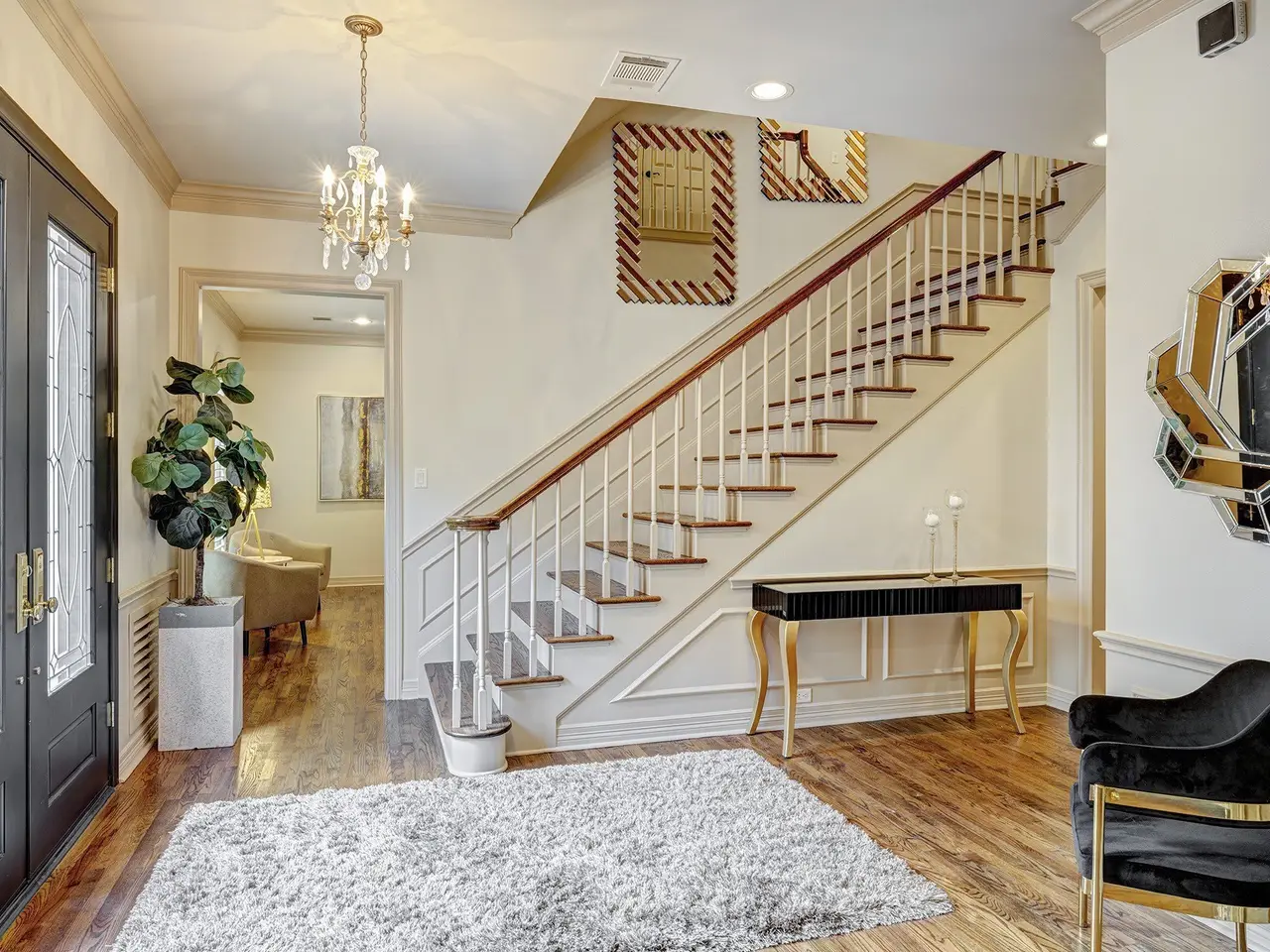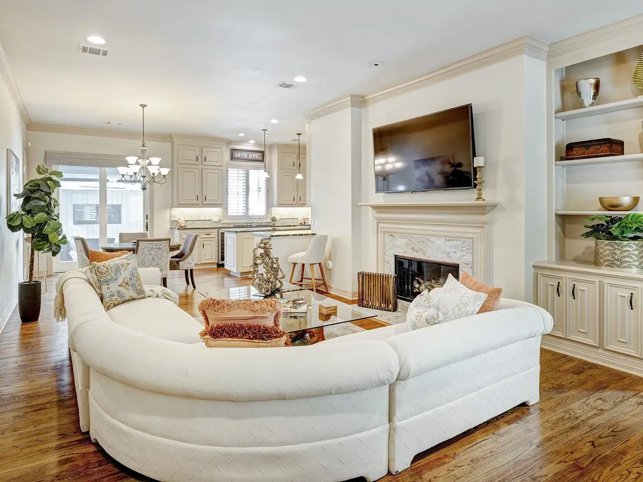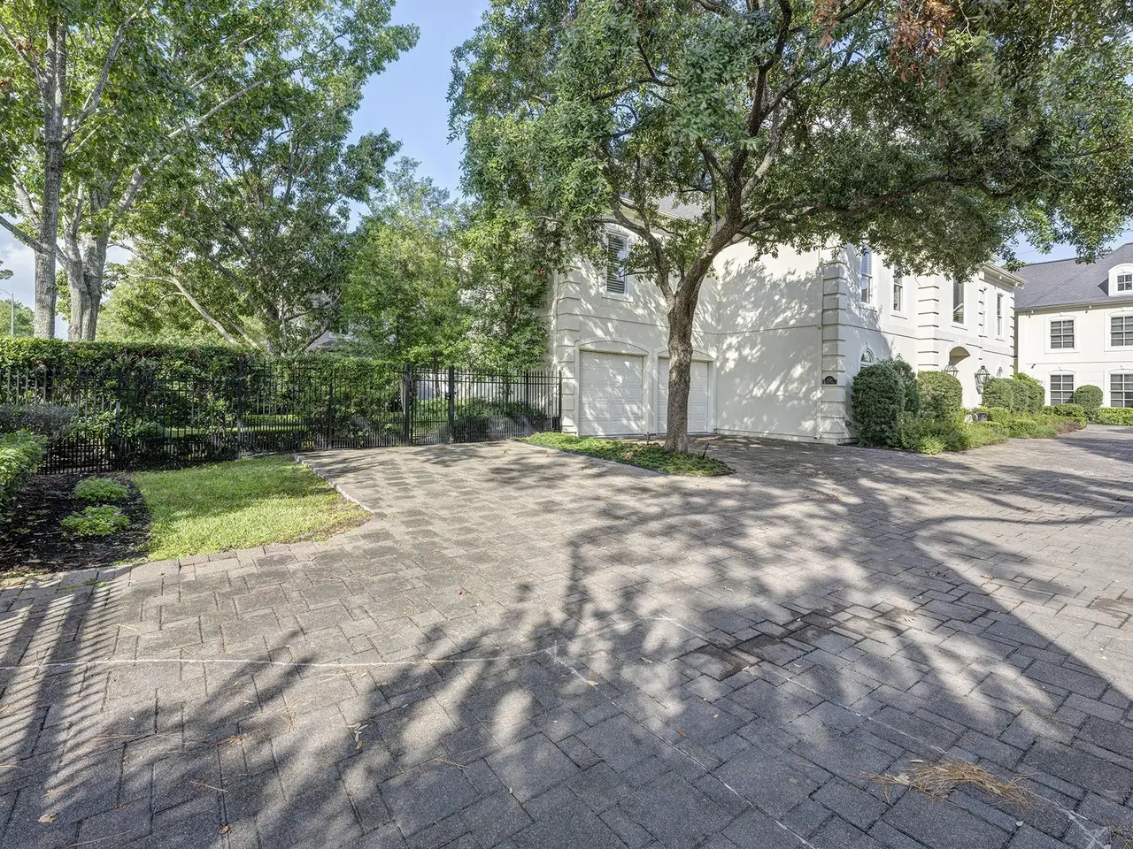 Only three homes in this lovely gated enclave—offering unmatched privacy, exceptional green space, and rare additional parking. Rich hardwood floors grace both the first and second levels. Features include an elevator, whole-house generator, mosquito misting system, and numerous tasteful updates. The kitchen boasts an expanded island, butler’s pantry, and walk-in pantry. The primary suite offers a fireplace, private sitting room with custom built-ins, two large closets, and a renovated spa-like shower. One secondary bedroom doubles as a sophisticated study with built-ins, private bath, and walk-in closet. Three bedrooms on the 2nd floor. The spacious 3rd-floor suite includes a full bath and closet. A charming pergola sits just beyond the kitchen, overlooking a curated yard—ideal for pets or a future cocktail pool. All info per Seller.