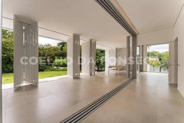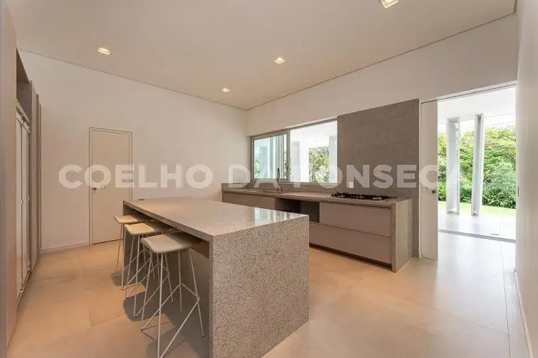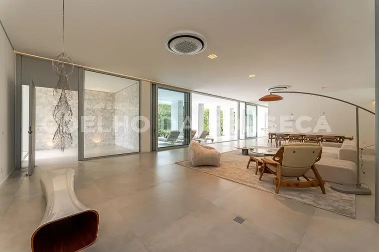 MAGAZINE COVER! Spectacular new house in Alphaville 1, a very modern, contemporary project by award-winning architect Sérgio Sampaio. Corner lot with 2,223 m² in an excellent avenue near the Club and very wooded, House with 987 m², built on top of a reflecting pool. There are 4 suites, one on the ground floor, office, large living room in 3 rooms, fully integrated with the gourmet area, swimming pool and beautiful garden. House in the ALPHAVILLE 1 condominium, with 987m² built area, 4 bedroom(s), 4 suite(s), 6 parking space(s), 6 bathroom(s), swimming pool, corner, office, employee's room, balcony, solar heater.