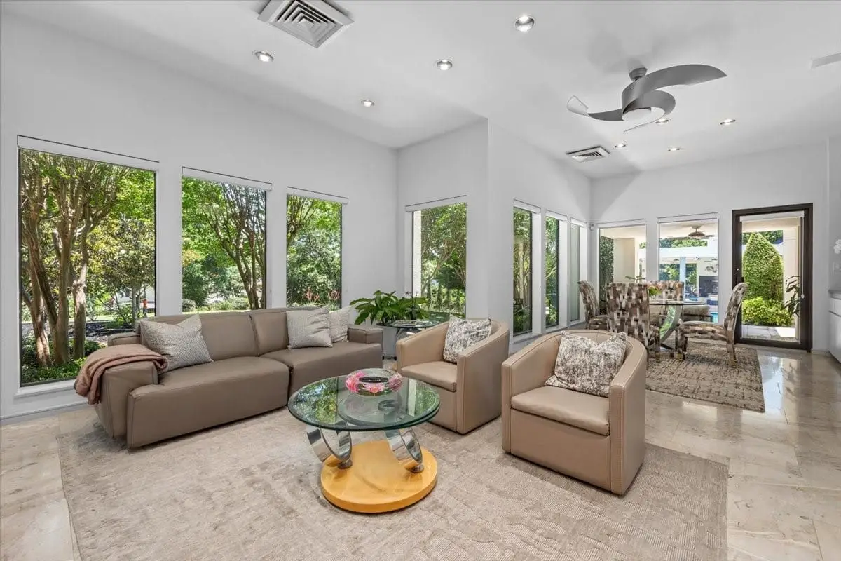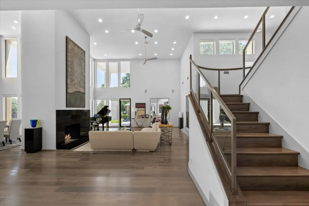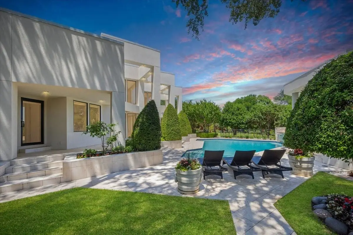 Zoned for Overton Park Elementary, this stunning contemporary residence offers sleek white design and abundant natural light throughout its 5,004 square feet. The property features 4 spacious bedrooms and 4 full baths, including a luxurious primary suite and an additional bedroom conveniently located on the main floor. Upstairs, you'll find two more bedrooms, two full baths, and a dedicated exercise room. Designed for both comfort and entertaining, the home includes two expansive living areas, a private office, and a stylish wet bar. The resort-style backyard is a true retreat, featuring a sparkling pool, water feature, firepit, and a fully equipped outdoor living area with a half bath. This price also includes the beautifully landscaped and fully fenced lot directly behind the home at 3966 Sarita Park (0.39 acre lot), currently used as an extended backyard space offering rare additional outdoor privacy and charm.