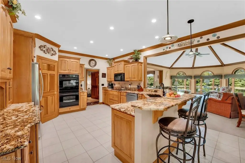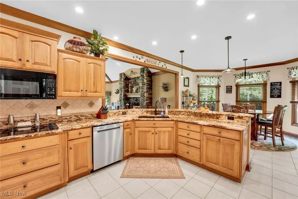 Welcome to this beautifully maintained 3 bedroom, 2.5 bath ranch offering over 4,000 sqft of total living space, nestled on a picturesque property complete with a private pond and lush tree-lined backdrop sitting 1,000 feet off the road. This home combines timeless charm with modern amenities, providing the perfect retreat for everyday living and entertaining. Step inside to find an inviting open floor plan with soaring ceilings, a gorgeous stone wood burning fireplace, and large windows that frame serene views of the outdoors. The spacious kitchen features custom hickory cabinetry, granite countertops, and a seamless flow into the dining and living areas. The sunroom with vaulted wood ceilings creates a warm, natural ambiance, while the finished basement offers an additional living area complete with a bar, recreation space, and a cozy home theater setup. The primary suite provides a private sanctuary with a spa-like bath, and two additional bedrooms are generously sized with ample closet space. The 3 car garage include a dog shower station and nature stone flooring. Outdoor living is a dream with a covered patio, fire pit, and sweeping views of the private 1/4 acre stocked pond with lighted waterfall, beach and gazebo; perfect for entertaining or simply relaxing. A 48'x30' pole barn with workshop space offers endless opportunities for hobbies, storage, or equipment. Also for sale is 5715 Vandermark, which is the front of this property, has a 2 Bedroom 884 sqft home that sits on 3.13 acres. Listed for $199,000.