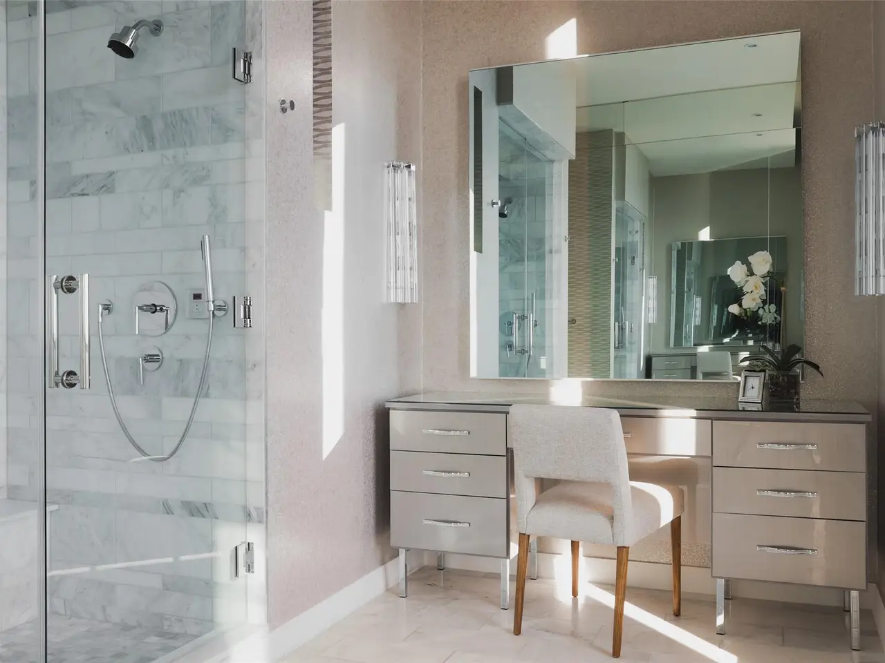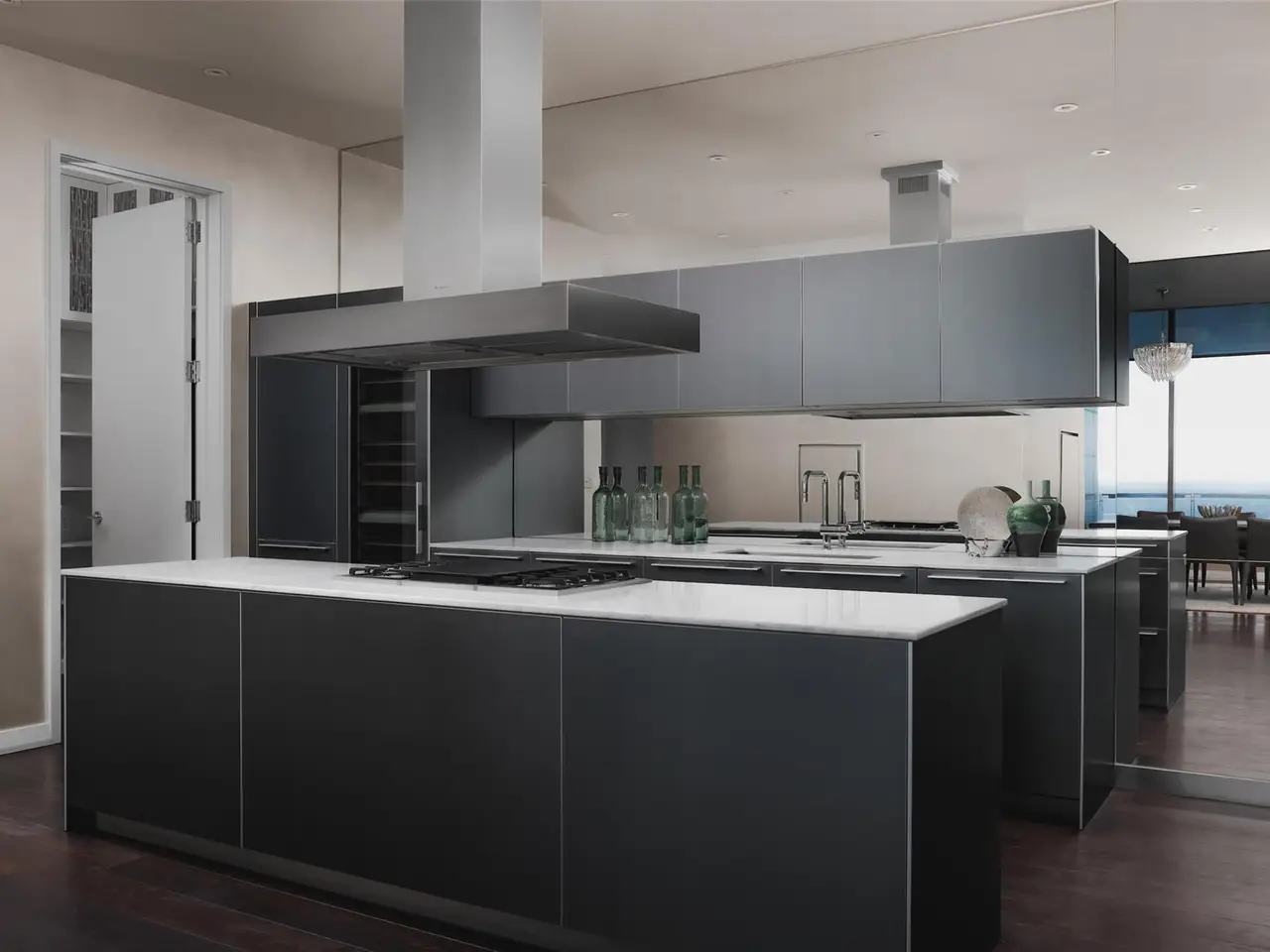 • Custom cabinetry and mirrored backsplash