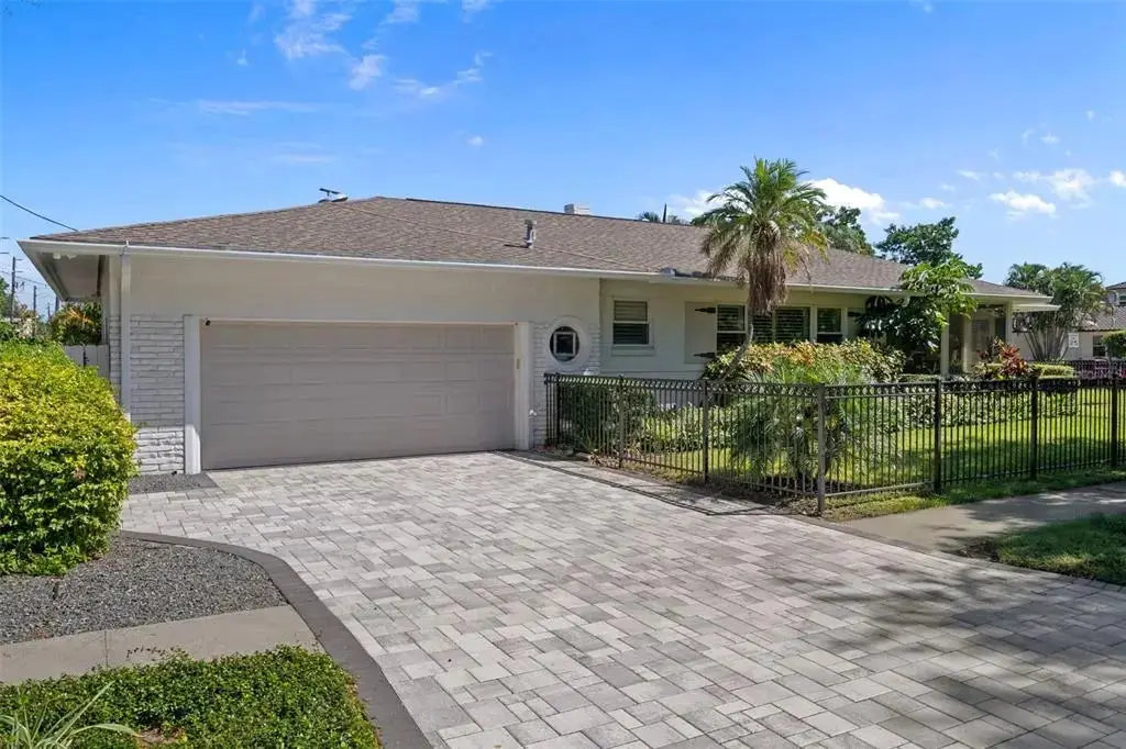 Under contract-accepting backup offers. Visualize living in this elegant home located in the desirable Historic Old Northeast. Situated on an oversized 85’ × 110’ corner lot in a non-flood zone. The home offers a sense of space in this sought-after neighborhood. Step inside and you’ll instantly feel the charm that makes this home so special, with original terrazzo floors, warm hardwood floors, and vintage glass-panel interior doors that reflect its enduring authenticity. The spacious 2-bedroom, 2-bath, 2,553 sq. ft. floor plan offers generous room sizes and flexible spaces for endless possibilities. Natural light fills the home through large windows, and the welcoming sitting area just inside the front door provides the perfect spot to gather with friends. This inviting space opens through glass French doors to the living room, which features curved plaster walls and a fireplace. Just beyond the living room, a versatile den offers the perfect space for a home office, gym, or hobby room filled with light. The kitchen blends style and function with granite countertops, a five-burner gas cooktop, pot-filler, wine refrigerator, and premium Thermador appliances. The kitchen also features an island with seating for four, a convenient coffee nook, and abundant cabinetry. Off the kitchen, a large 24’ × 18’ family room—currently used as a media room—provides additional living space just inside from the backyard pool. The primary bedroom suite offers comfort and style with an ensuite bathroom, walk-in closet, ceiling fan, and plantation shutters on the windows. Down the hallway, you’ll find the second bathroom, a laundry closet with built-in shelving, and the spacious second bedroom, which can easily accommodate two beds—perfect for siblings or guests. Outside, the property is designed for easy Florida living. The entire yard is fully fenced, creating a perfect space for pets or play. The saltwater pool is surrounded by low-maintenance tropical landscaping, offering a private retreat for relaxing or entertaining. An irrigation system on a private well, natural-gas service from the street, and a dedicated gas hook-up for outdoor grilling make outdoor living effortless. A true two-car garage plus a new paver parking pad provide rare convenience in this coveted neighborhood. Located in one of St. Pete’s most desirable areas, you’re just blocks from Coffee Pot Bayou, Vinoy Park, and vibrant downtown St. Petersburg—home to world-class dining, boutique shopping, art galleries, and waterfront parks.