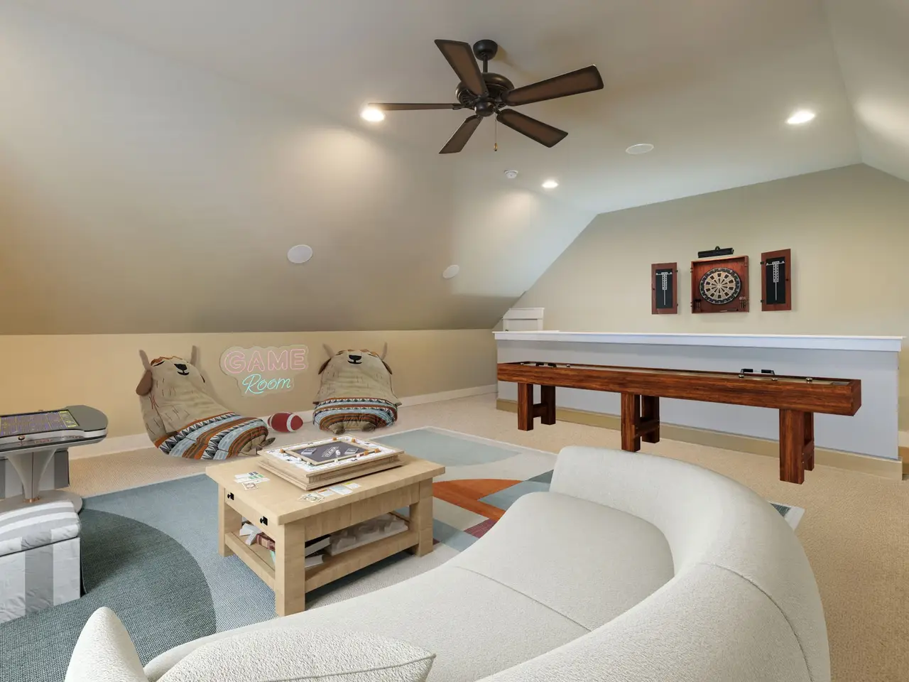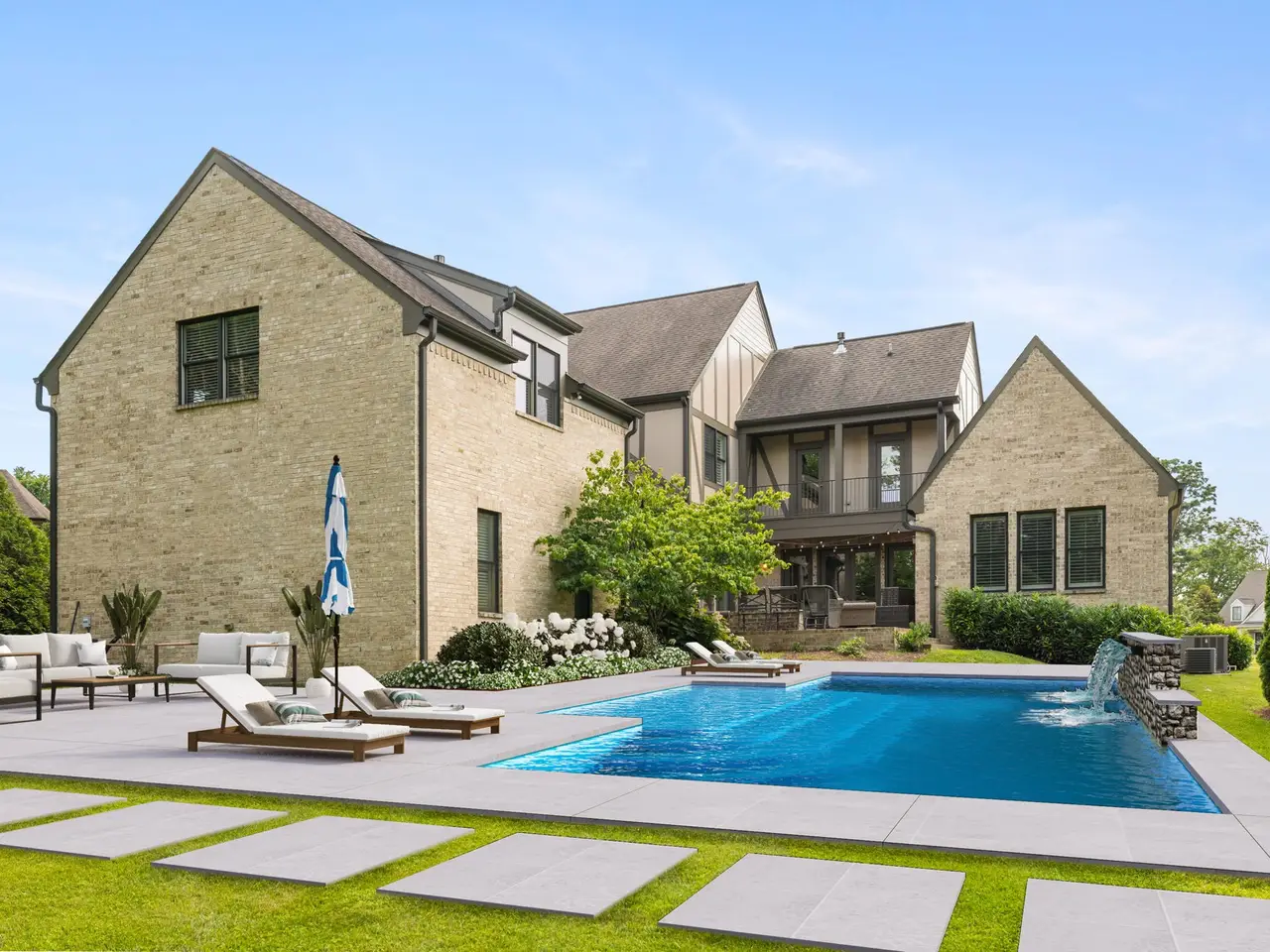 Tucked away on a peaceful cul-de-sac and backing to serene green space, this stunning home offers both privacy and luxury on a spacious lot perfect for everyday living and entertaining. Enjoy outdoor living at its finest with a screened-in porch, cozy outdoor fire pit, balcony overlooking the backyard, and a charming front courtyard--all complemented by a 3-car garage. Step inside to a thoughtfully designed layout with arched doorways and rich hardwoods throughout the main level. The open-concept living, kitchen, and dining areas flow seamlessly together and are anchored by an oversized center island, wood-beamed ceilings, and top-of-the-line appliances. A beverage center in the dining room makes entertaining effortless. The main-level primary suite is a true retreat with vaulted ceilings, a spa-inspired bath featuring a soaking tub, floor-to-ceiling tiled shower, double vanities, and a spacious walk-in closet. A dedicated main-level office adds functionality and flexibility. Upstairs, you'll find three generous bedrooms, each paired with access to one of three bonus/flex rooms--ideal for media, playroom, gym, or guest space. One bonus room is conveniently located with the secondary bedrooms, another is privately situated on the second level, and the third crowns the third floor, offering a full wet bar with a dishwasher, microwave, mini fridge, and electric cooktop--perfect for entertaining or a private guest suite. This home offers a rare combination of space, style, and thoughtful design in a location that feels like a private retreat yet is close to everything you need. Don't miss your chance to make it yours!