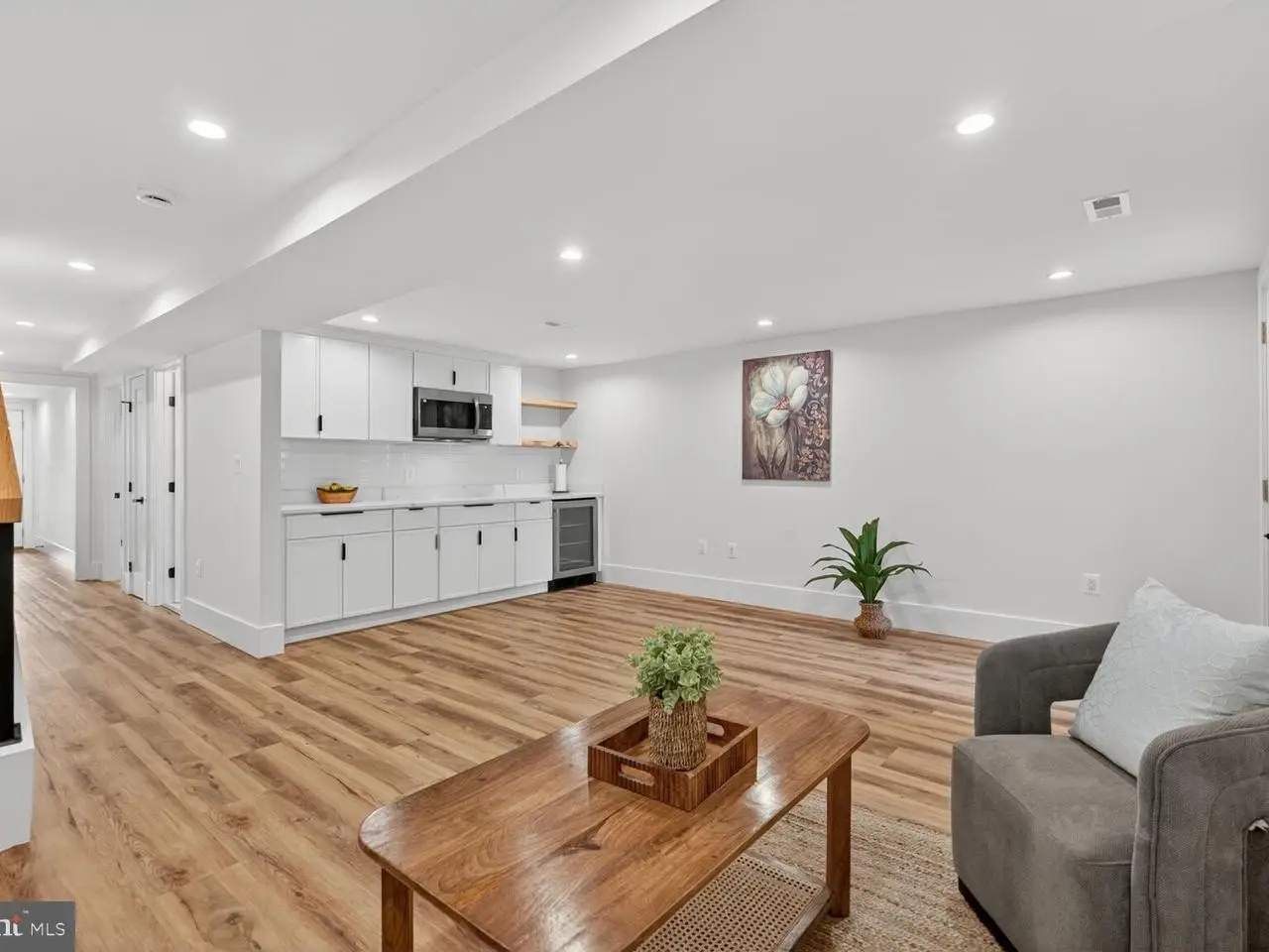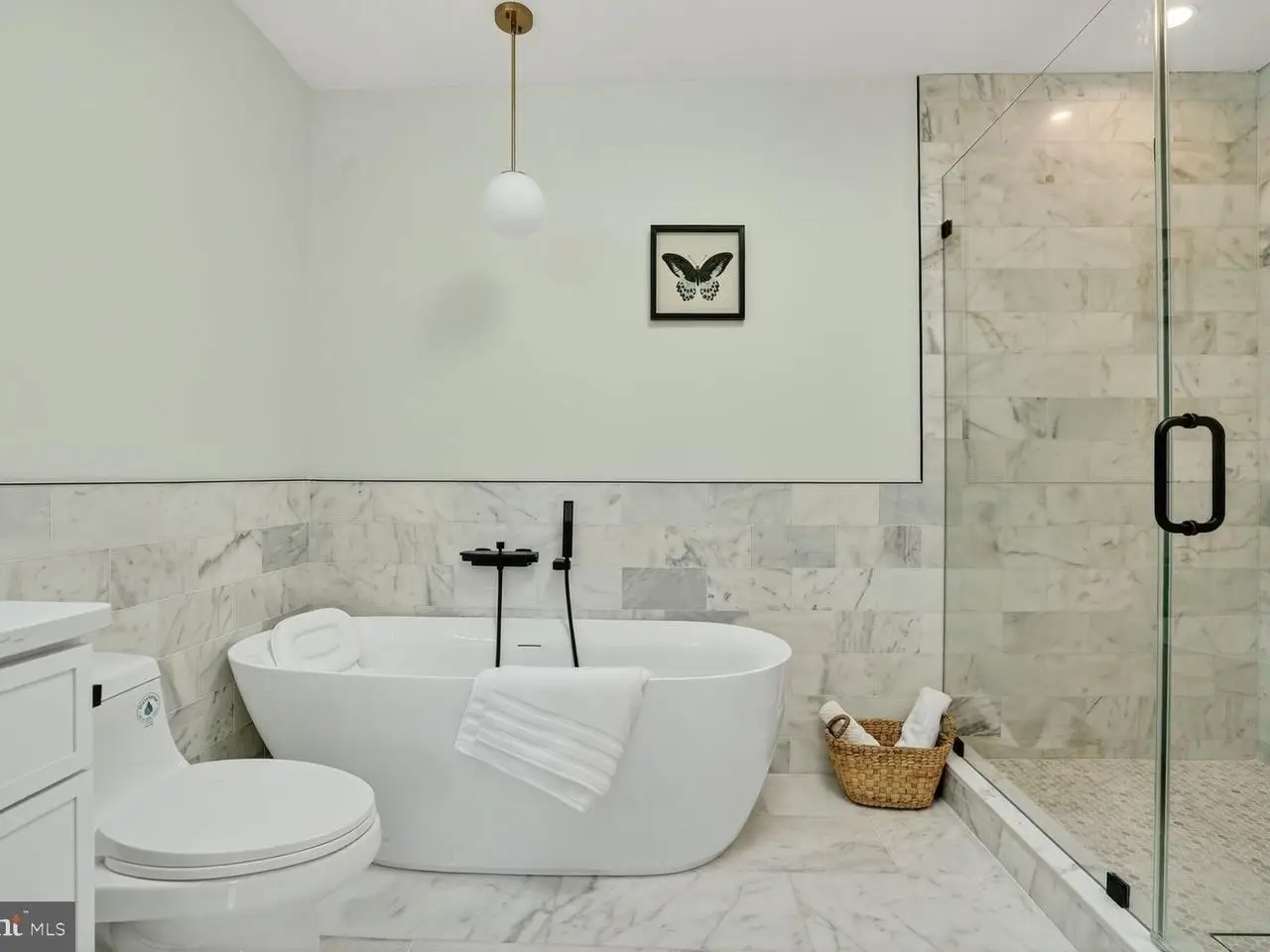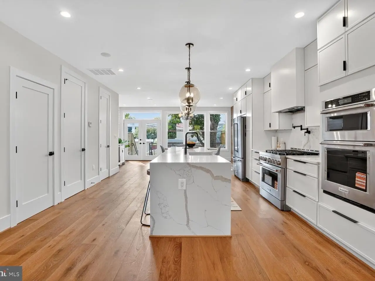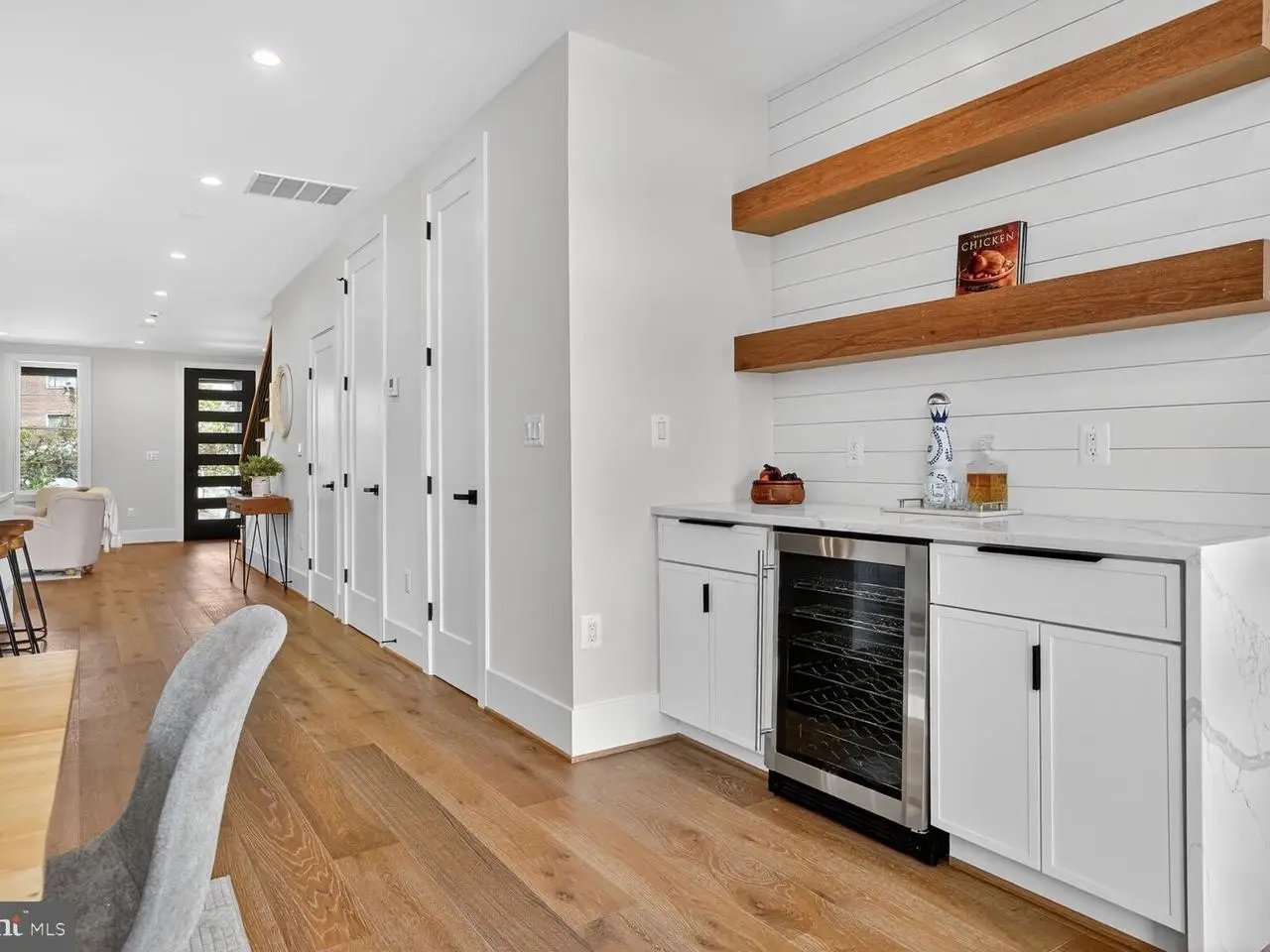Our newest addition to the renovated canvas of Washington, this five-bedroom three-and-one half bath residence sits perched on the Northern end of 16th Street Heights. Once part of Maple Grove Farm, an 80-acre nursery that helped the green improvements of the National Mall, Capitol, and White House grounds this understated and impeccably designed home has every modern convenience, vast green spaces and subtle designer details that exceed expectations. The latest master piece built by prolific local builder Center Point Homes. This block of Longfellow Street is tree lined and bucolic, with large front porch Wardman homes. A front green space, dotted with evergreens and lower-level front entrance greet you as you ascend the concrete steps to the front porch. The six-panel windowed steel door with transom is the perfect blend of modern, hinting at the Architectural integrity of the open concept living beyond. Requisite rustic oak engineered flooring underfoot and so much more to take in; massive front windows, and an ample living room space. A fluted wood wall with built in coat hooks frames the front entrance. The modern kitchen boasts fixtures a gourmet chef would demand. Stainless Kitchenaide appliances with a built in 36- inch six burner range with accessible pot filler, ample storage in stacked ceiling height modern shaker cabinetry, and seating for six at the waterfall quartz stone island and a deep farmer's sink. A wall oven and convection microwave make the space complete. An oversized dining space adjacent to the island features a wood panel wall for texture and a wine bar area with banquet space and whitewashed shiplap and custom shelving. French doors lead to the oversized Trex deck with privacy screens and custom metal railings. Ascend the modern stairs with down lit riser lighting and custom metal railings to the primary suite. You are welcomed to the space with oversized windows, nine-foot Cathedral ceilings, double closets with built in walk-in spaces and an ensuite spa bathroom. Double vanity sinks, frameless glass shower, pedestal soaking tub, a skylight and elegant timeless Carrera marble tile surround. The second and third bedrooms are serviced by an equally furnished hall bath with soaking tub. A full-size stackable washer and dryer complete the level. The lower level is a guest or nanny suite with rear and front entrances, bar area, recreation space, a full bath, and warm engineered flooring. A main bedroom, and additional bedroom or office space flanks the rear of the lower level with walk out access to the rear yard through a lower-level area way that serves as a second patio. The rear yard is a verdant green space with plat areas for entertainment or any gardening you may fancy. A two-car off street parking pad in zero maintenance poured concrete provides access to the paver alleyway. A commercial roll up garage door and electric vehicle charging port finish the space. All systems are new, plumbing, 200 AMP electrical service, and dual HVAC systems for true two zoned heating and cooling. All windows low E double Thermal Pane, and double hung. New cool white TPO roofs, and Trex decking installed. If you are looking for timeless elegance in a suburban/urban setting, with easy bus access to all of the Metropolitan area, this is the home you have been hoping would come along. Make this elegant part of history your home for a lifetime.