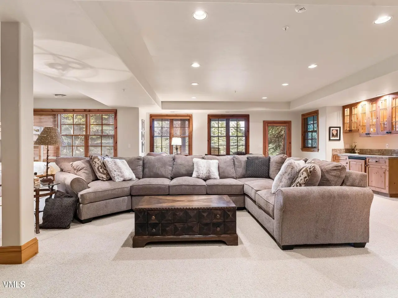 Large recreation room with wet bar