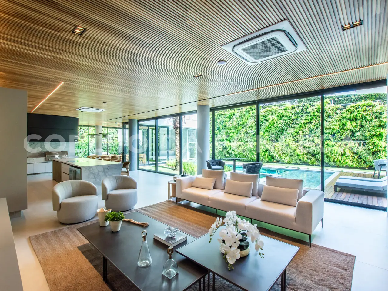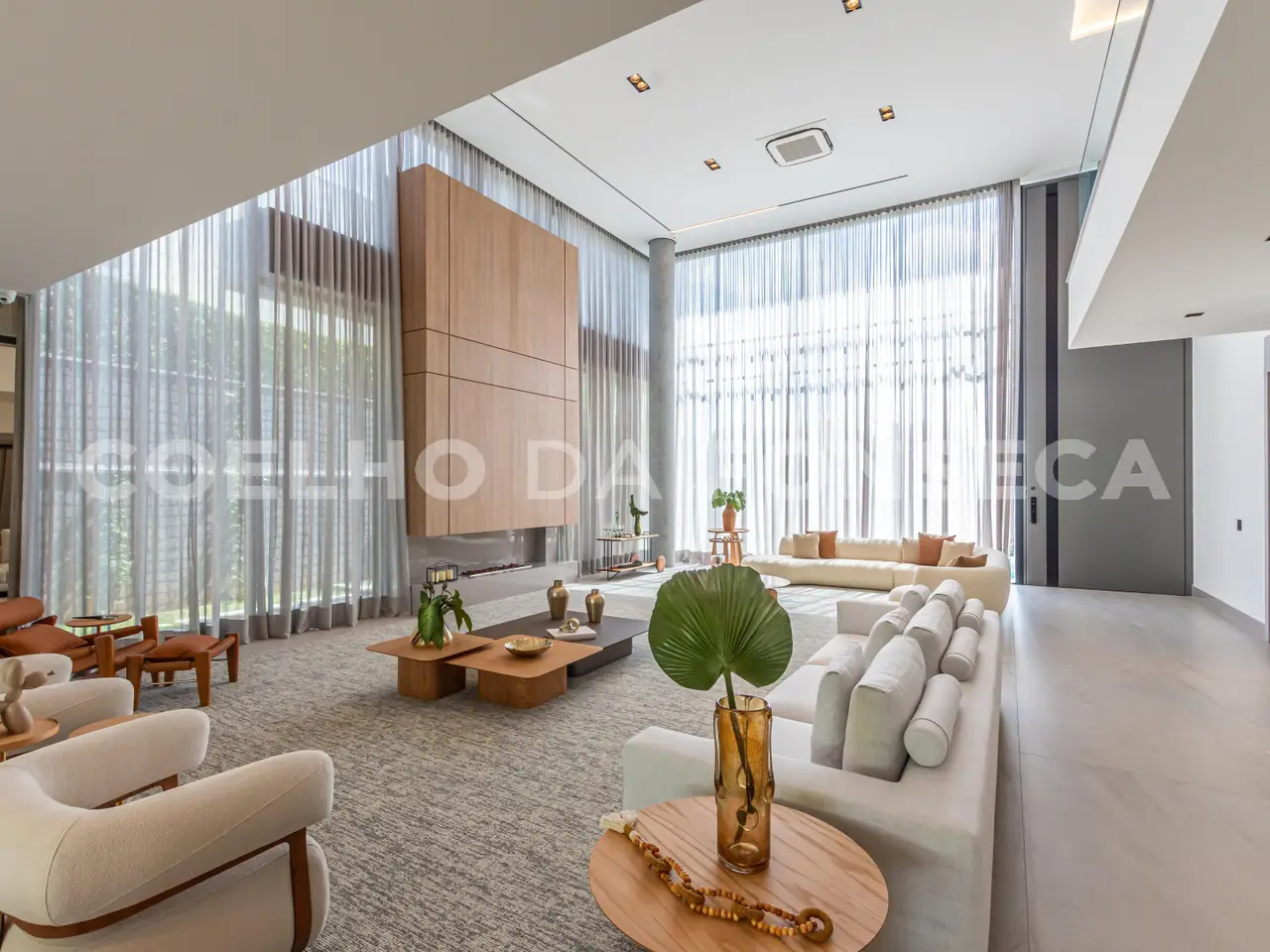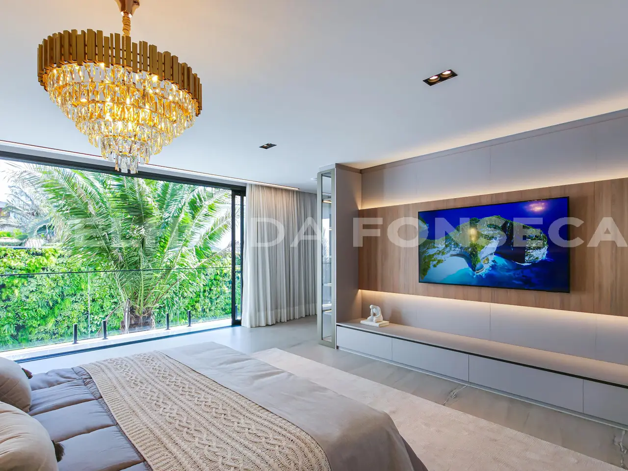 Beautiful and very well located, privileged view, modern and bold design, with a charming façade, fully integrated environments that contemplate harmony and sophistication, 06 suites, 2 with master closet, a wonderful swimming pool, whirlpool, sauna, complete gourmet area, wine cellar for 1000 labels, rooftop with Jacuzzi spa for 8 people, office, vertical landscaping with irrigation and automated lighting, state-of-the-art cinema, Tyssenkrupp elevator for 8 people, garage for 15 covered vehicles with vehicle charger, there is nothing like this, which is one of the best residential complexes in Alphaville, schedule a visit, you will be enchanted!! House in the TAMBORÉ II condominium, with 1469m² built area, 6 bedroom(s), 6 suite(s), 19 parking space(s), 8 bathroom(s), swimming pool, generator, office, sauna, storage room, furnished, air conditioning, employee's room, balcony, elevator, solar heater, double height ceiling.