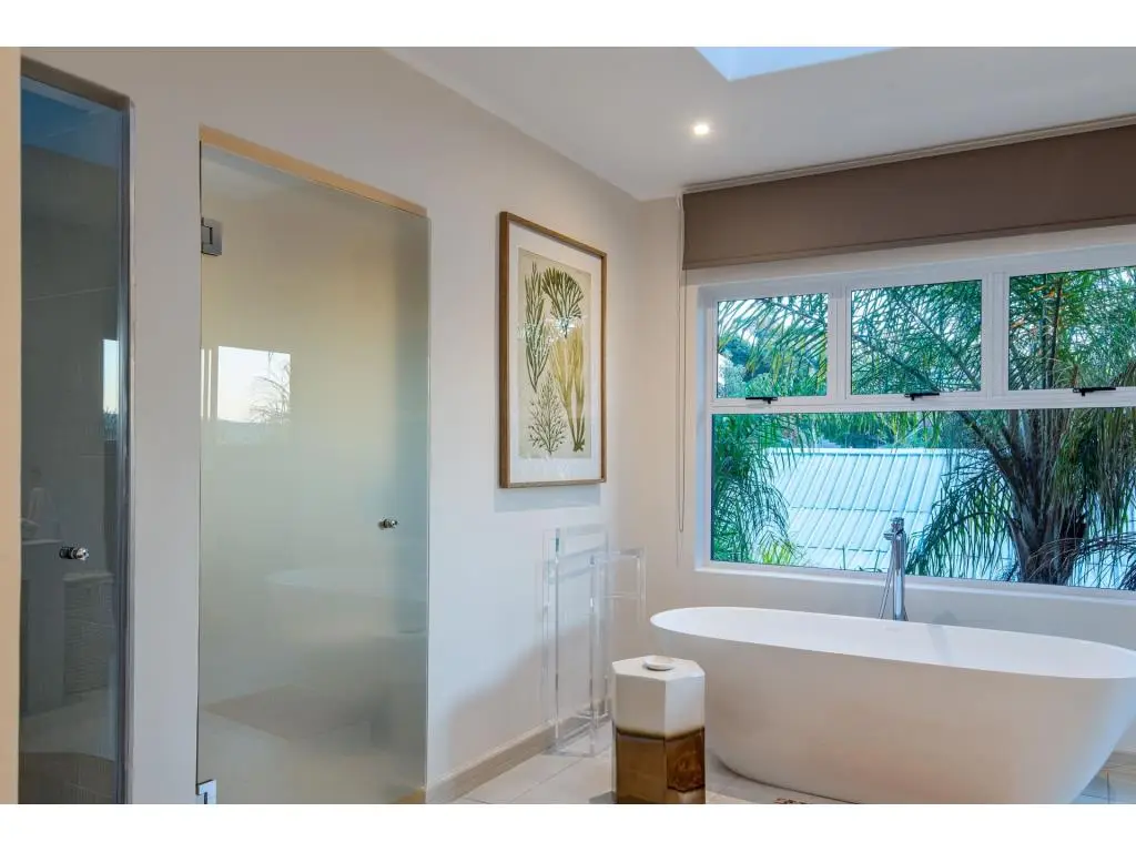 Exclusive to Chas Everitt - Welcome to an extraordinary lagoon-front estate that epitomises luxury and elegance. This once-in-a-lifetime property offers breathtaking views, unparalleled comfort, and exquisite design, perfect for those seeking an exceptional lifestyle. Fit for royalty, the Princess Charlene of Monaco occupied this property for 3 months whilst on an extended visit to South Africa. Grand Entrance As you enter the home, a magnificent, grand entrance hall greets you, featuring a broad staircase that elegantly divides the house into its upper and lower levels. Ascend the staircase to find the luxurious sleeping quarters, or descend to the expansive living areas designed for entertainment and relaxation. Upper Level The upper level houses four beautifully appointed bedrooms. The main bedroom is a sanctuary of indulgence, boasting an en-suite bathroom complete with a freestanding bathtub, double basins, double alfresco showers, and a private toilet. One additional bedroom enjoys a full en-suite bathroom, whilst the remaining two bedrooms share a spacious full bathroom, ensuring comfort and privacy for all residents. All of the bedrooms offer doors leading out to a generous covered balcony which enjoys sweeping lagoon, ocean and coastal forest views. Middle Level The middle level is dedicated to seamless living and entertainment. It features a sophisticated dining area, a cosy TV room for intimate gatherings, and a lively games room for family fun. The front of the home showcases a covered balcony, offering stunning views of the lagoon, while the back of the home includes a protected entertainment area which features a built-in pizza oven and is perfect for year-round enjoyment. The gourmet kitchen is a chef's dream, equipped with a gas hob, electric oven, and extractor. A massive scullery provides ample space for all appliances and additional storage, making meal preparation and clean-up a breeze. Lower Level The lower level is a versatile self-contained flatlet, ideal for guests or extended family. It features a kitchenette, dining area, lounge, en-suite bedroom, and a bunk room with three adult-sized bunk beds. The flatlet also includes a games room and a bathroom with a toilet, basin, and shower. A protected patio overlooks the meticulously maintained gardens and pool area, creating a serene retreat. Outdoor Paradise Step outside to discover an idyllic alfresco dining area at the bottom of the lawn, perfectly positioned to take in the tranquil lagoon views. The property's gardens and pool area are impeccably maintained, offering a lush, private oasis and there is a private jetty on the lagoon for mooring any lagoon-going craft. Additional Features This magnificent property is complete with three garages, a generous carport, ample uncovered parking, a full solar and inverter system, domestic quarters, a comprehensive alarm system, and CCTV for added security. The house is being sold fully furnished and equipped, including two boats and a jet ski, providing the ultimate in luxury living and recreation. Don't miss this rare opportunity to own a truly exceptional lagoon-front estate, where every detail has been meticulously crafted to offer the finest in luxury living.