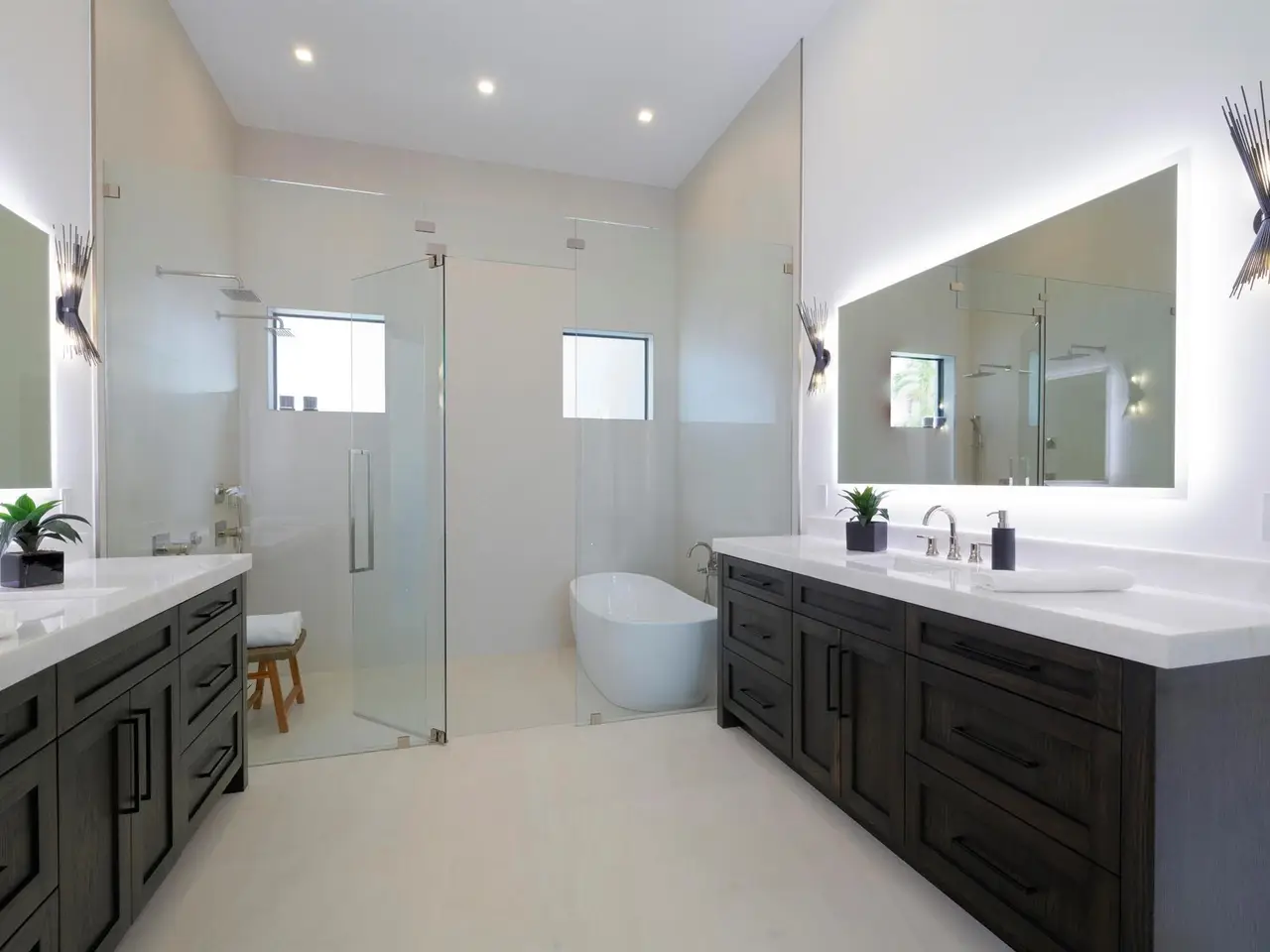 Modern Waterfront Estate in The Village of North Palm Beach. Discover a masterpiece of modern living in this stunning custom Vista Builders new construction home in North Palm Beach. Nestled in a prime waterfront location with direct ocean access, this exquisite 5-bedroom, Theater (Optional 6th bedroom),7-bathroom residence offers the ultimate in luxury and comfort. Indulge in 5,804 square feet of living space, including two gorgeous master suites. The gourmet kitchen, equipped with a Thermador appliance package and dual islands with backlit Cristallo Quartzite countertops, are stunning. The kitchen offers a convenient butler's pantry for effortless entertaining as well as multiple beverage and wine coolers.