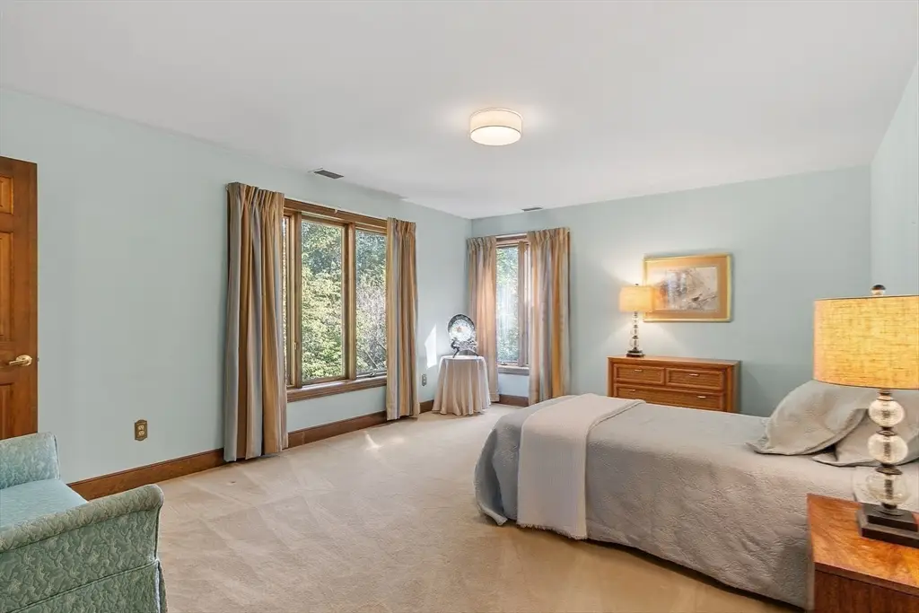 Sprawling contemporary residence with views of glorious Lake Cochichewick in prestigious cul-de-sac neighborhood of beautiful homes! Pristinely situated, this exceptional property offers ~6000sf of living space including expansive main level showcasing family room w/gas fireplace & hardwood, kitchen w/granite, stainless & abundance of cabinetry as well as spacious 3-season sunroom, home office w/built-ins & 2 half baths. Stunning dining room features French doors leading to patio & opens to over-sized living room creating perfect space for entertaining. Multiple lakeside doors & windows offer water views & lead to custom bi-level blue stone patios. Upper level has 4 bedrooms including vast primary suite w/dual bathrooms, walk-in closet, gas fireplace & balcony. Two bedrooms share full bath while fourth bedroom offers ensuite bath. Additionally, property has finished lower level & whole-house generator. This special property is engulfed in year round natural beauty & offers lake access.