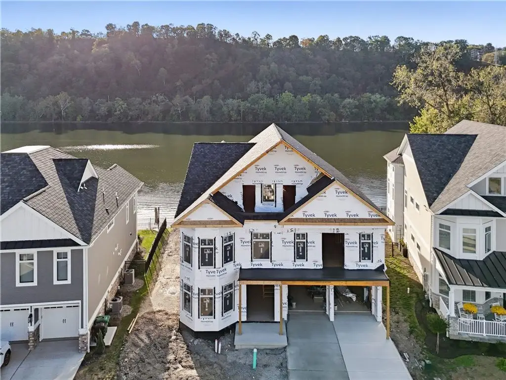 Final opportunity to own a Shoreline home at The River's Edge of Oakmont! This is the last one and it's located on the second-largest Shoreline lot in this exceptional riverfront community. Elevated above the water's edge of the Allegheny River, the Shoreline homes boast breathtaking views from expansive windows, glass doors, spacious porches, and private decks. Currently under construction, this home gives buyers the opportunity to make interior selections & truly customize the home. Thoughtful design details include in-home elevator for easy access to all levels; 10-ft ceilings on main level; wide-plank wood flooring; coffered ceiling and a built-in bar in dining area; open-concept kitchen w/ large island; and a luxurious primary suite overlooking the water. The River's Edge amenities include the residents' clubhouse with fitness center, and infinity pool. The HOA takes care of lawn care, common areas, & snow removal for stress-free living. Renderings for marketing purposes only.