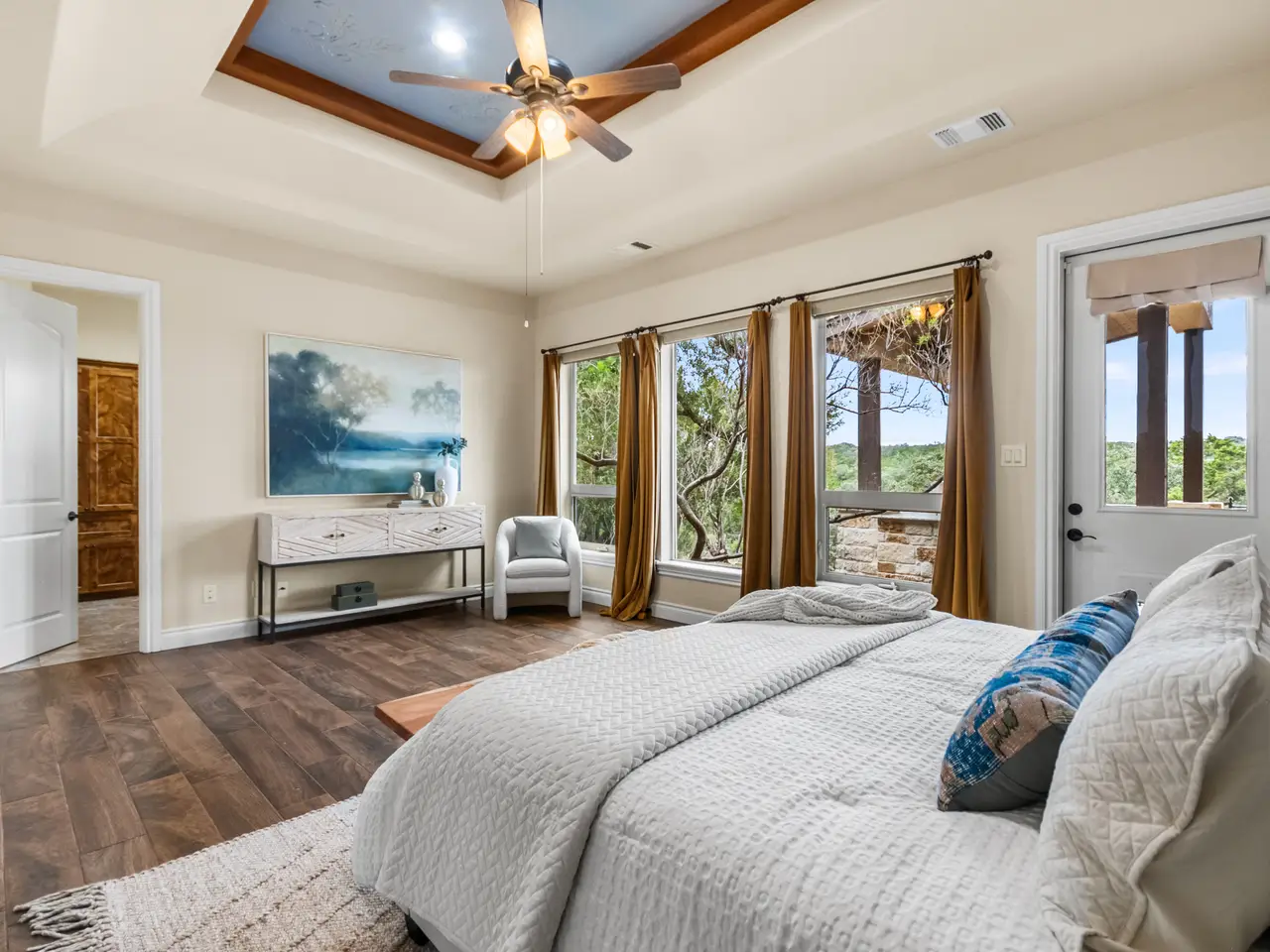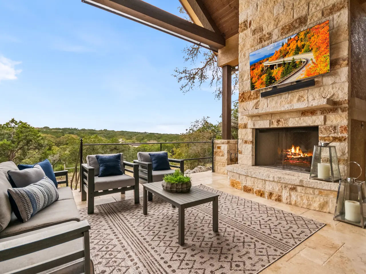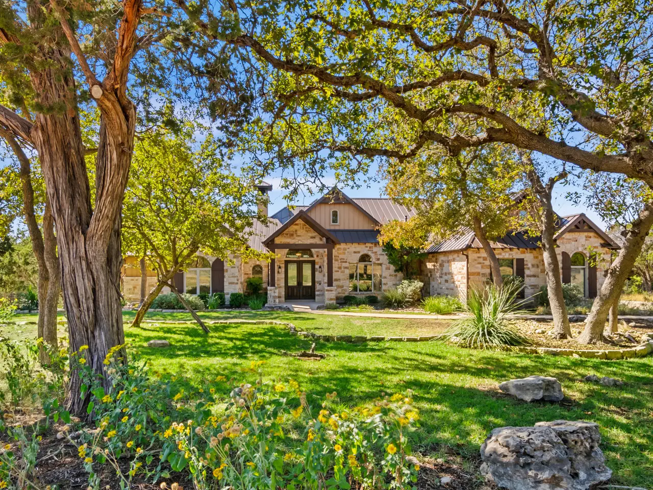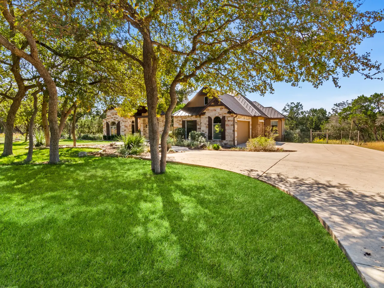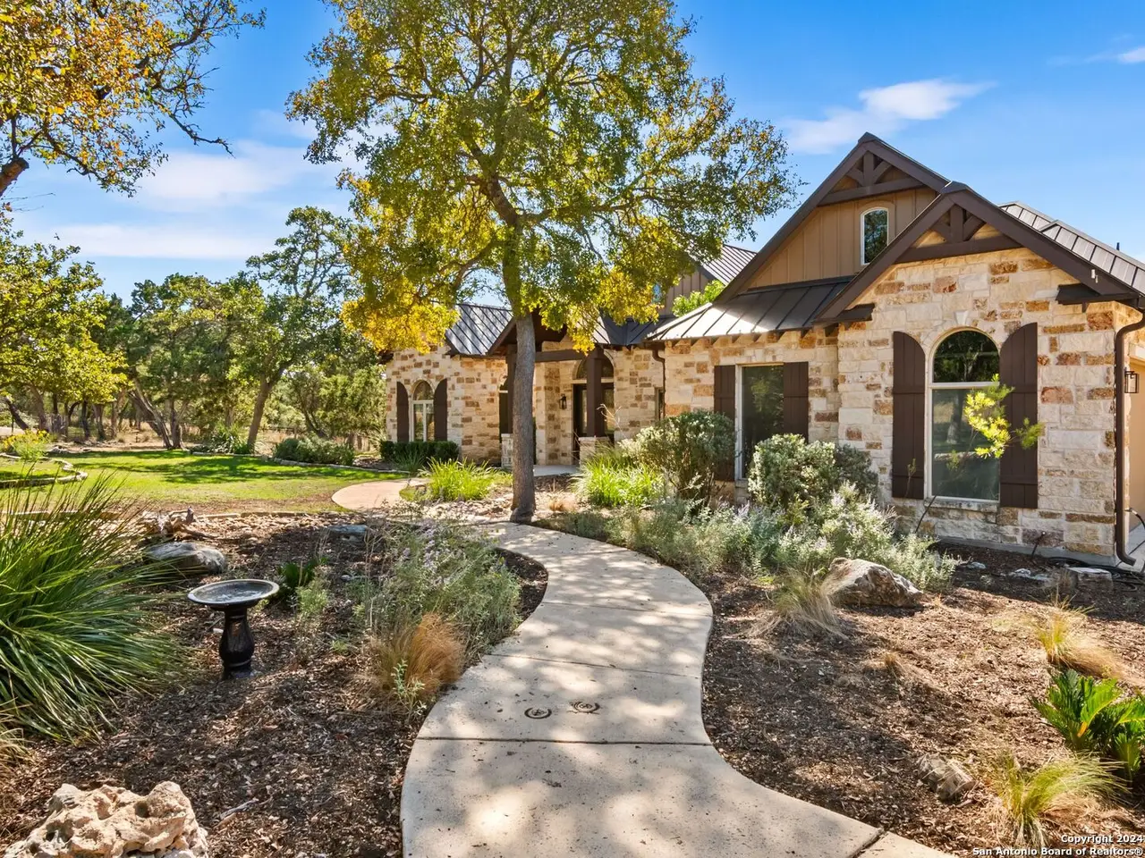 Experience all that Cordillera Ranch has to offer and enjoy the beautiful views at this exquisite one story ranch style home located close to the Guadalupe River Park. This property sits on just over 2 acres and has 4 nice size bedrooms and 2.5 bathrooms and a 3 car garage. As you walk in the home you are greeted with a wall of windows to take in the spectacular hill country views, a floor to ceiling stone fireplace with built in cabinets on each side, central vacuum, a large entertainer's kitchen with gas cooking, double ovens, an island, and eat in bar top. The enlarged outdoor covered patio is impressive. Equipped with an outdoor fireplace, misting system, designated kitchen for grilling, and plenty of room to create an additional outdoor cozy living space. The location of this property is equipped with city water and sewer. Come and make this house your home.