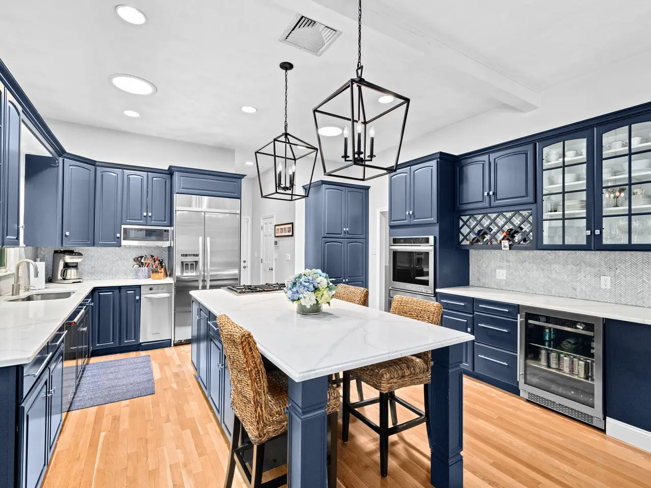 This 5-bedroom, 3.5-bath home is in one of Dover’s most desirable, centrally located neighborhoods. Set on a private 2.2-acre lot with mature landscaping and underground utilities, the home features an open layout with oak hardwood floors, custom area rugs, and flexible living space. The custom kitchen opens to a family room with a wood-burning fireplace, and a butler’s door connects to the dining and sitting rooms. The main floor includes a primary ensuite and two bedrooms with a shared bath; upstairs offers two more bedrooms, a full bath, and unfinished space with potential. The finished basement includes a home gym, entertainment area, and walkout to a covered patio. Additional highlights include a new heating system, 2016 roof, whole-house generator, irrigation system, and decks.